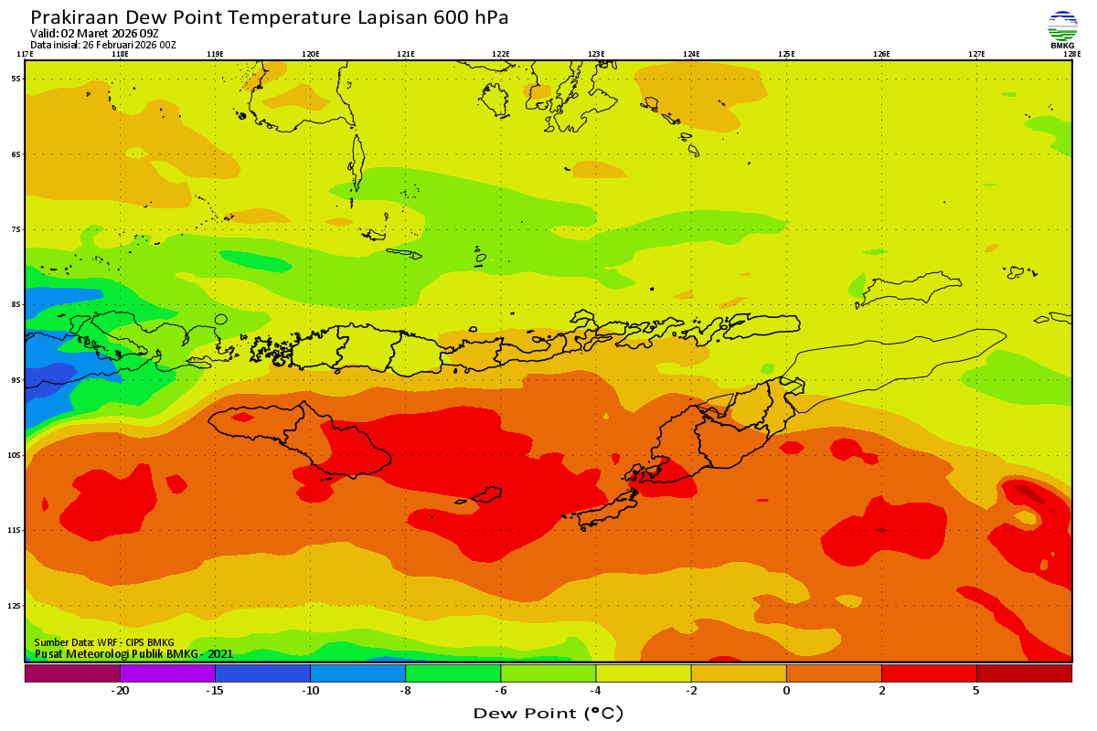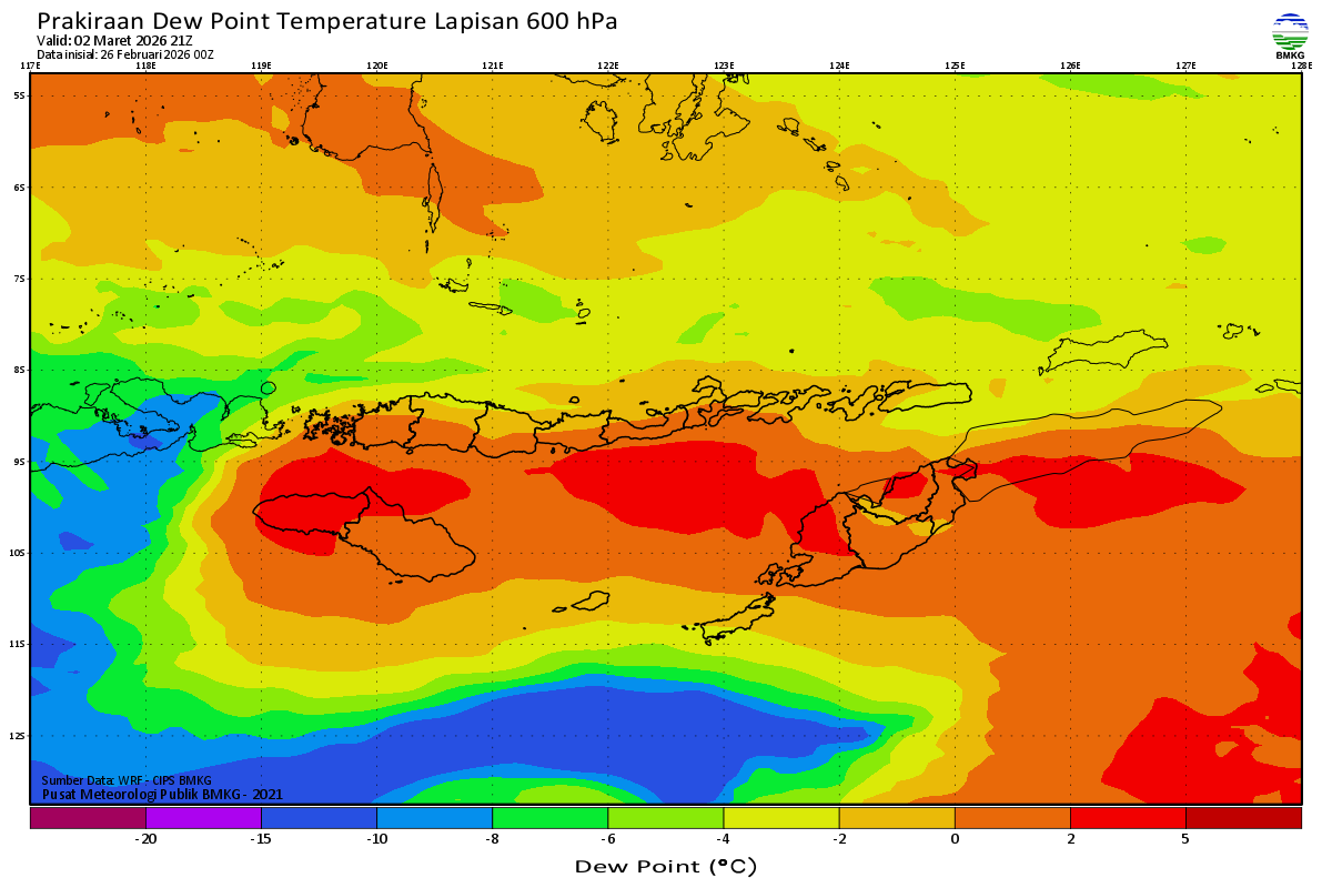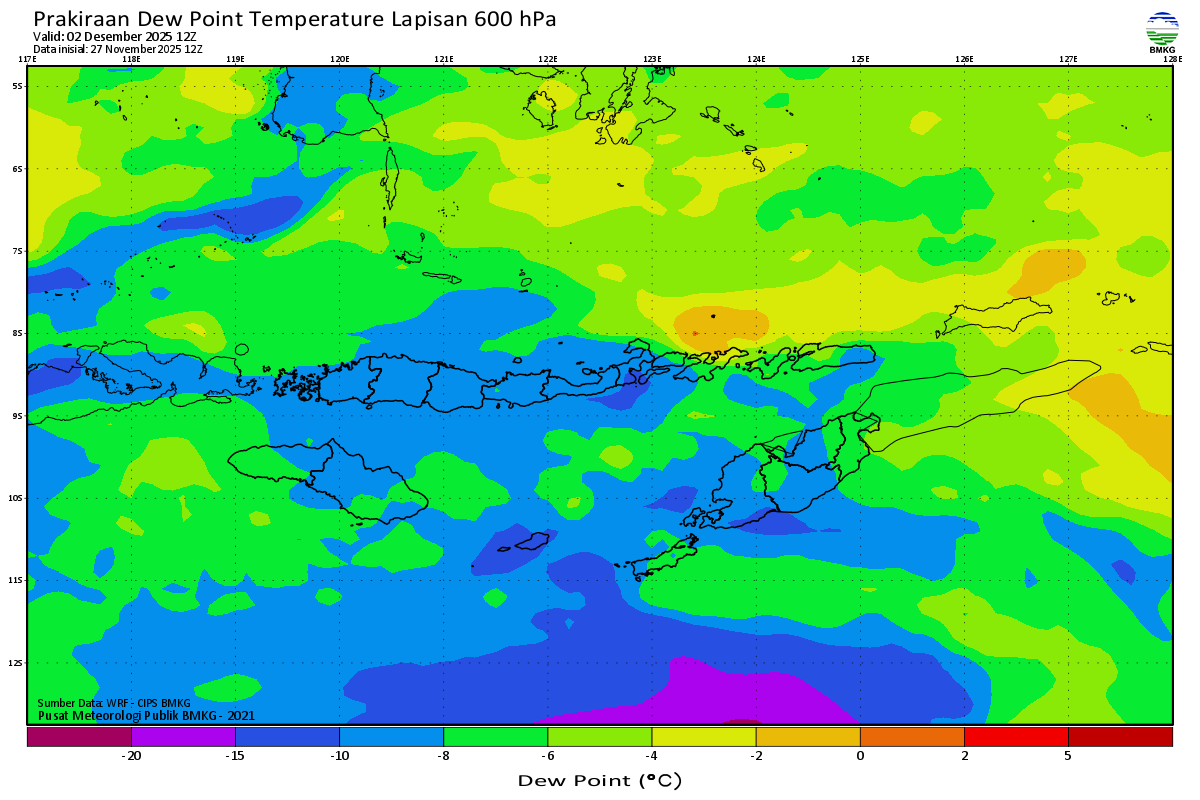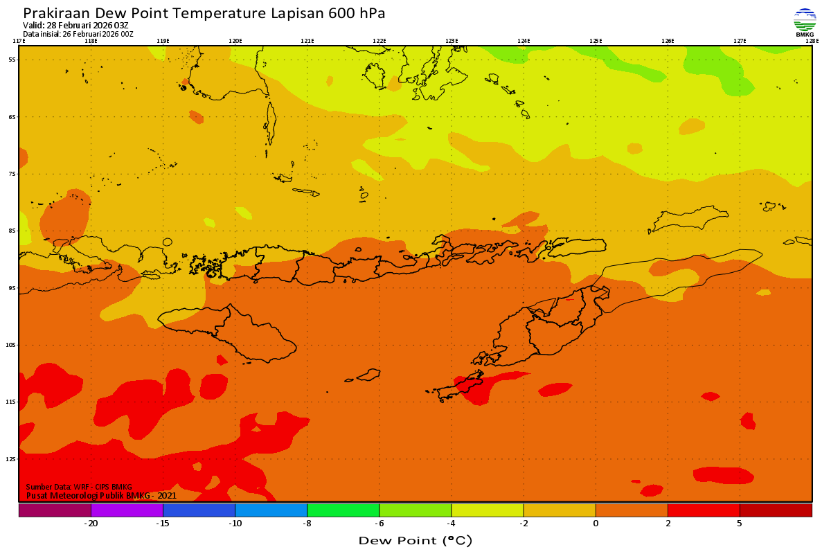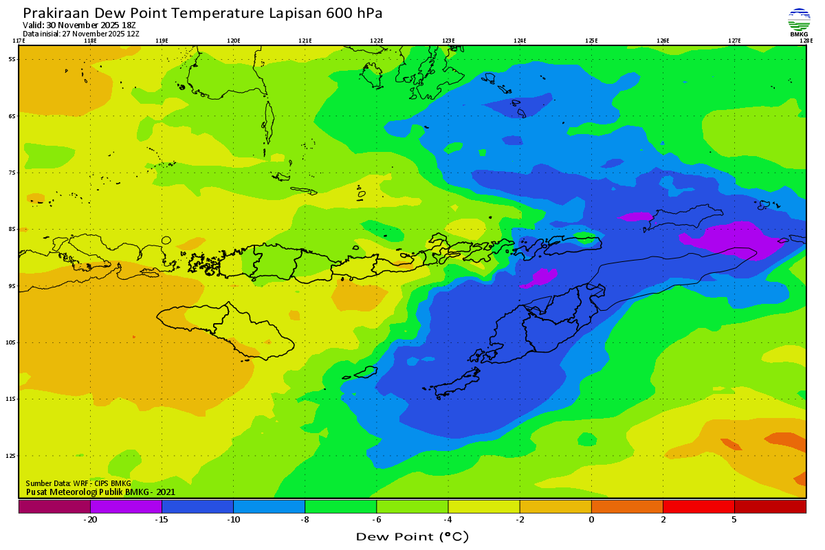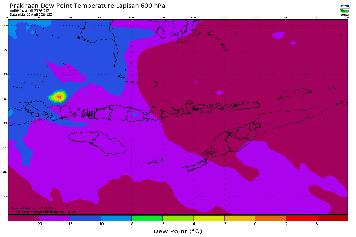Prediksi Suhu Titik Embun 600 hPa NTT
