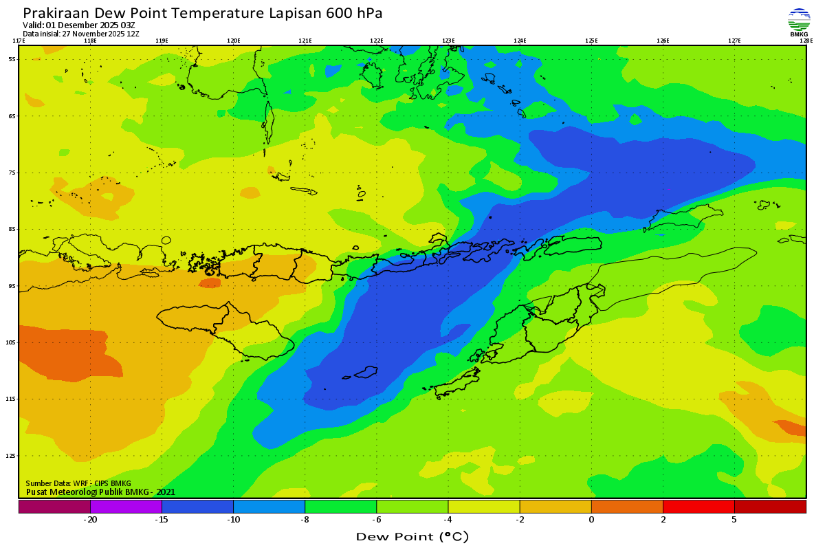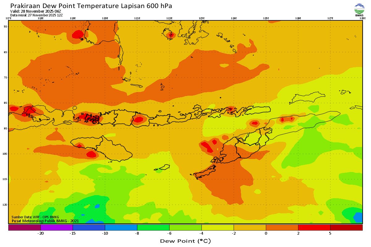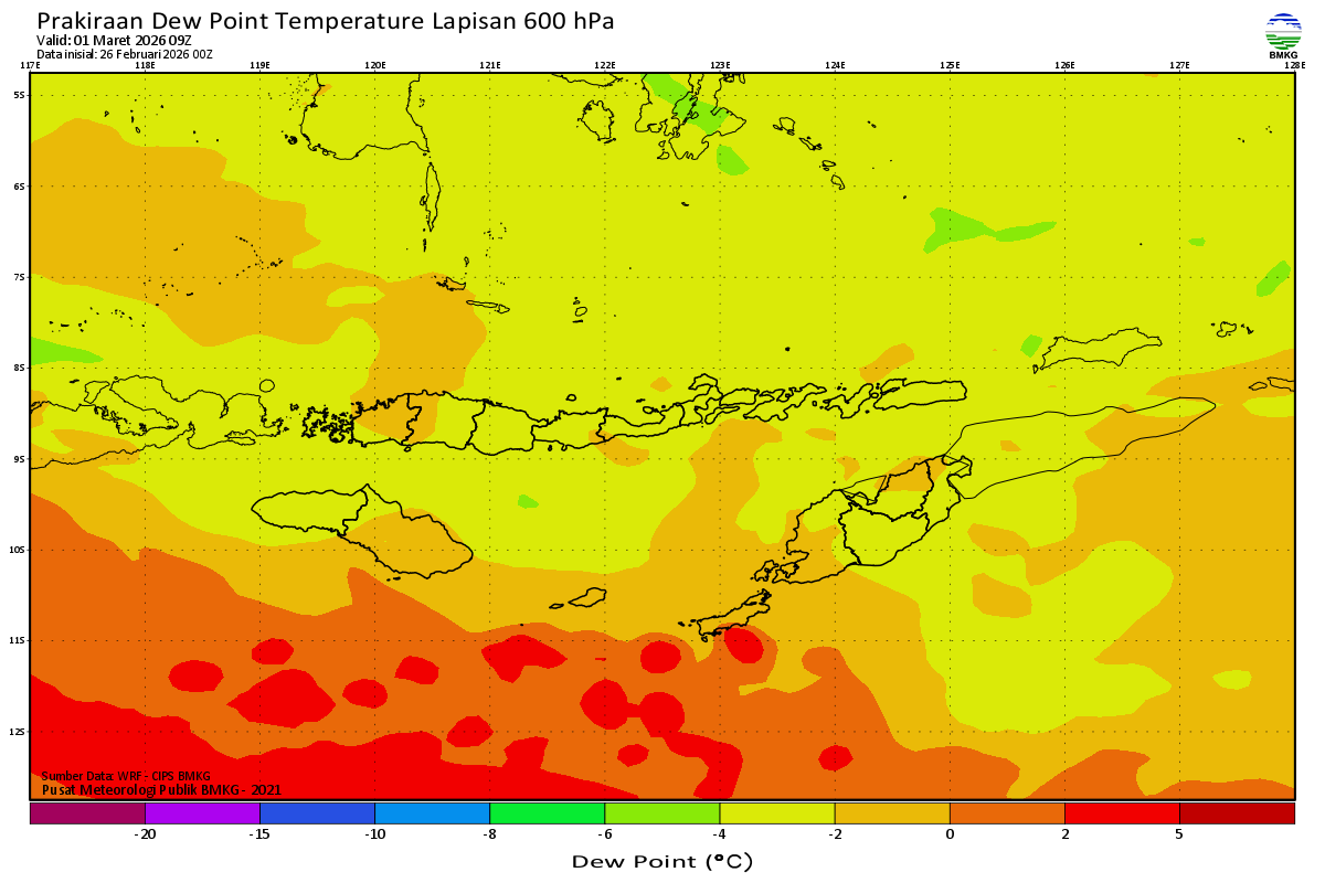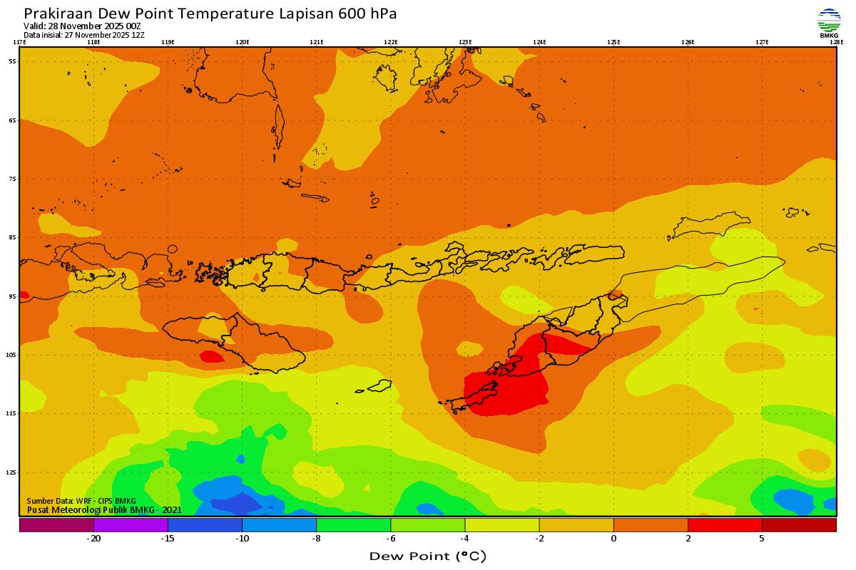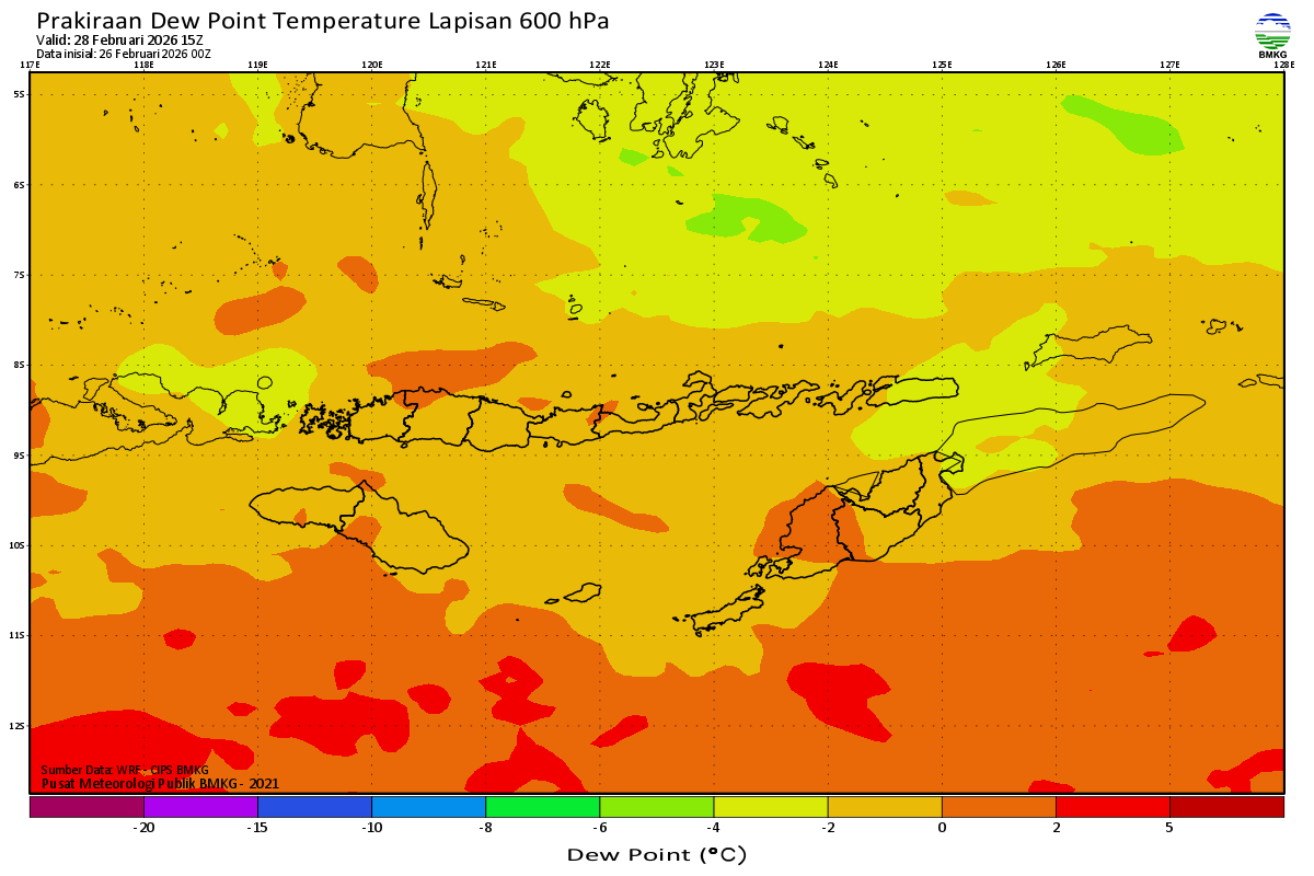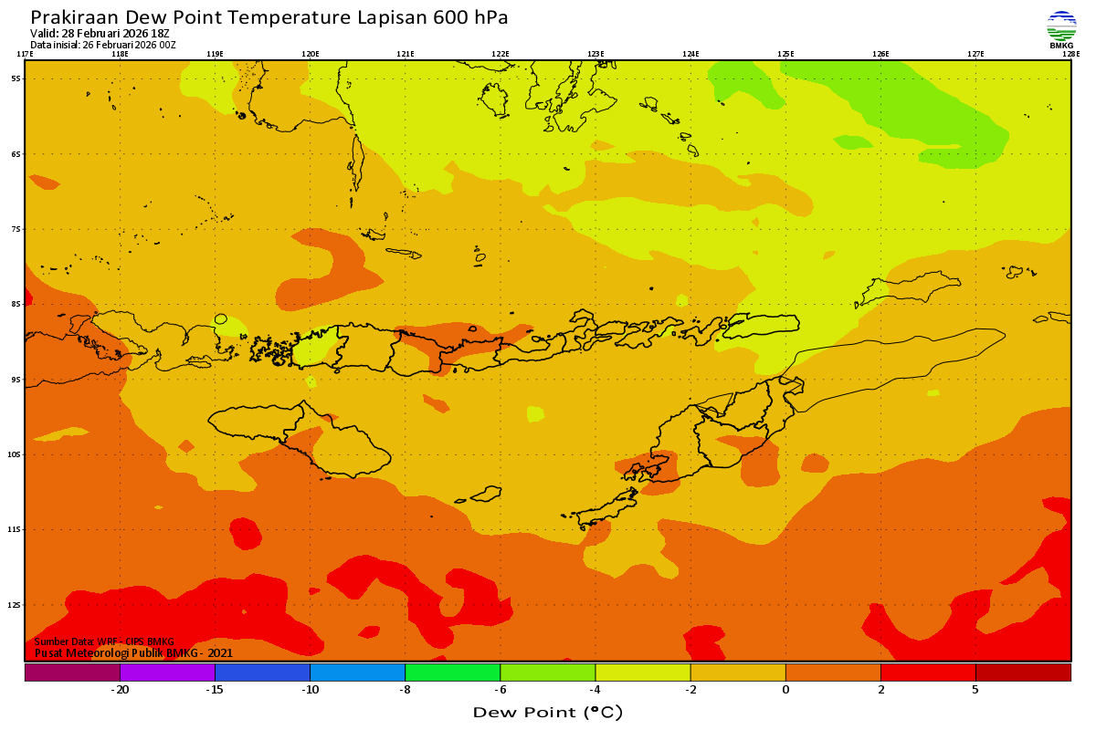 Prediksi Suhu Titik Embun 600 hPa NTT