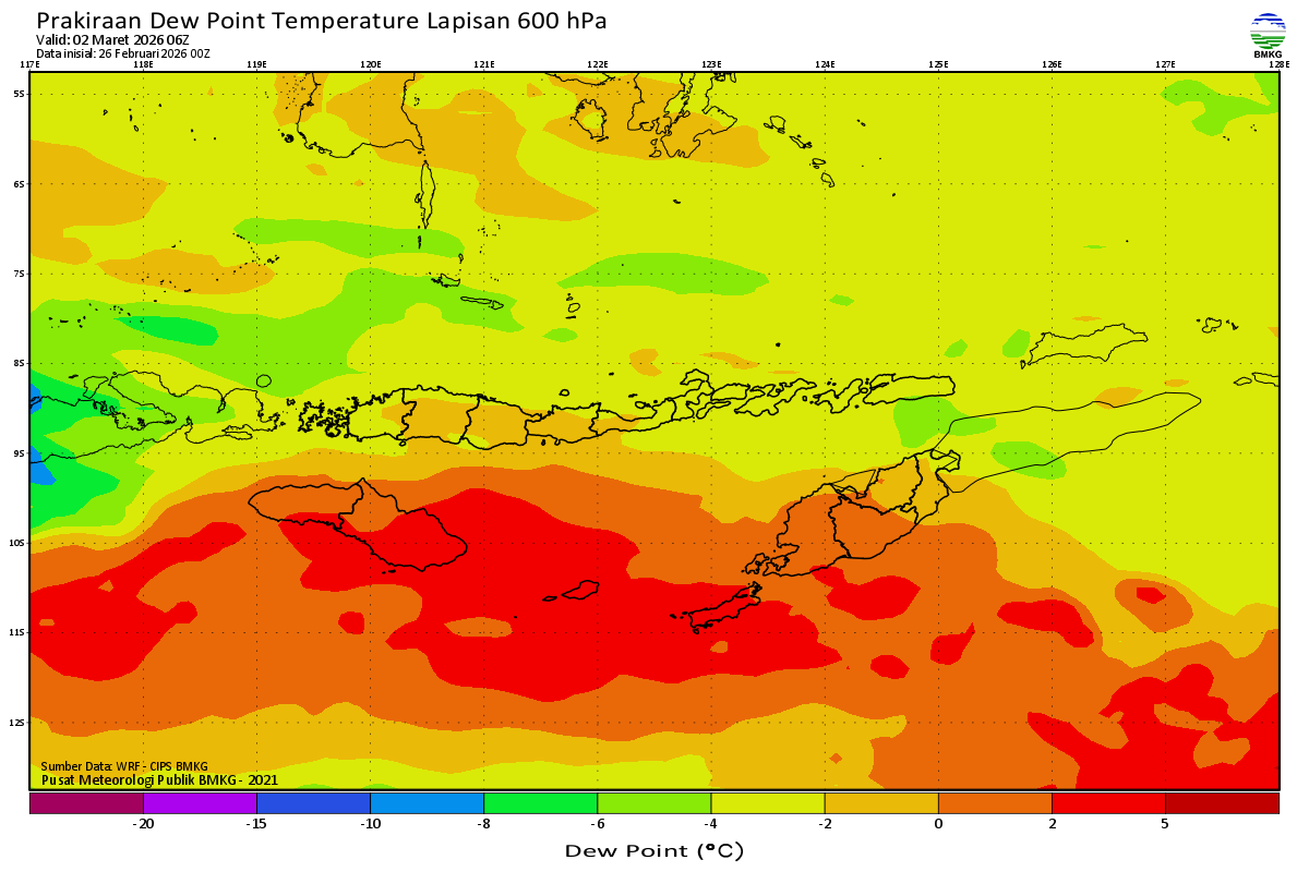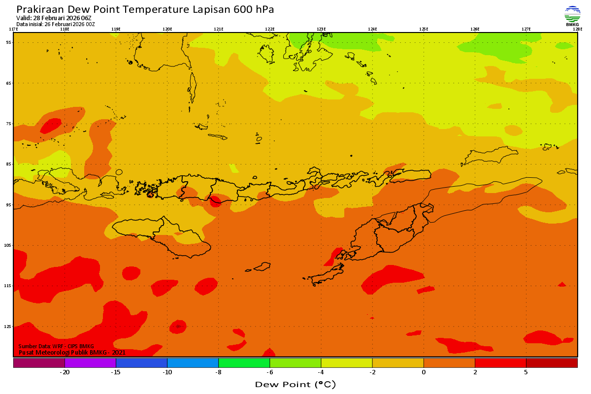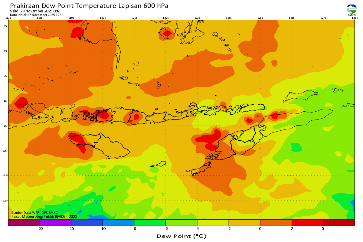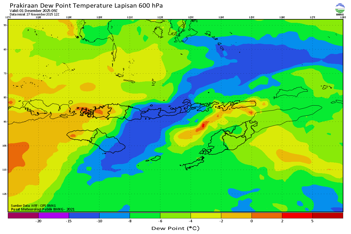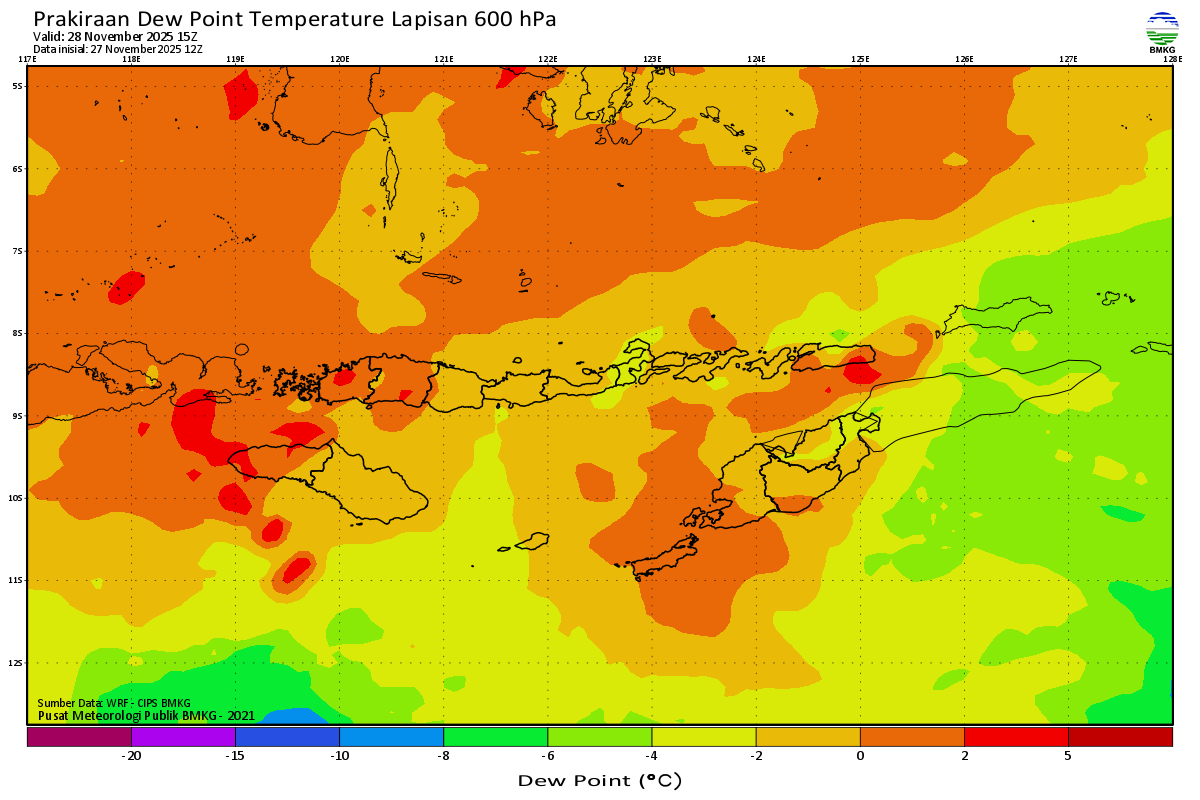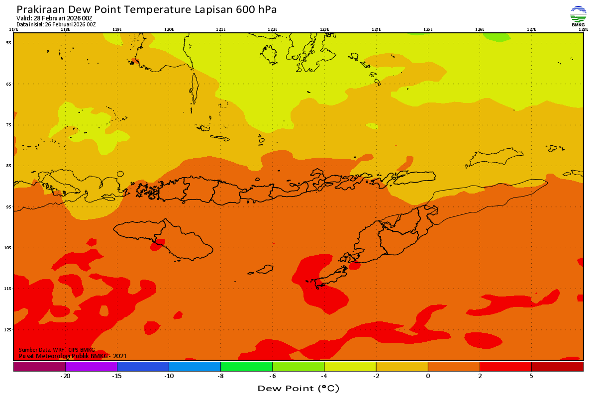 Prediksi Suhu Titik Embun 600 hPa NTT