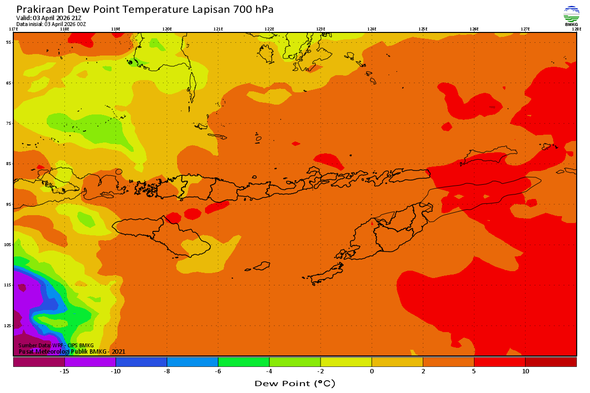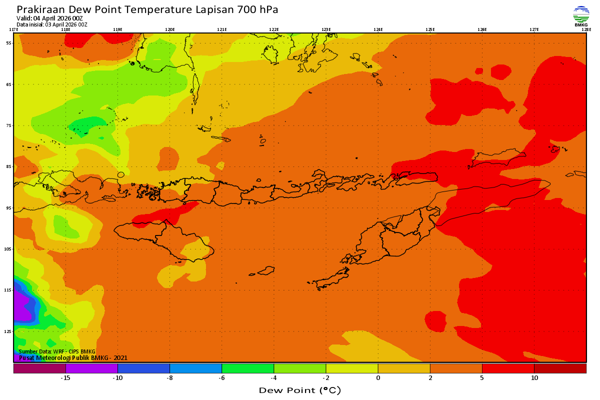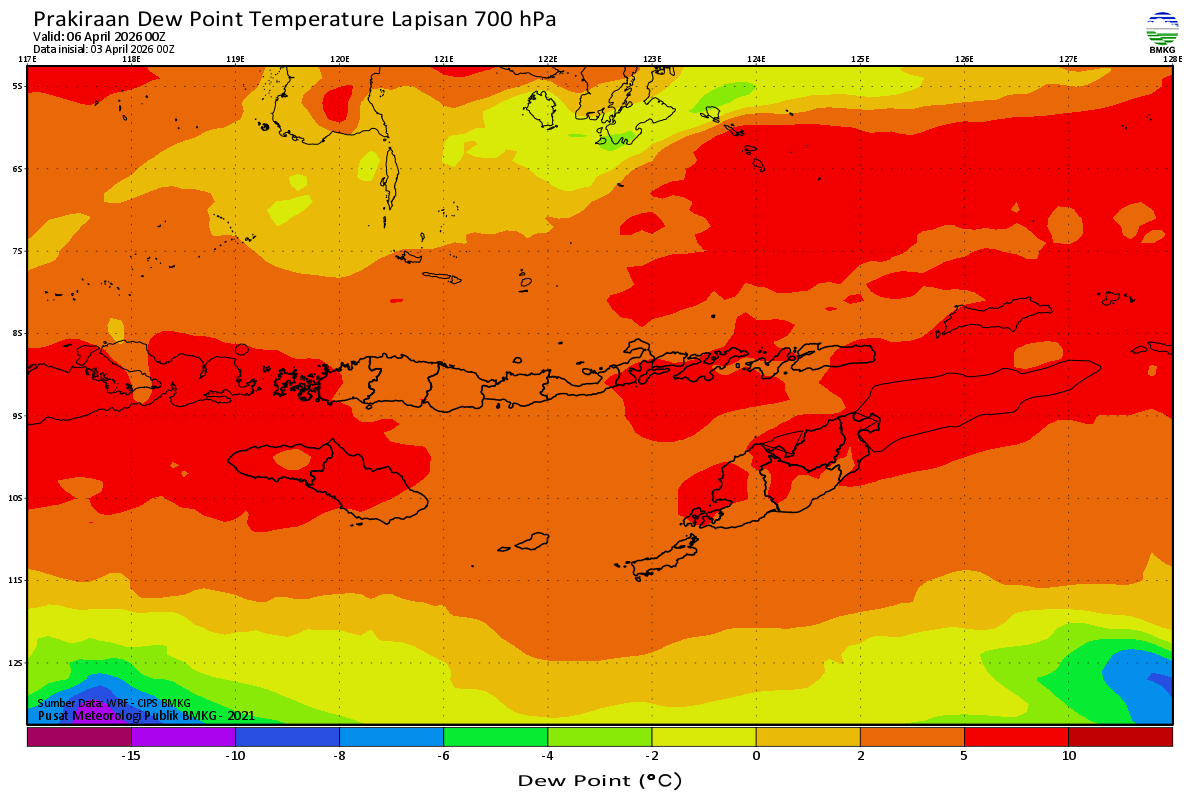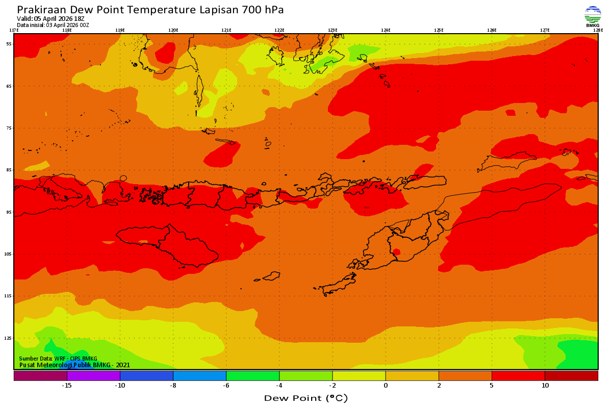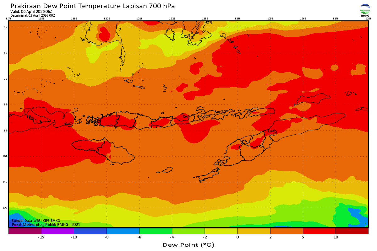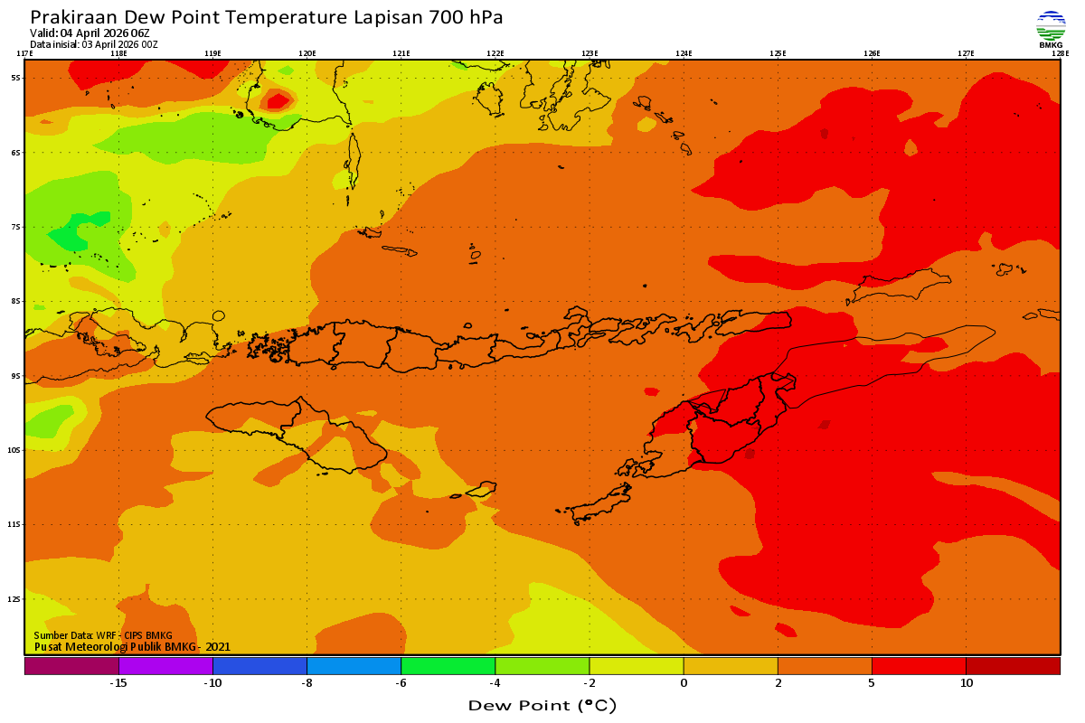 Prediksi Suhu Titik Embun 700 hPa NTT