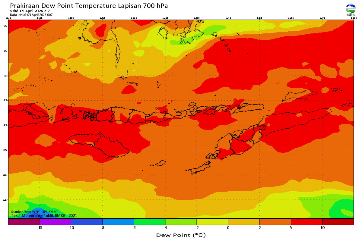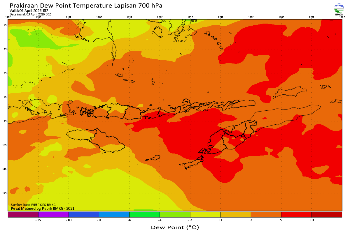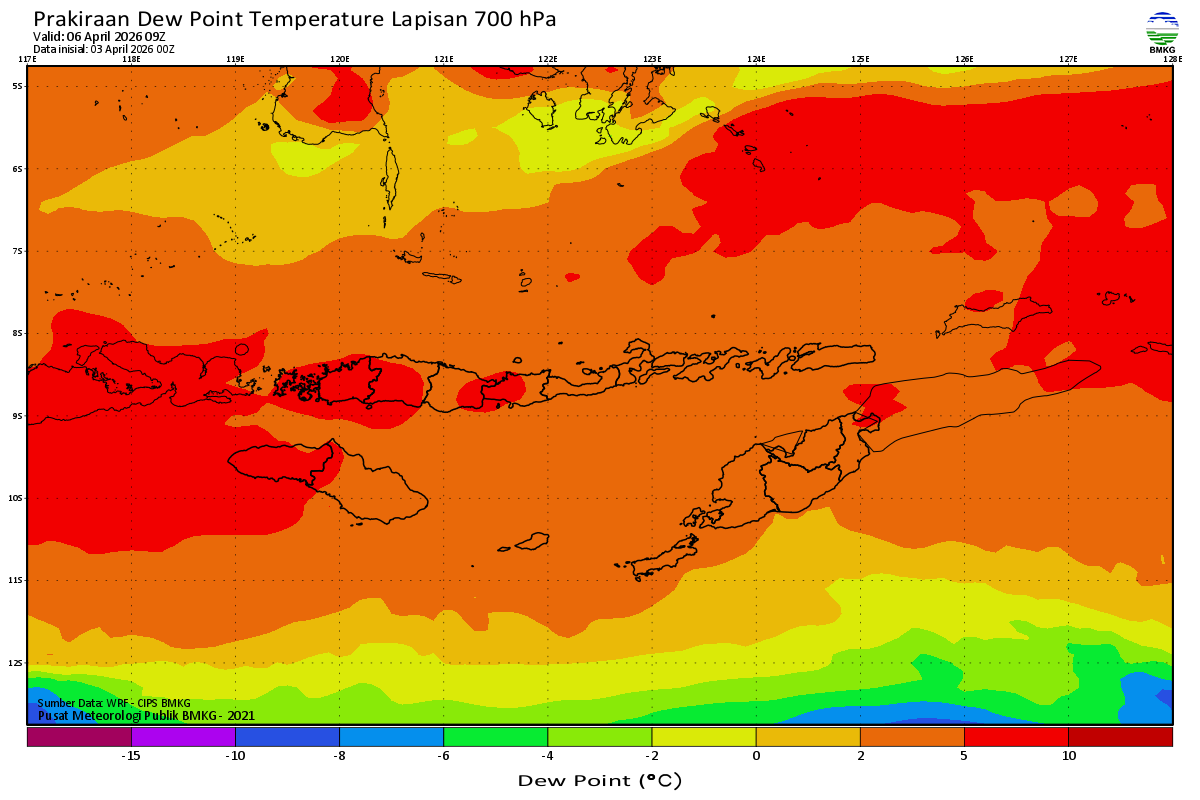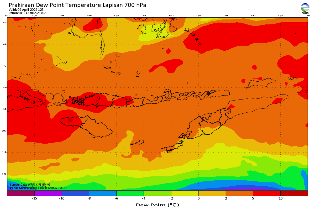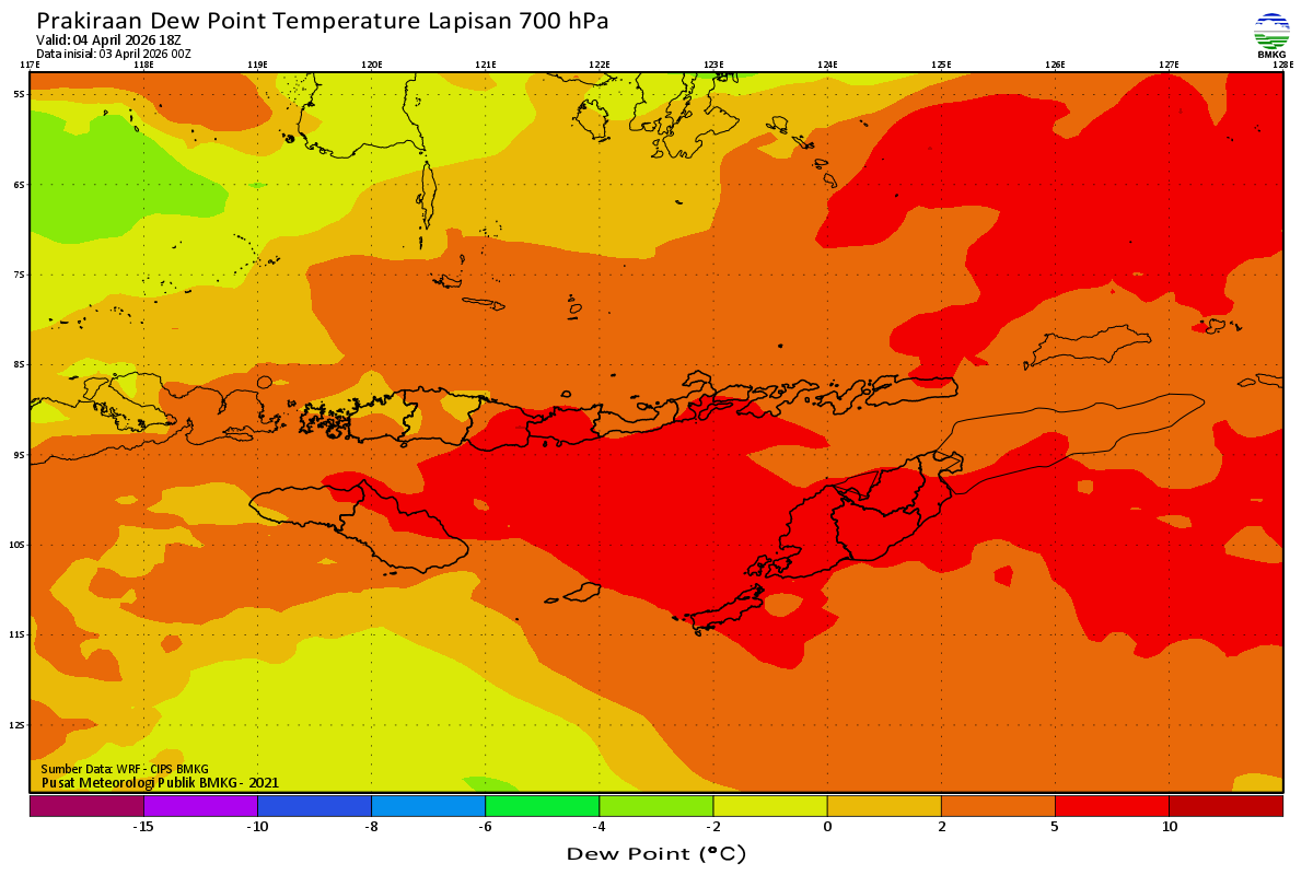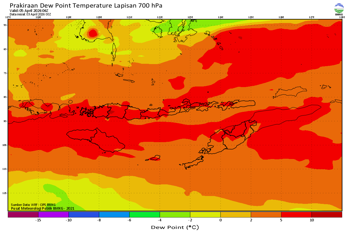Prediksi Suhu Titik Embun 700 hPa NTT