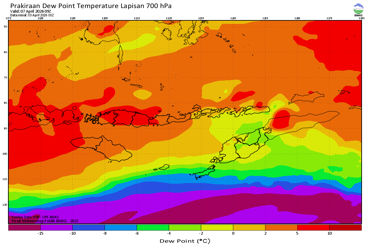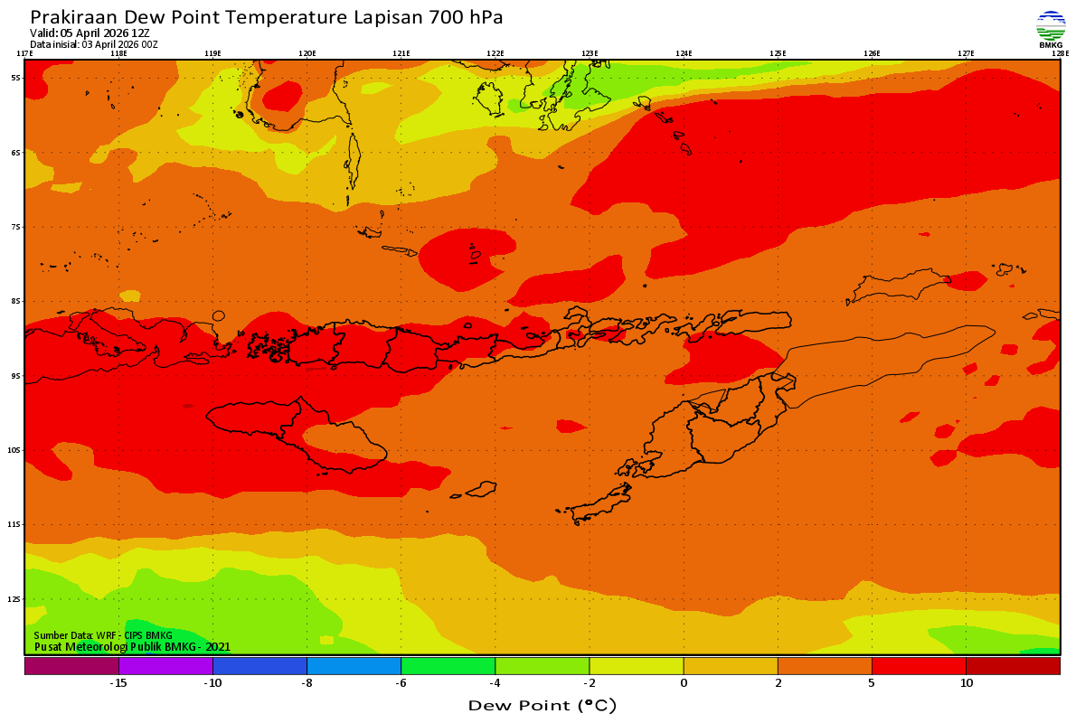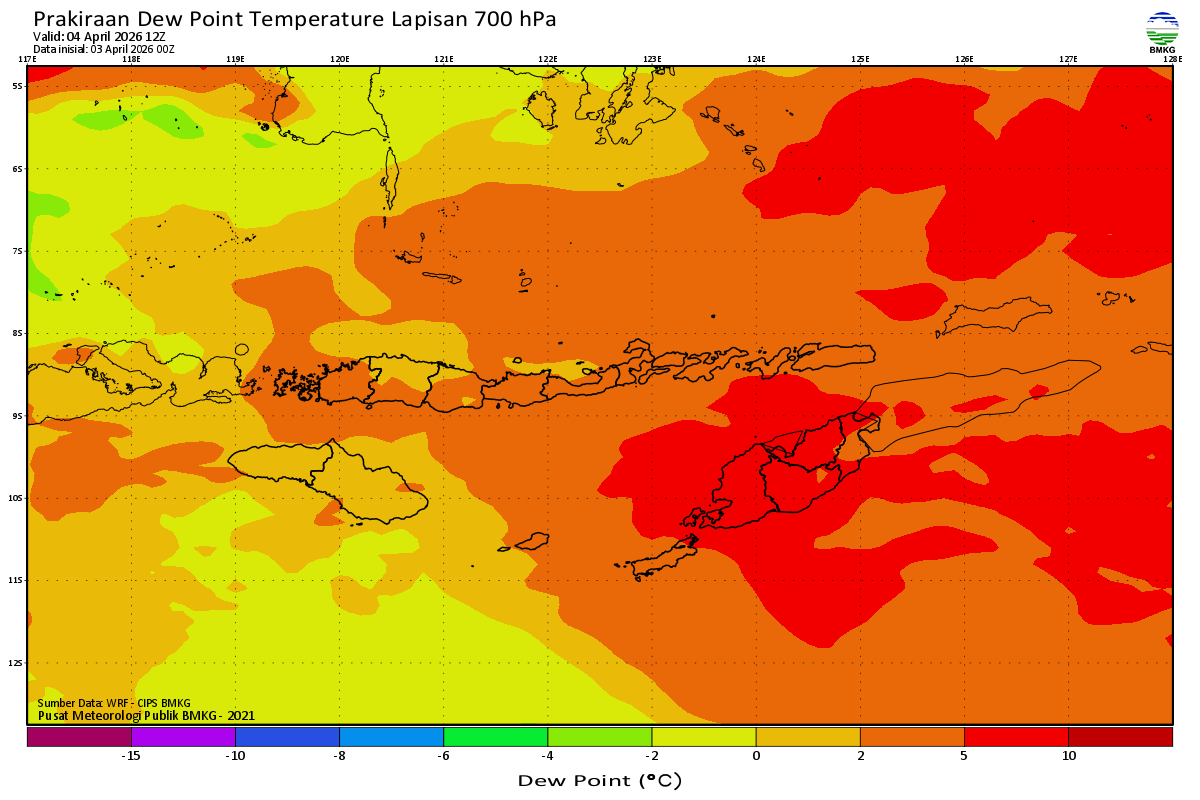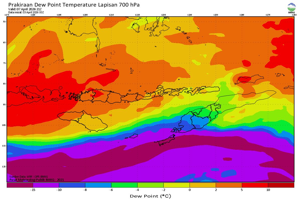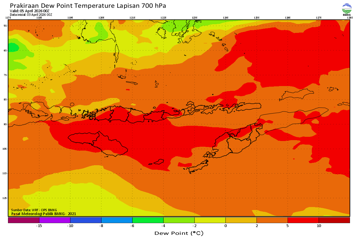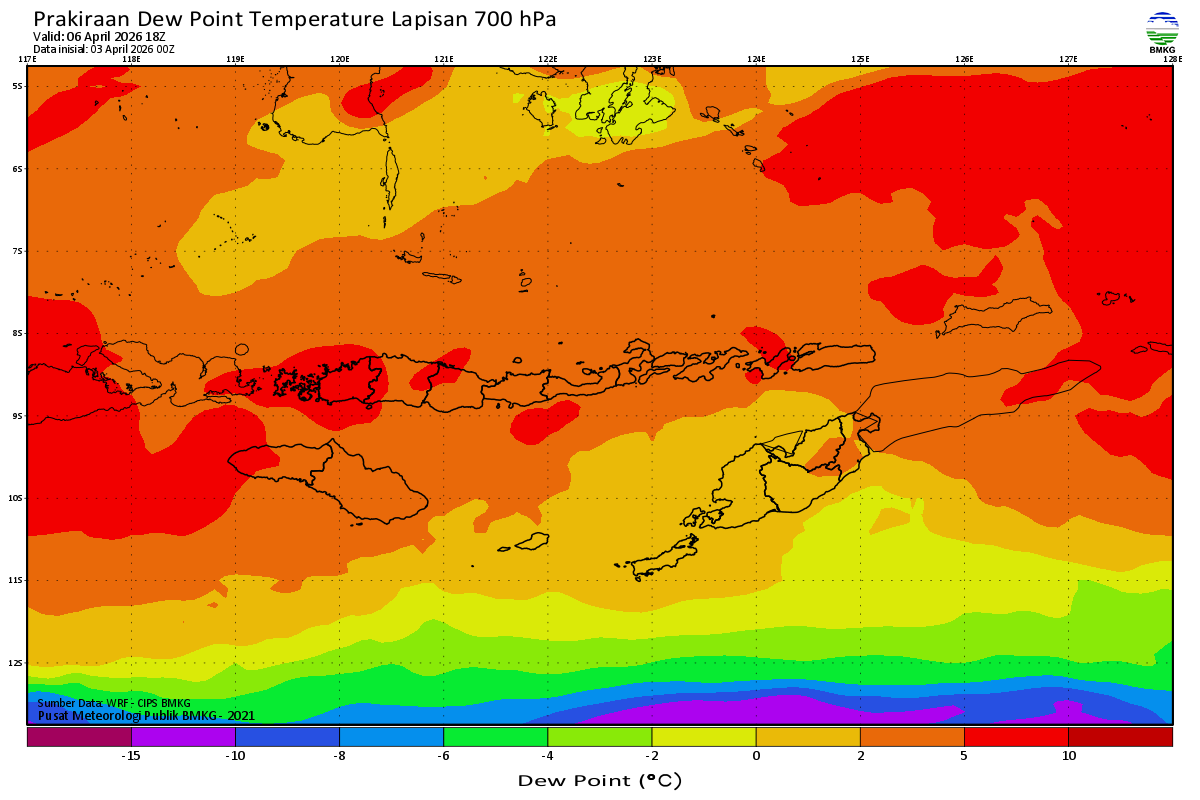Prediksi Suhu Titik Embun 700 hPa NTT