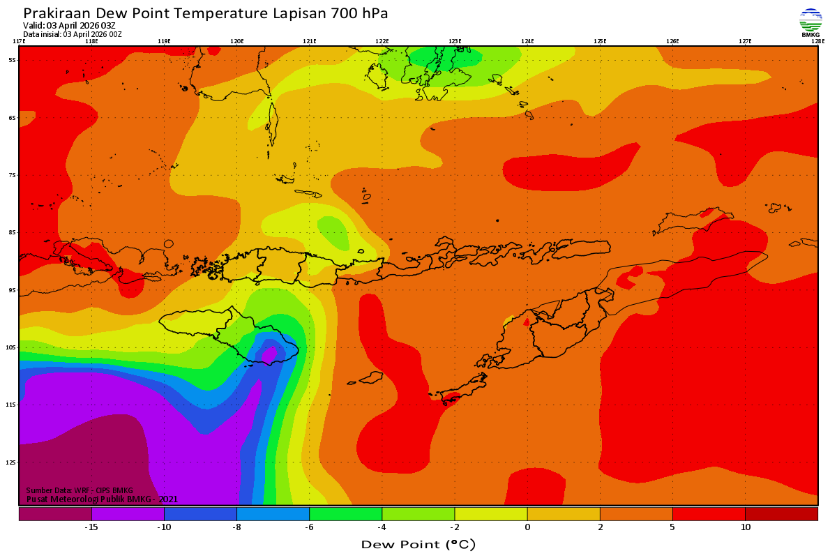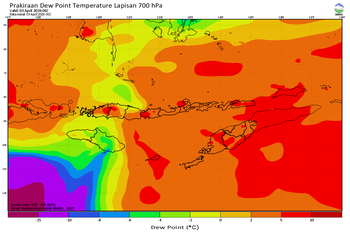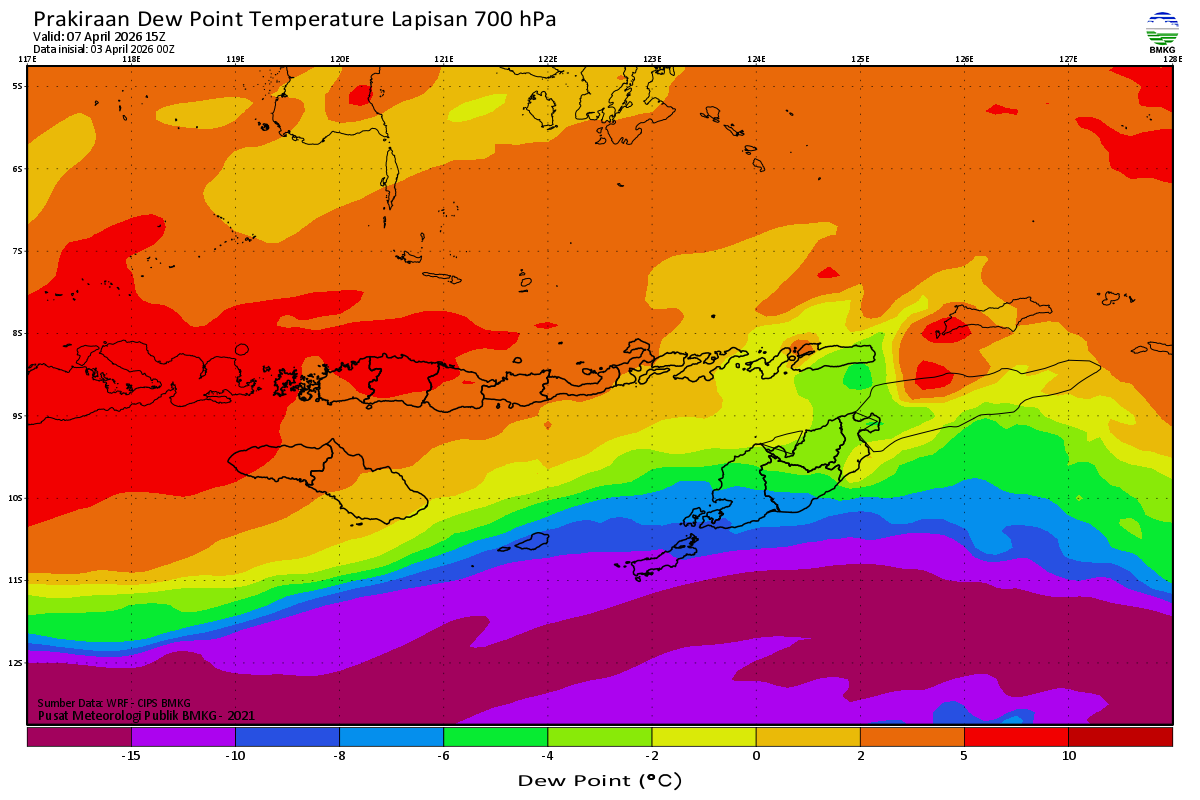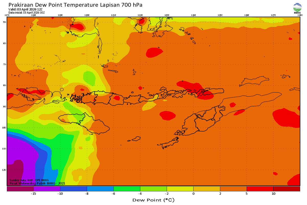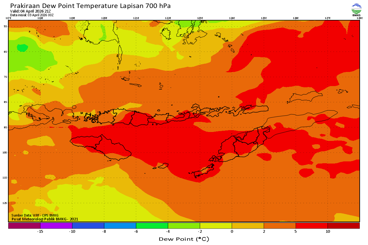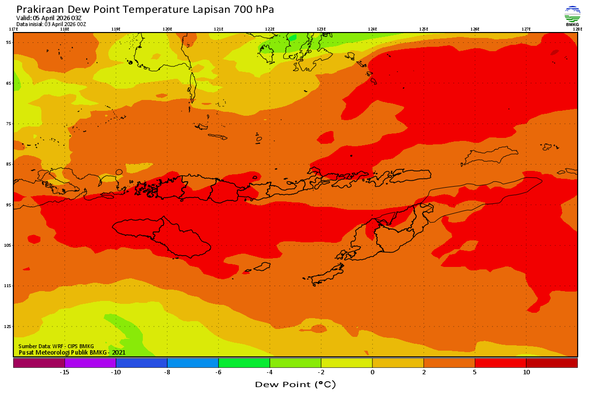 Prediksi Suhu Titik Embun 700 hPa NTT