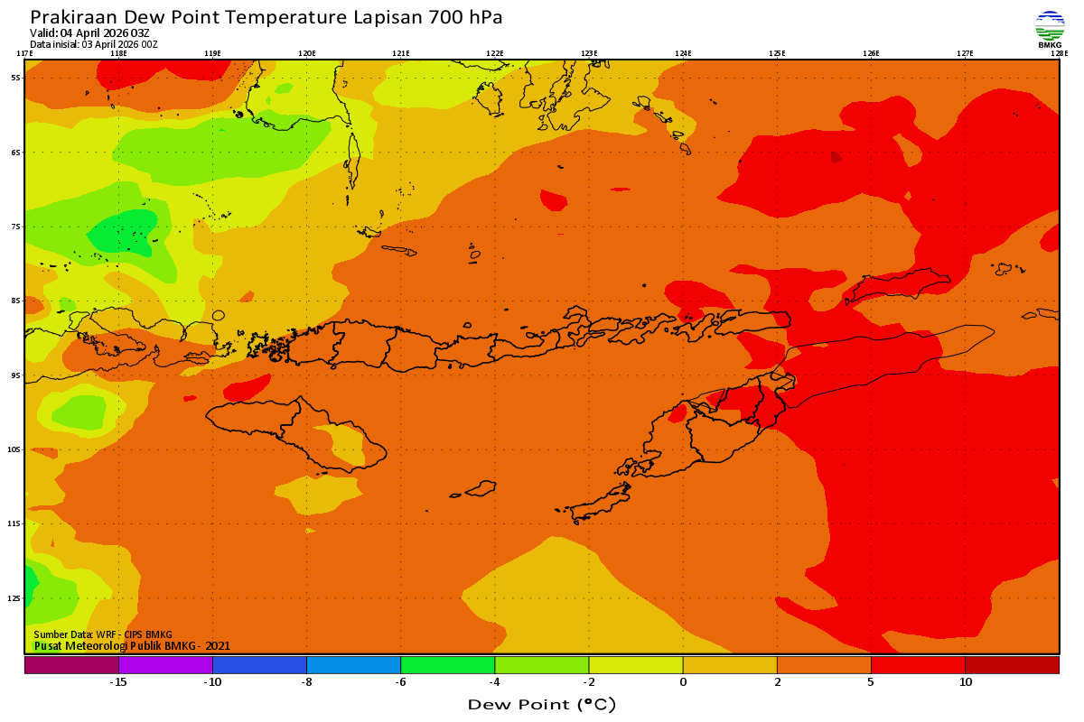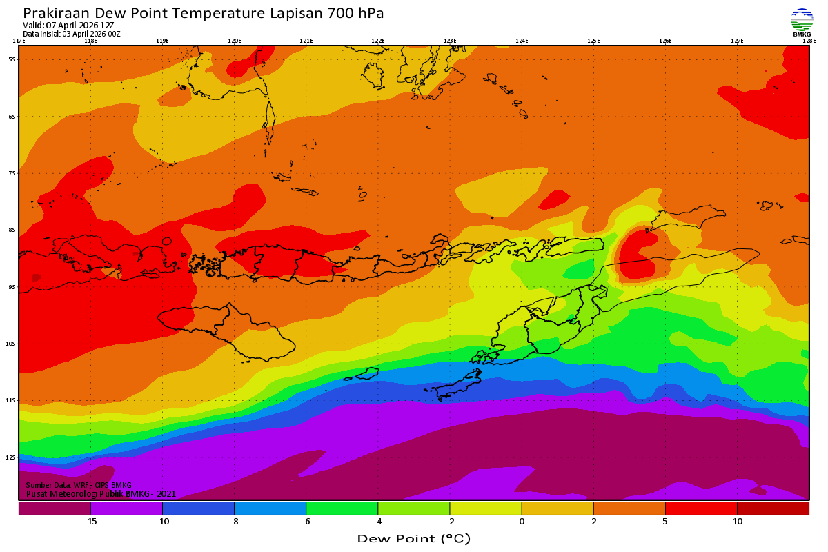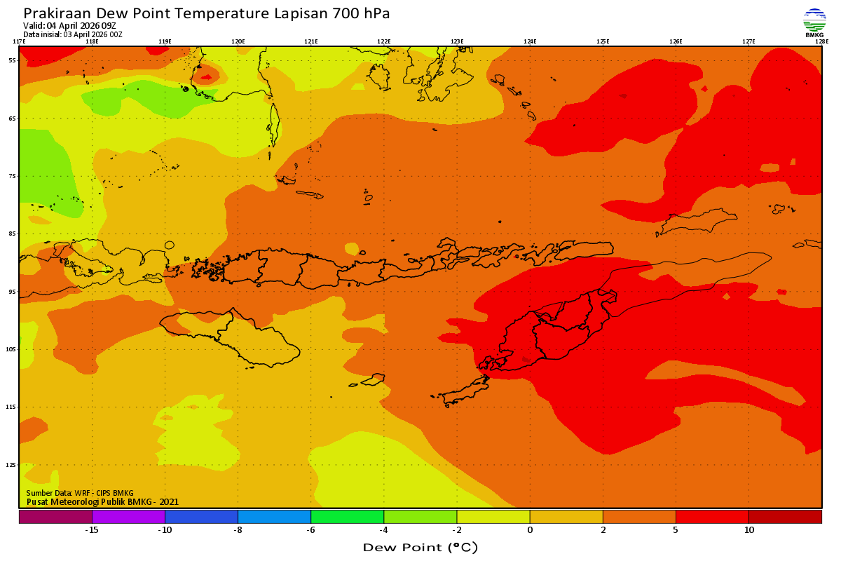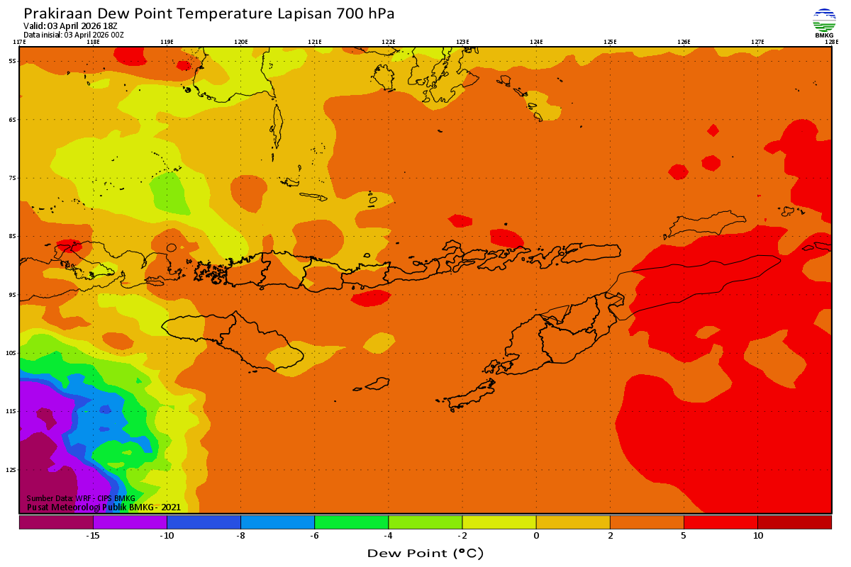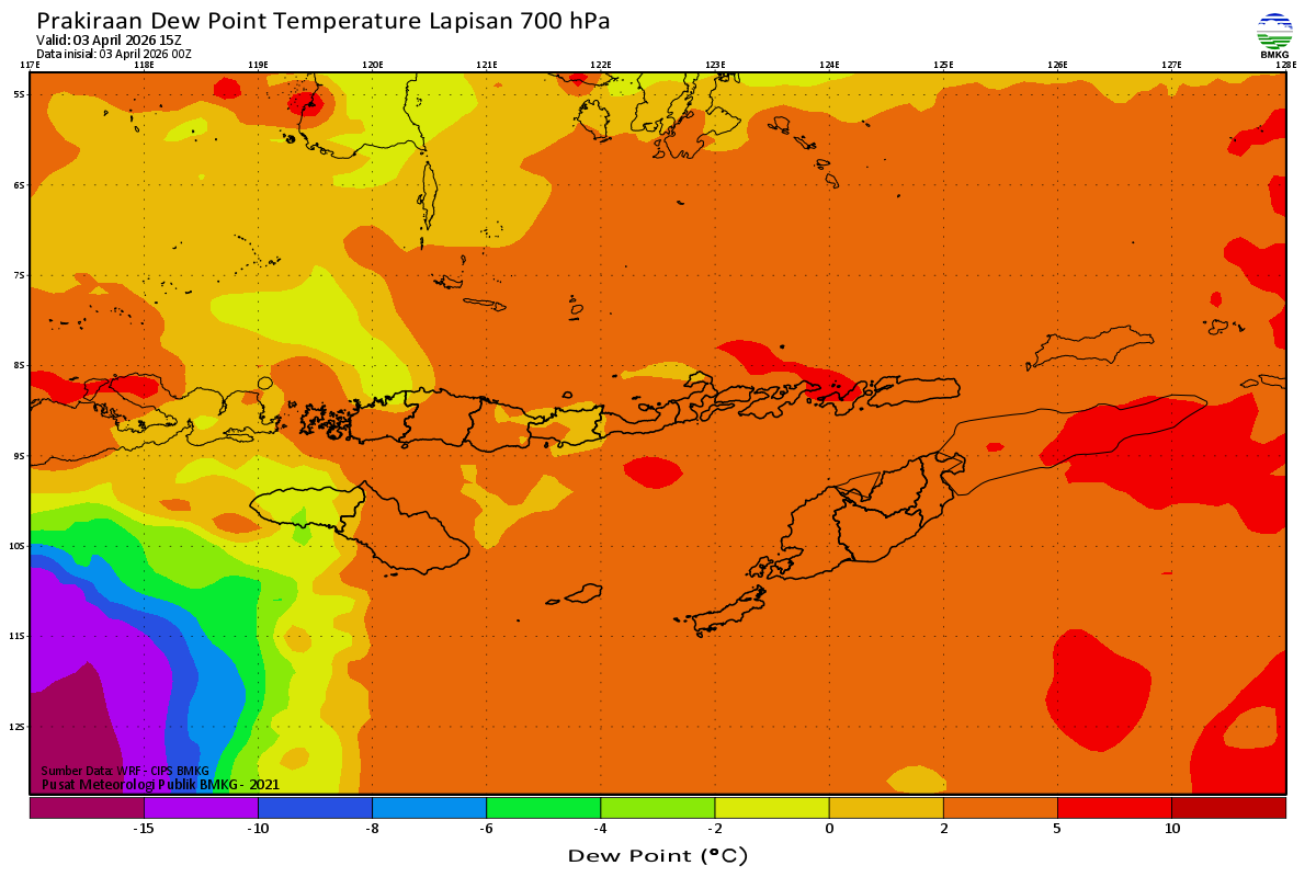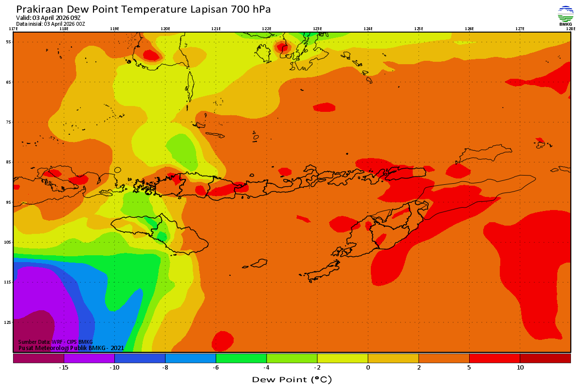 Prediksi Suhu Titik Embun 700 hPa NTT