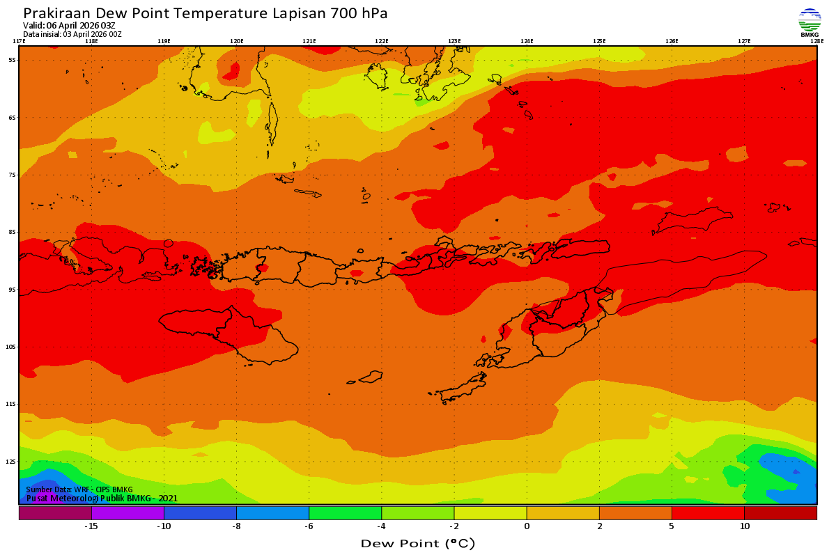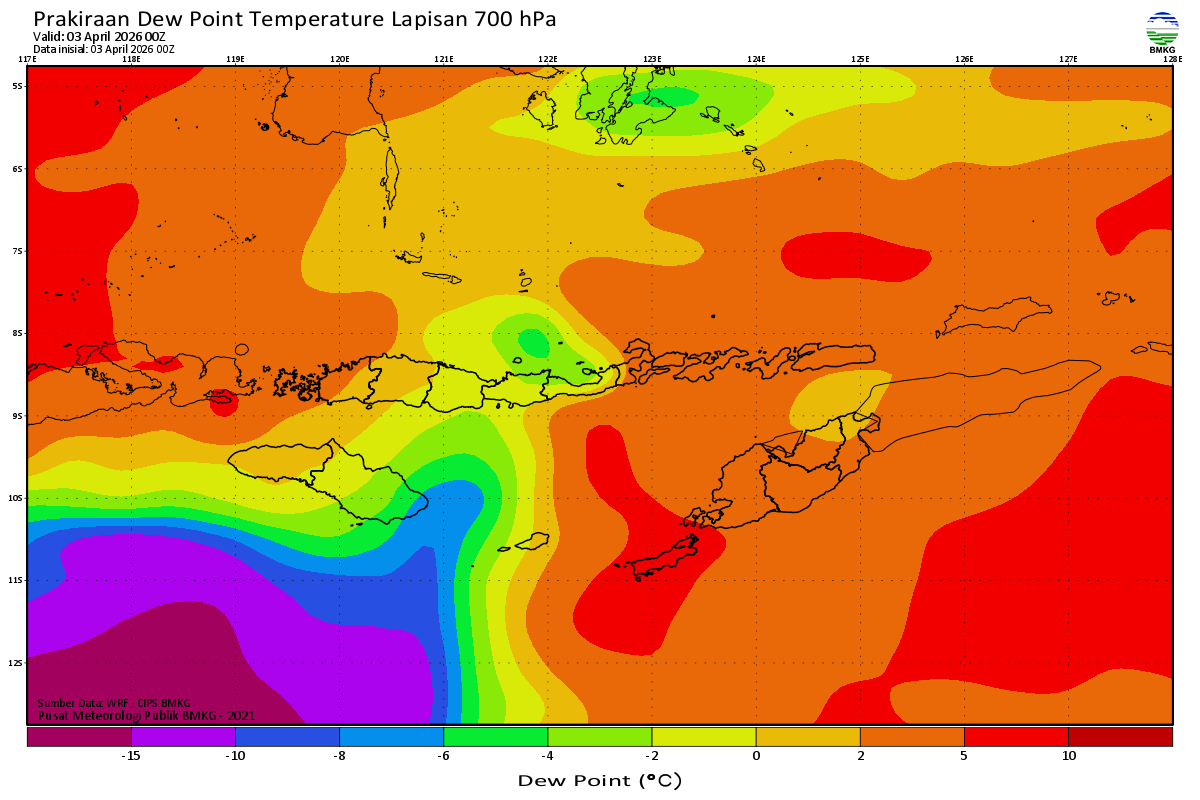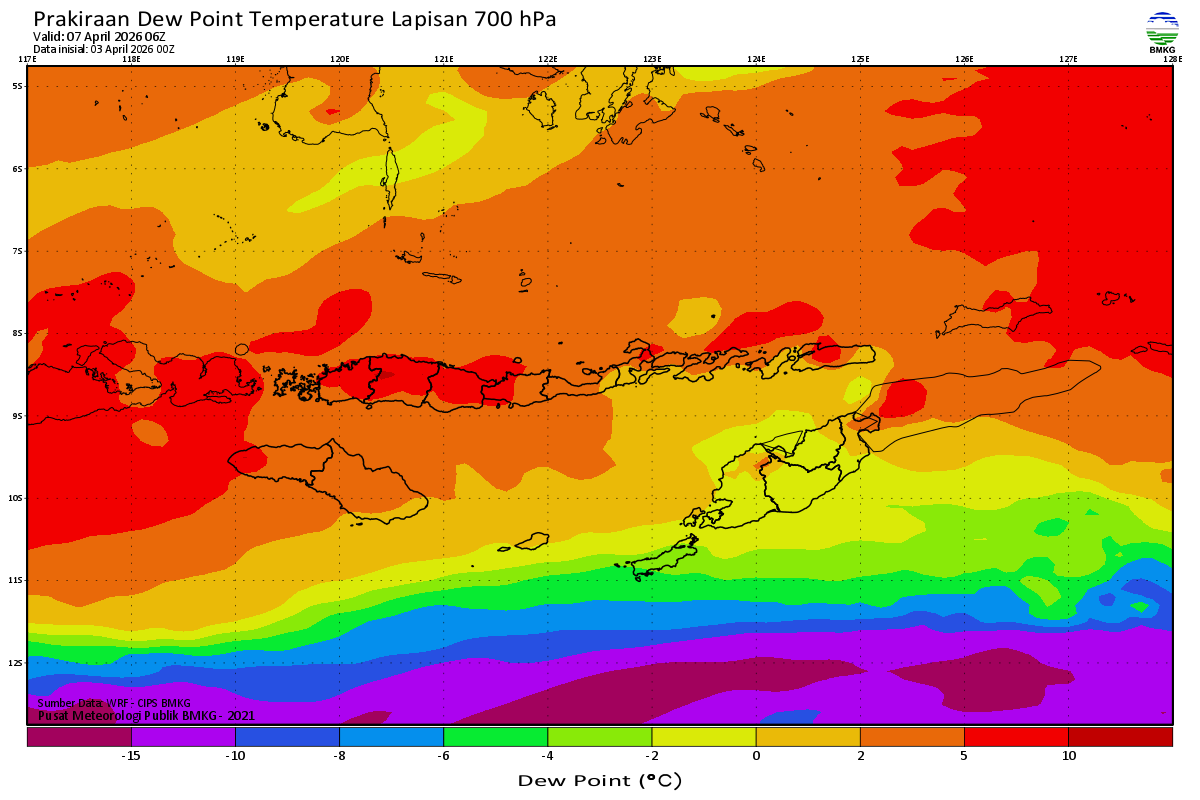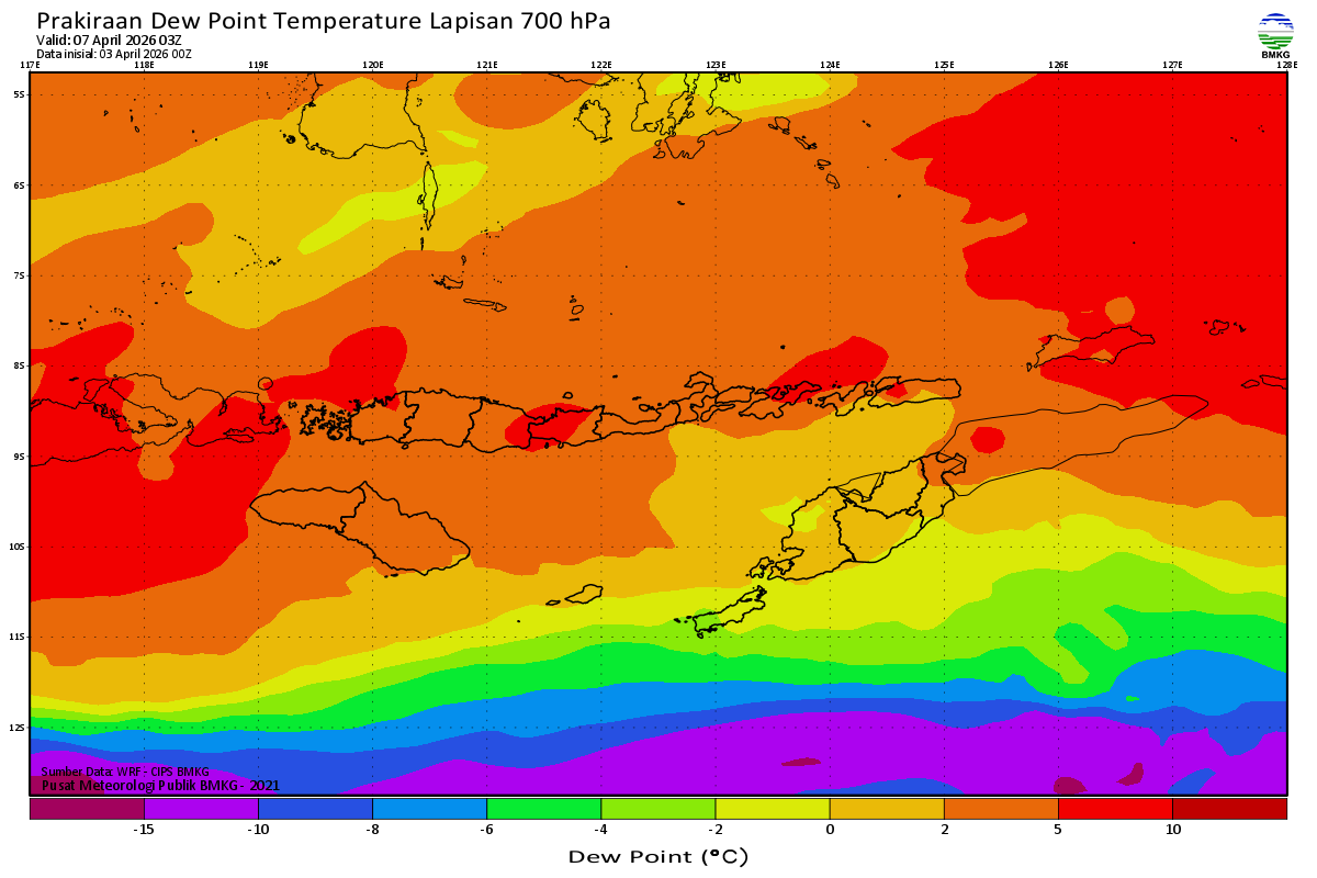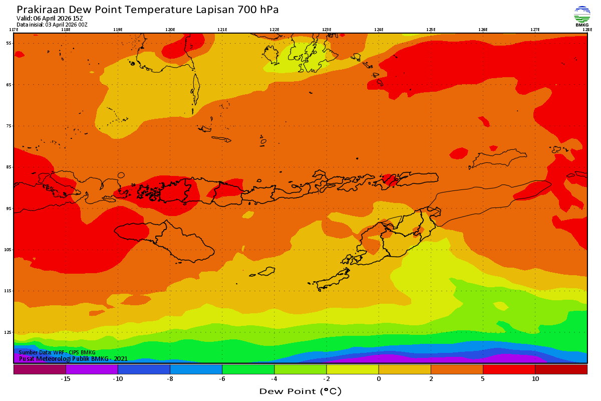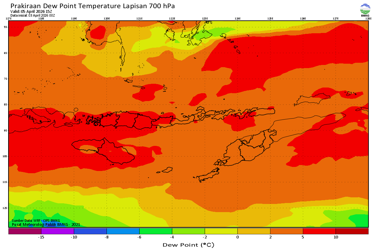 Prediksi Suhu Titik Embun 700 hPa NTT
