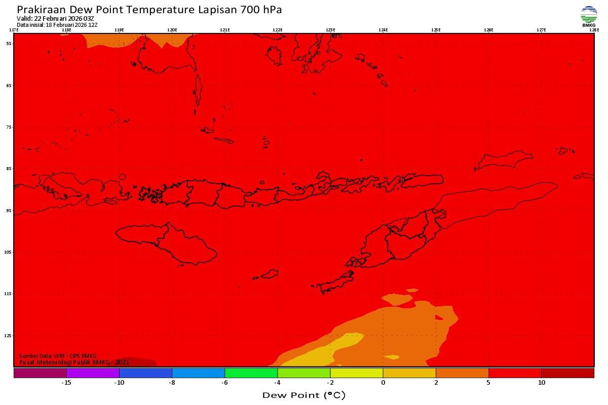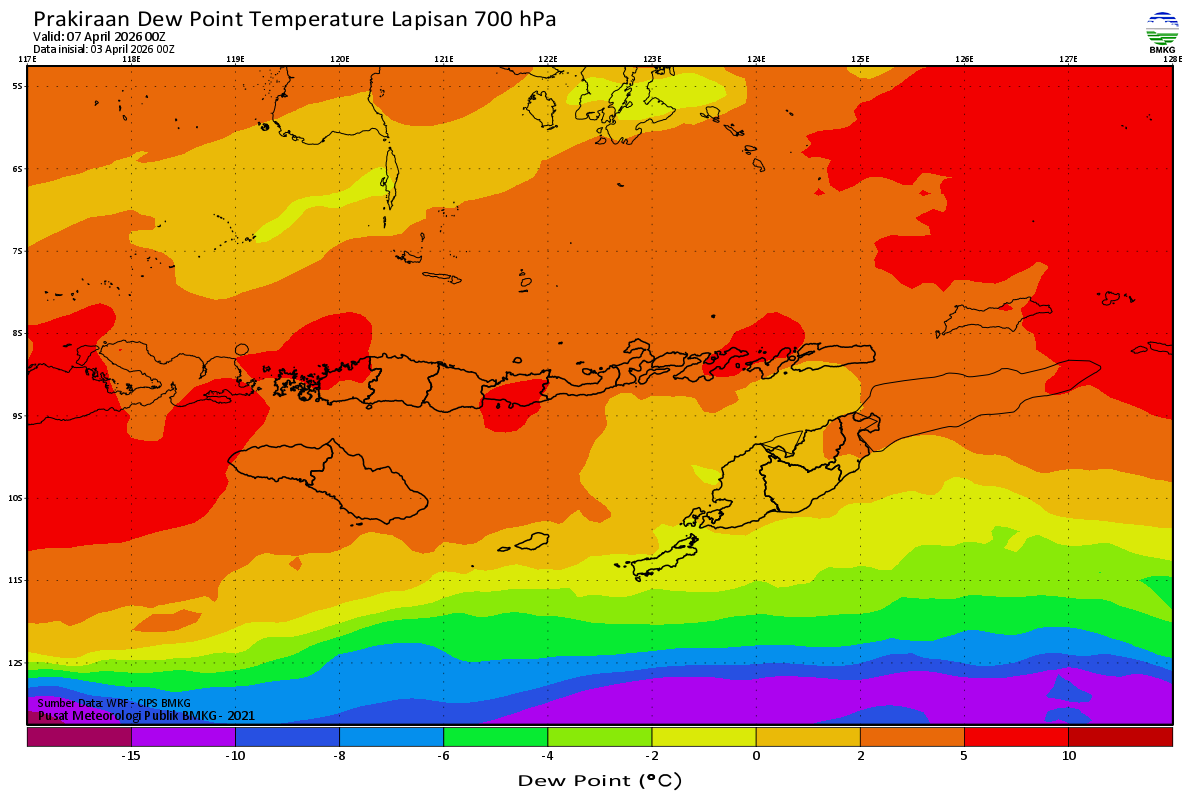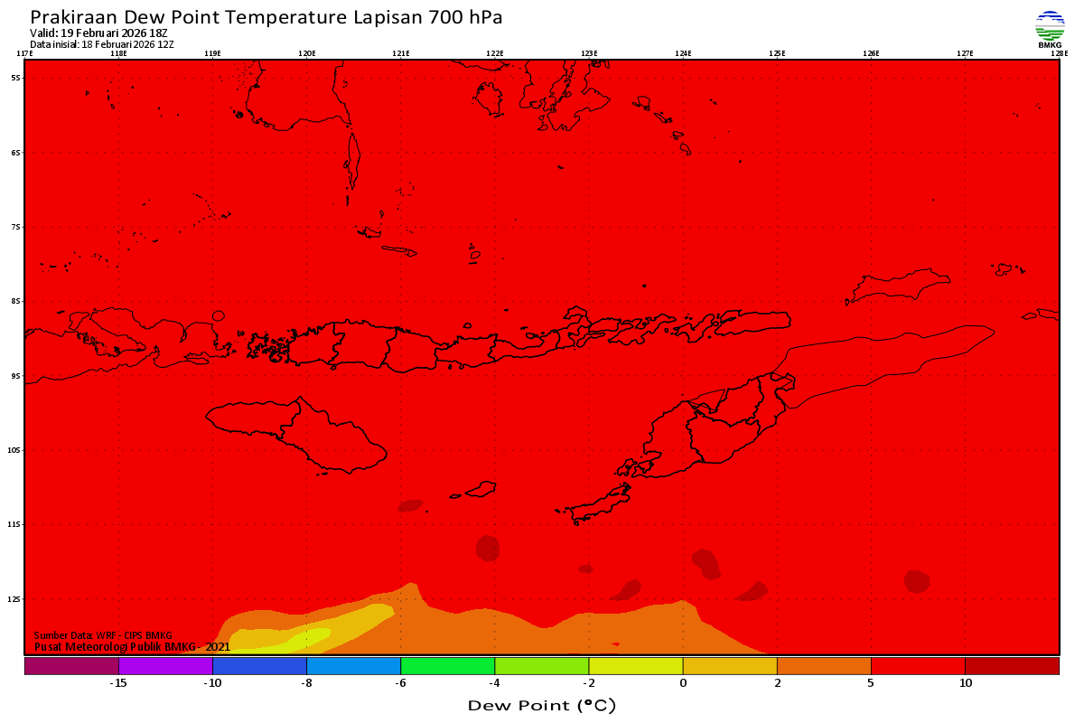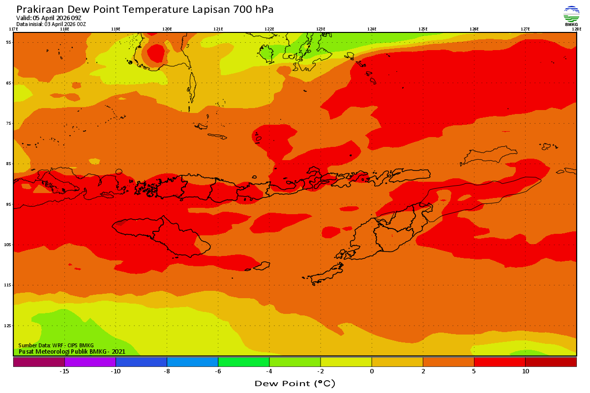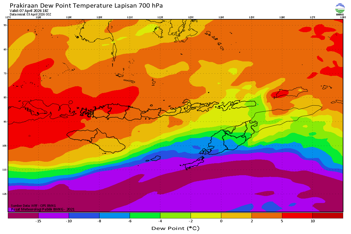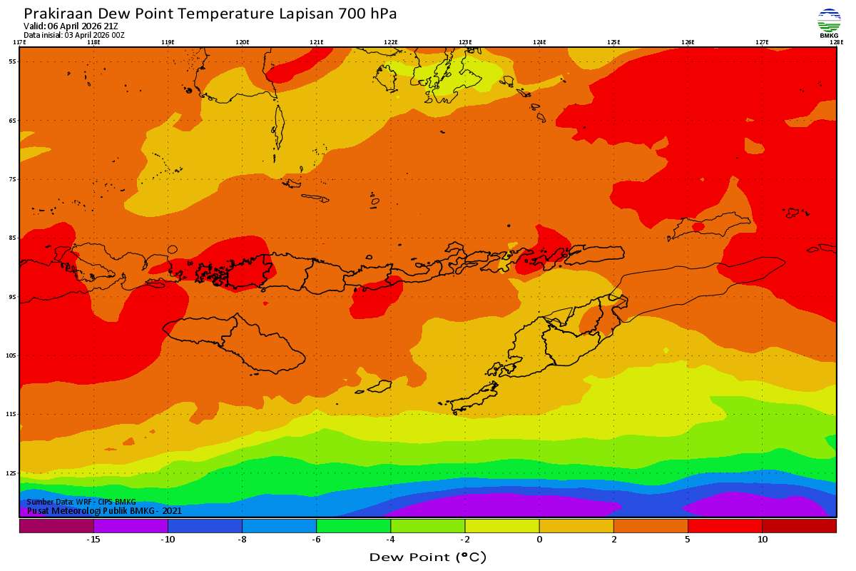 Prediksi Suhu Titik Embun 700 hPa NTT