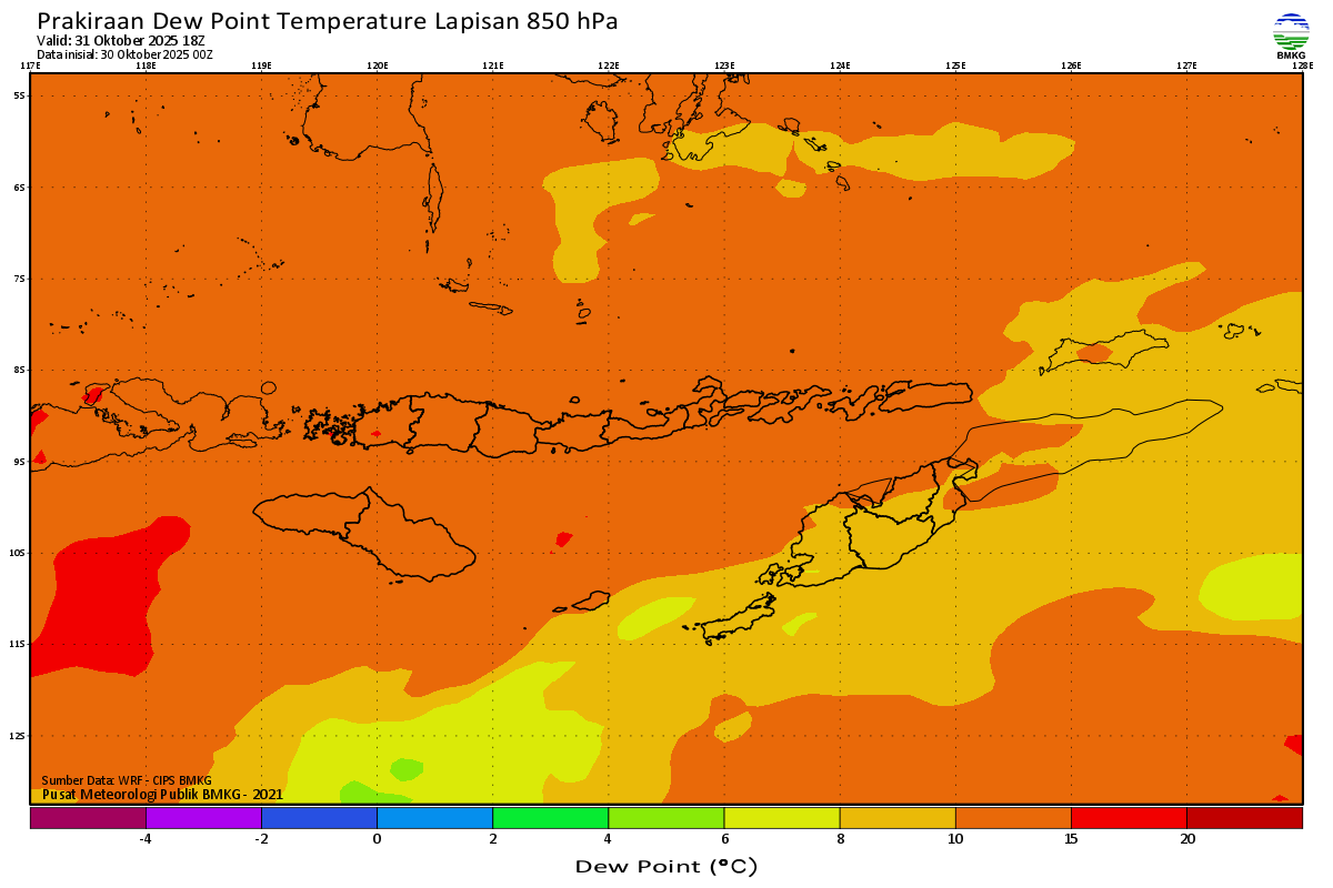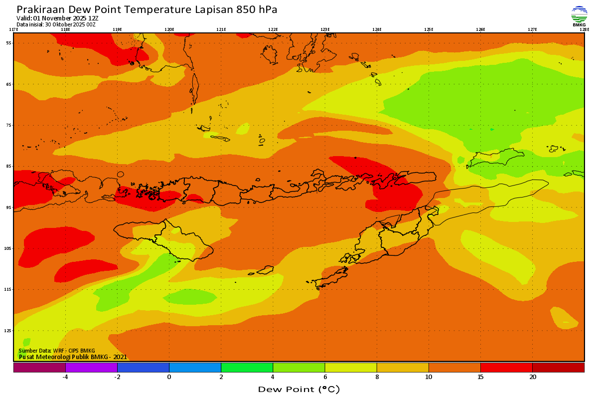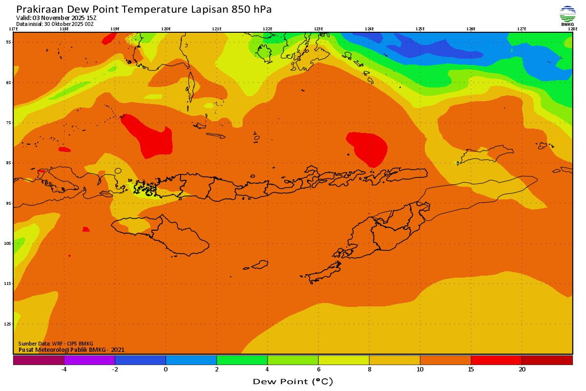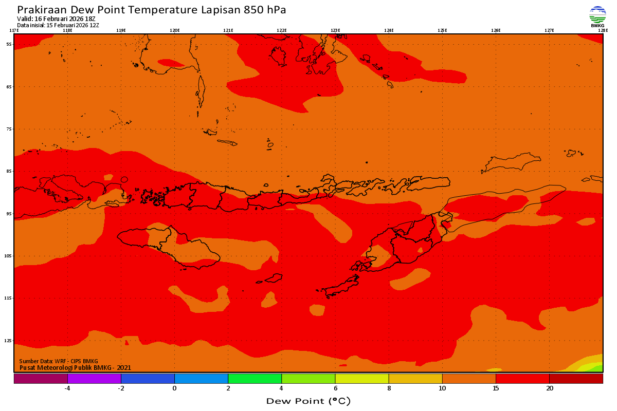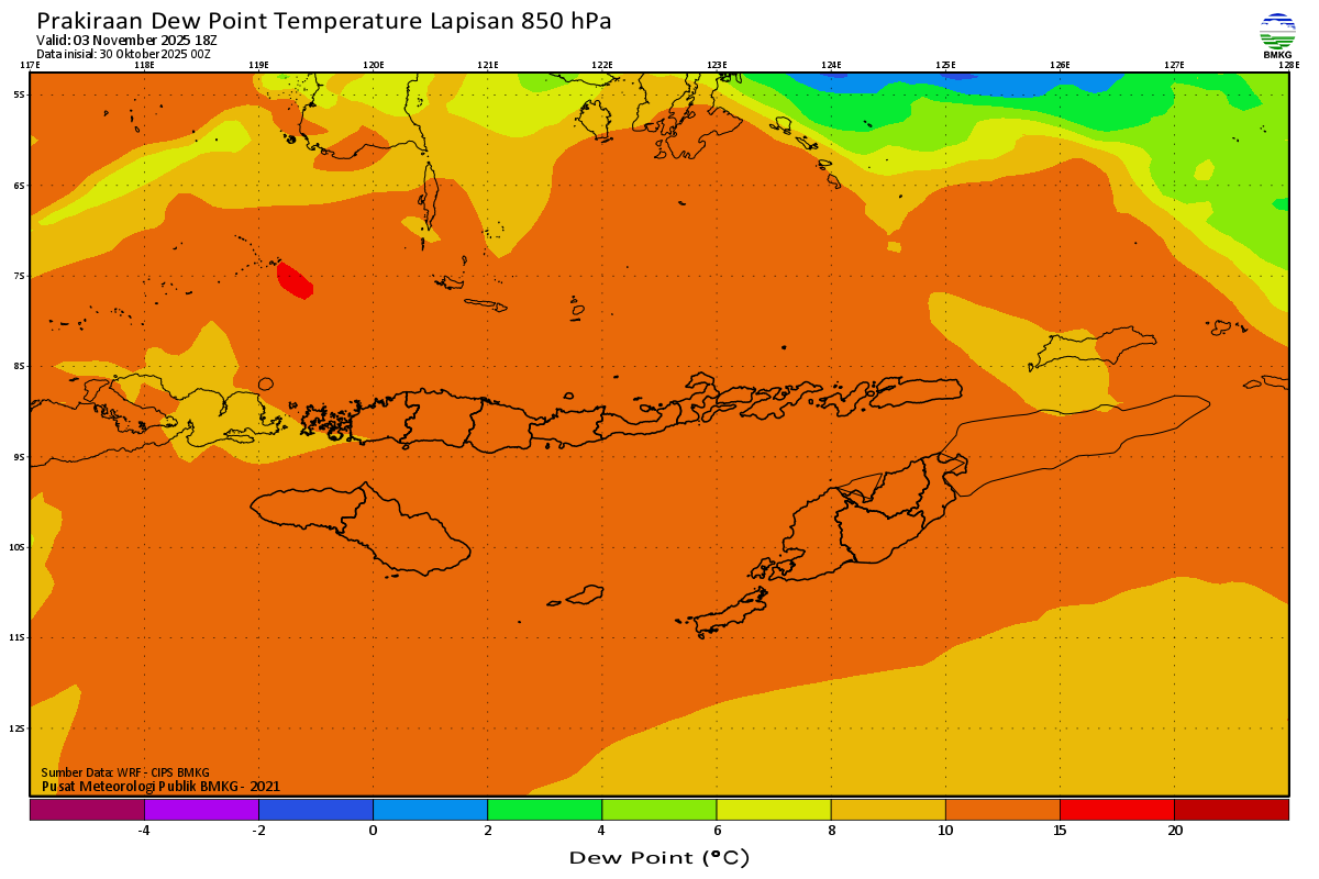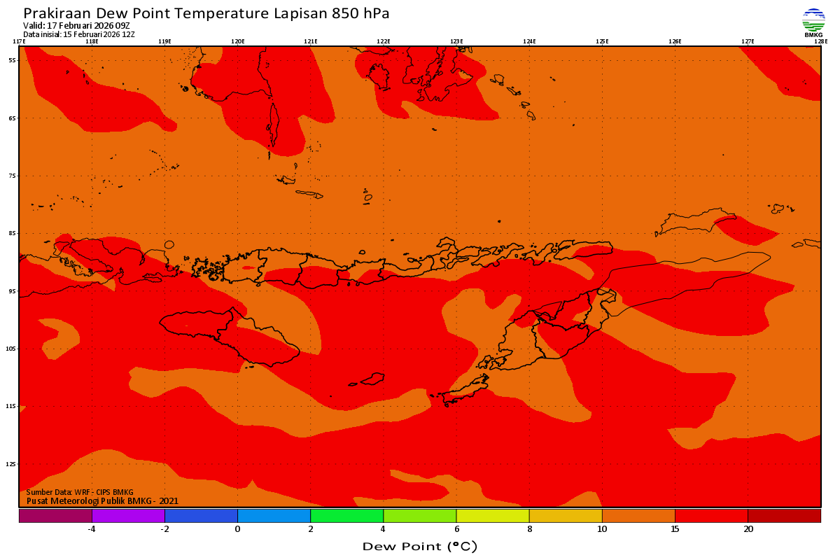 Prediksi Suhu Titik Embun 850 hPa NTT