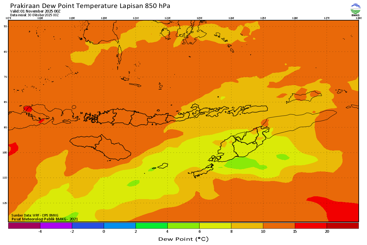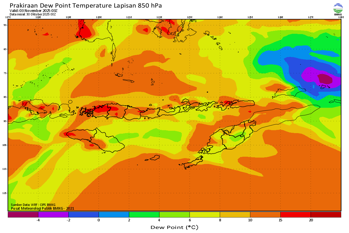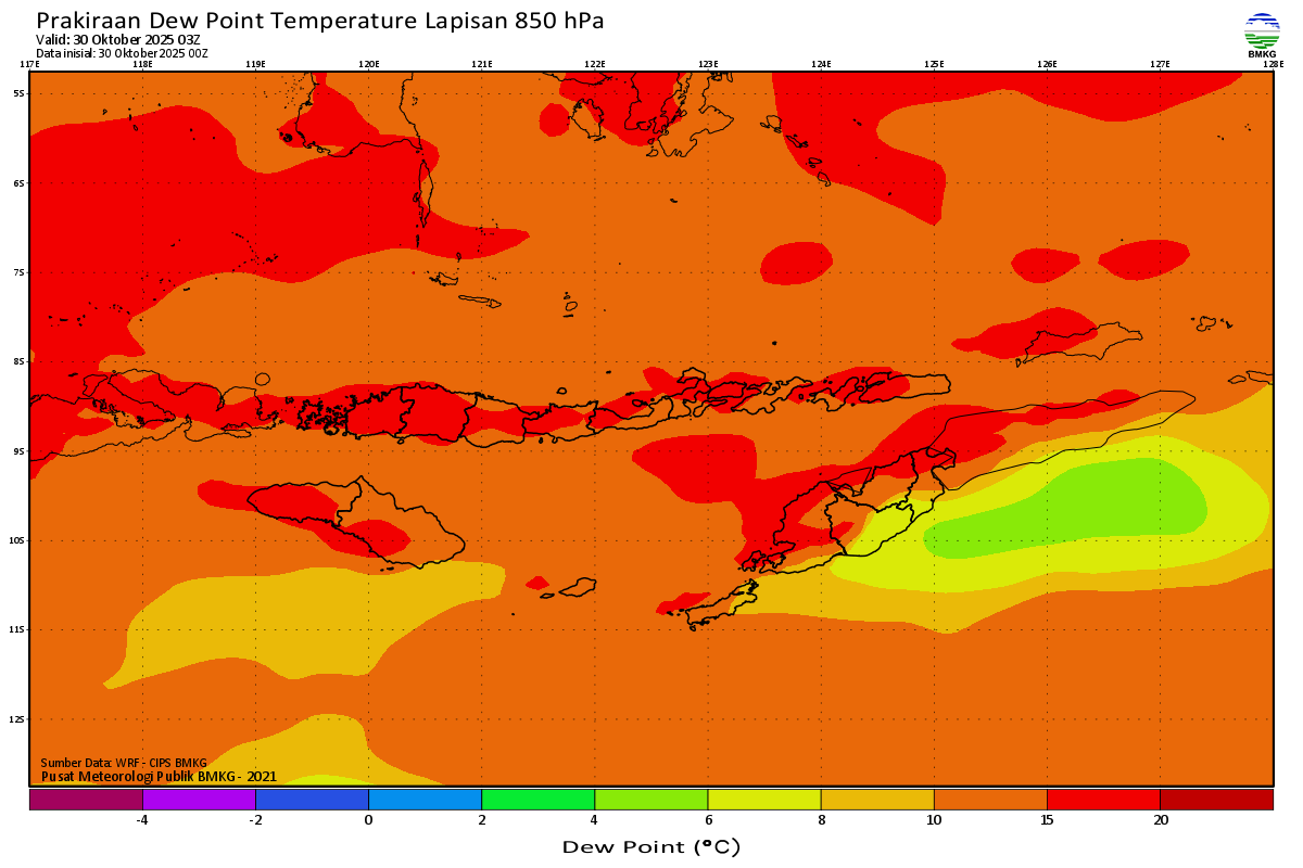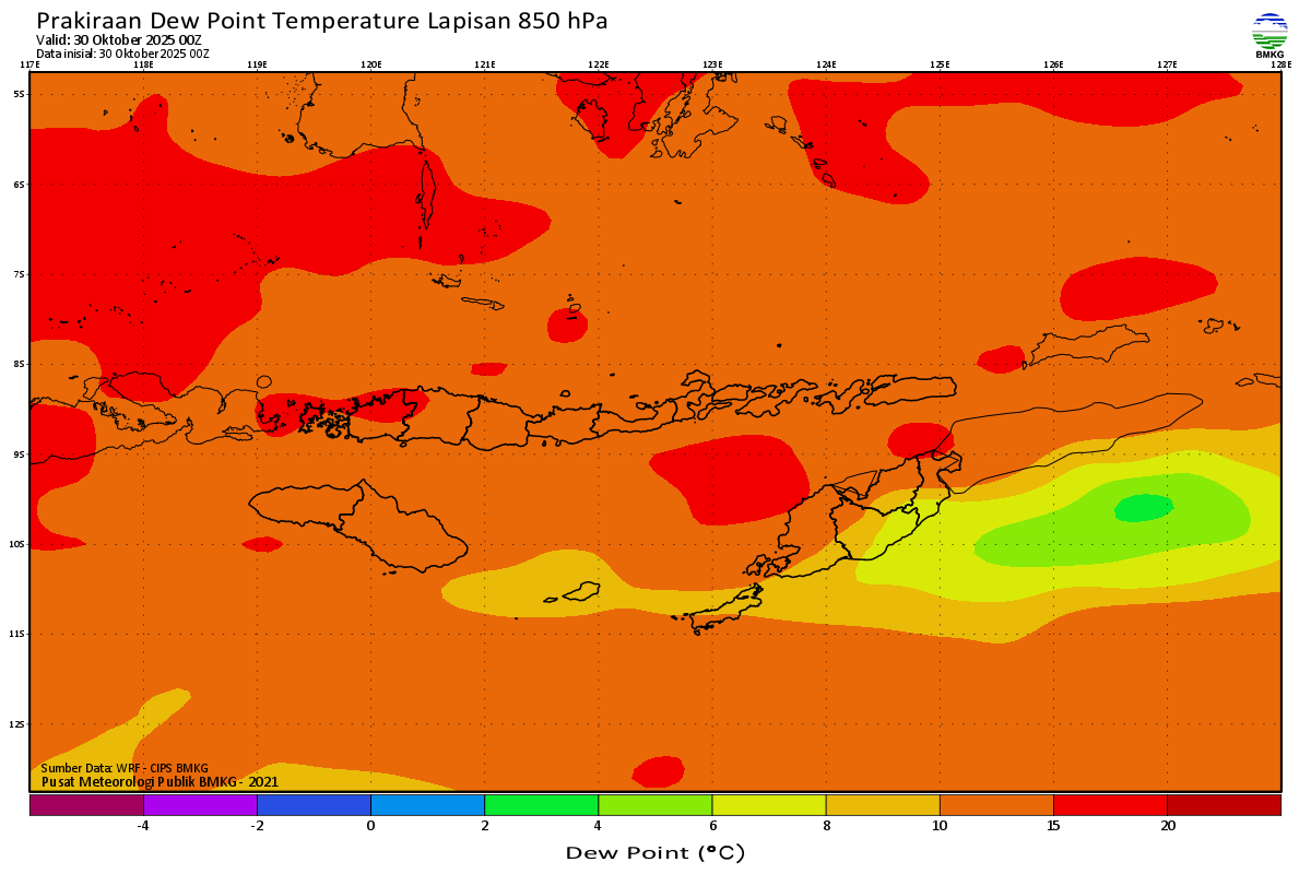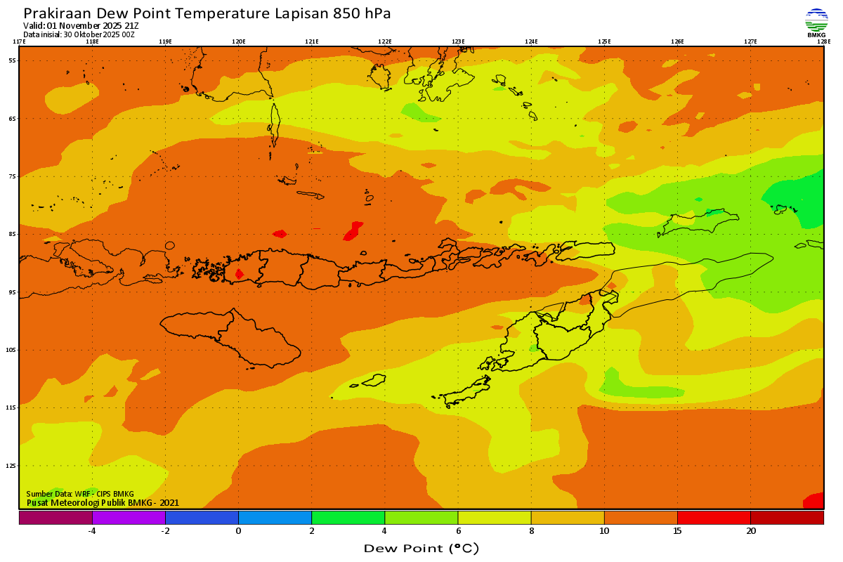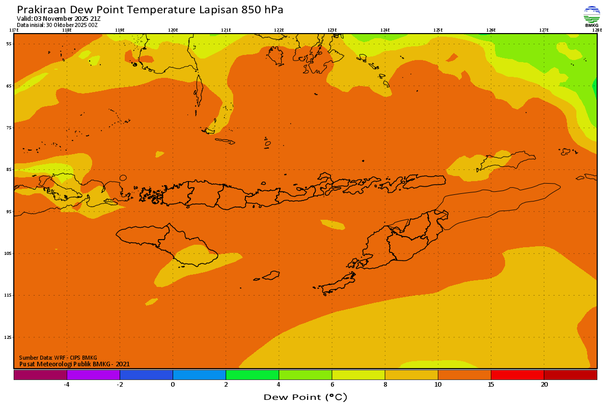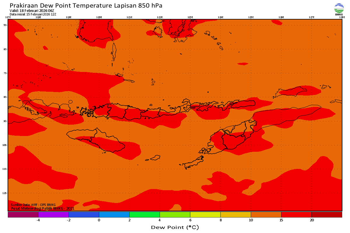 Prediksi Suhu Titik Embun 850 hPa NTT