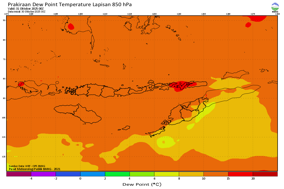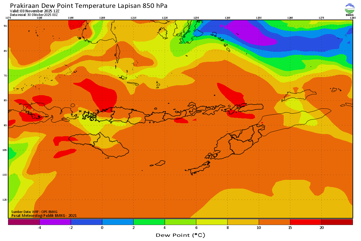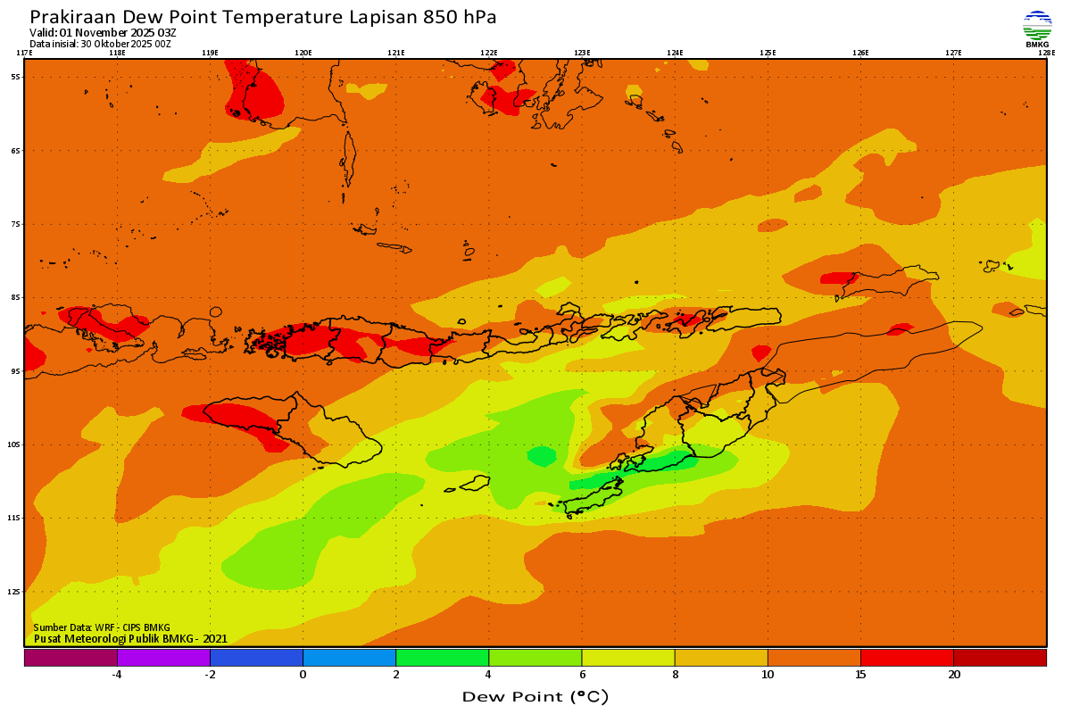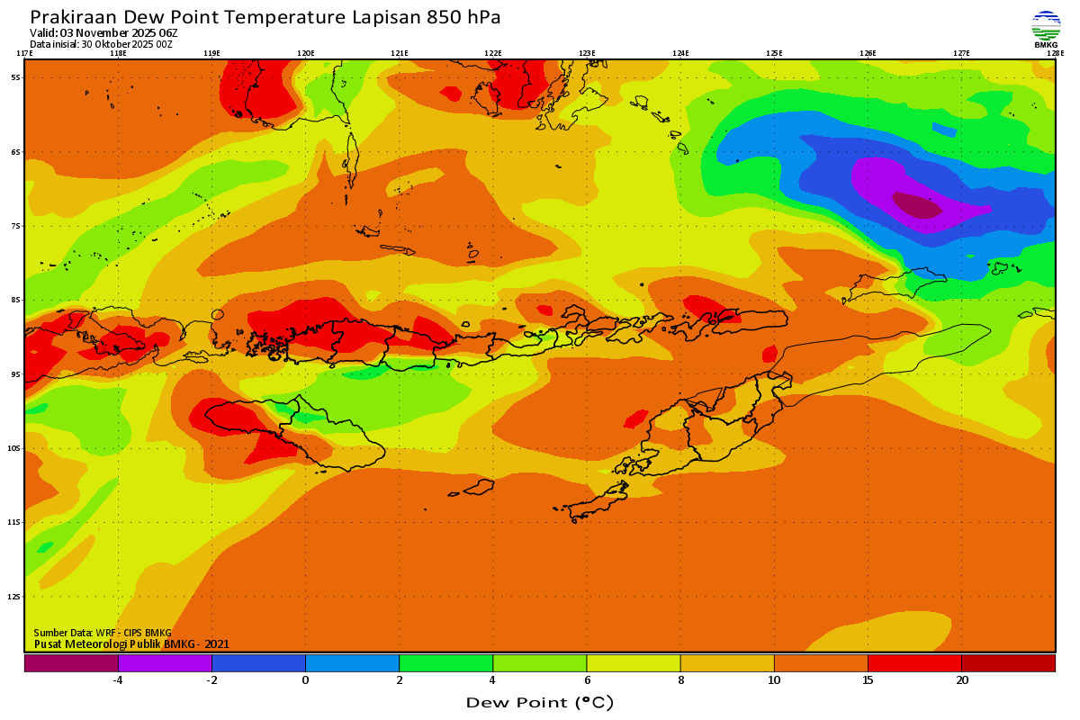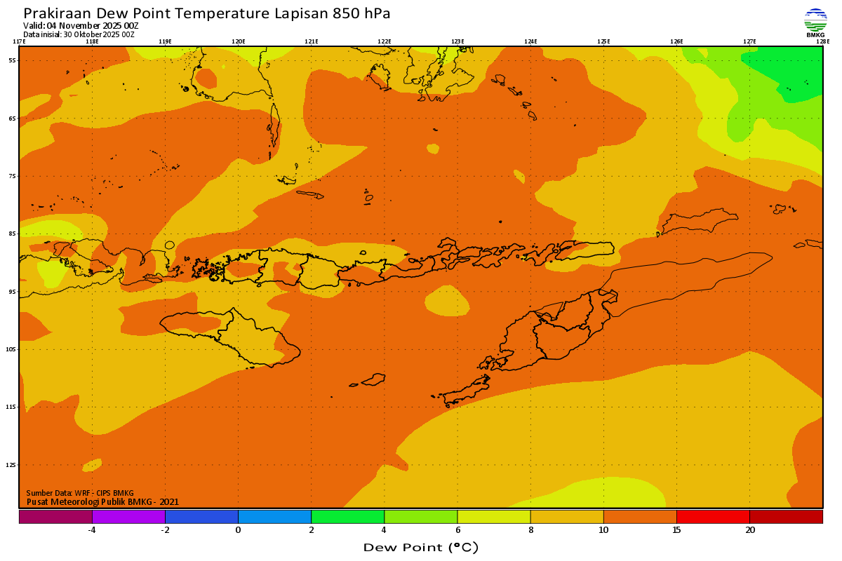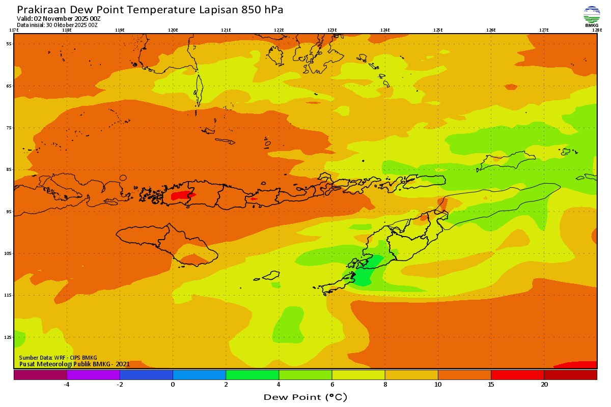 Prediksi Suhu Titik Embun 850 hPa NTT