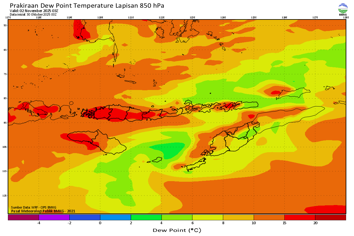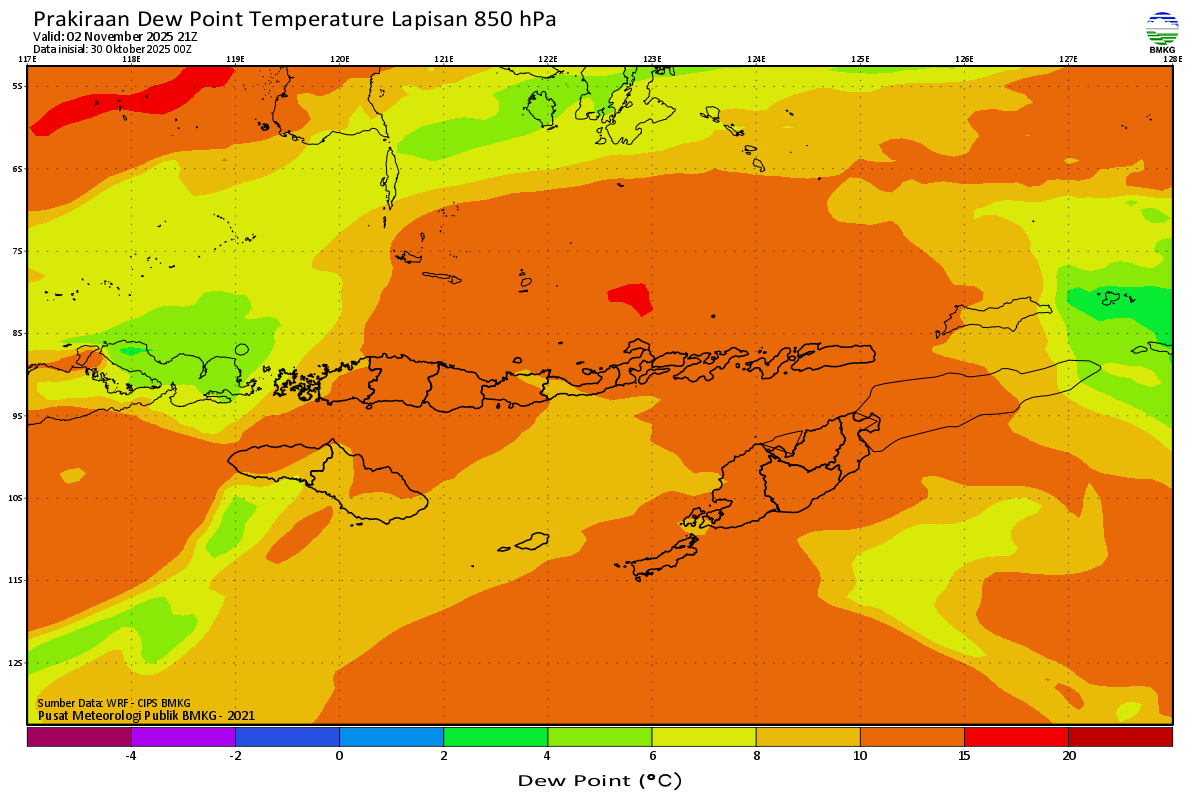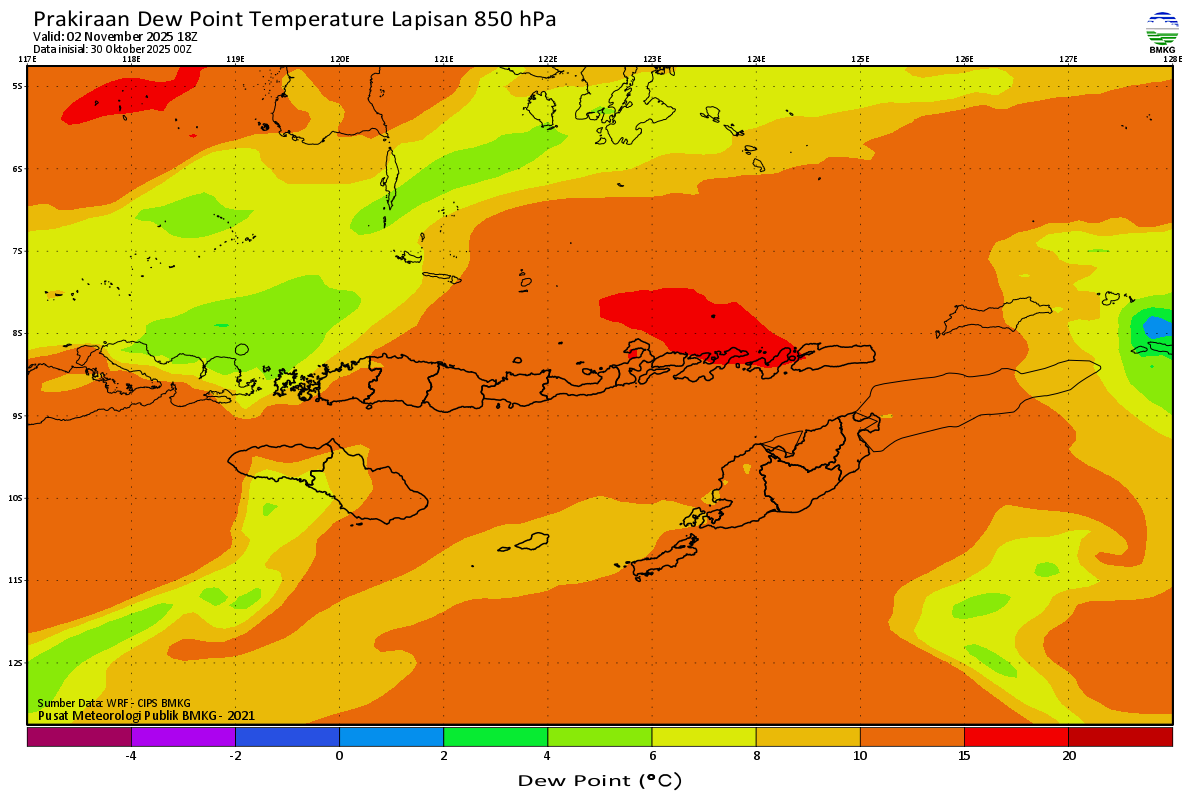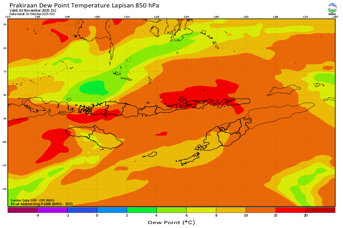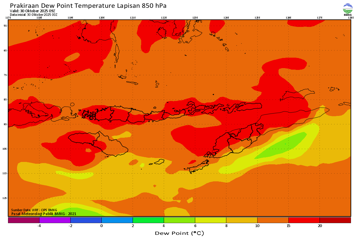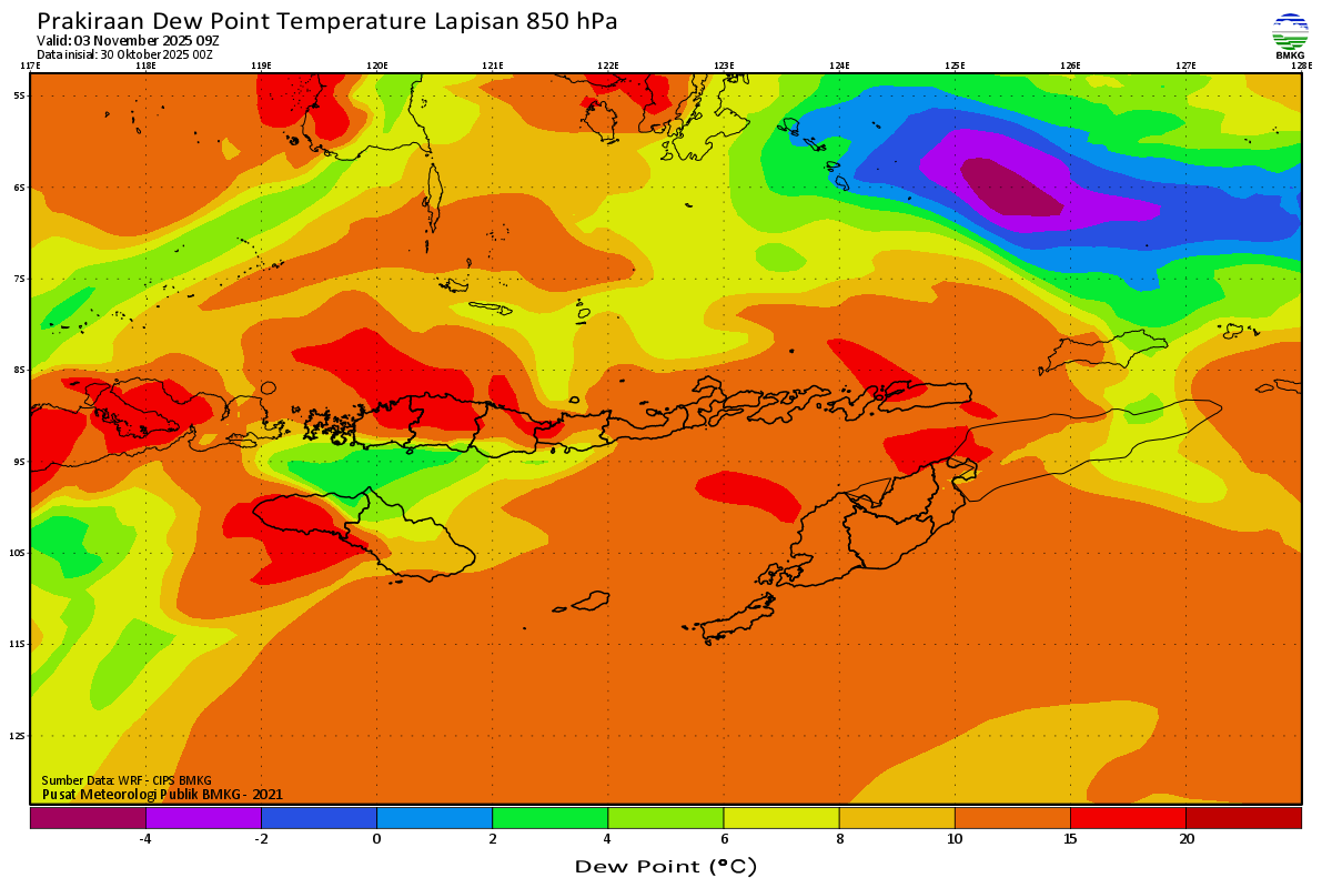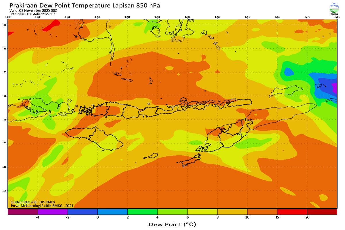 Prediksi Suhu Titik Embun 850 hPa NTT