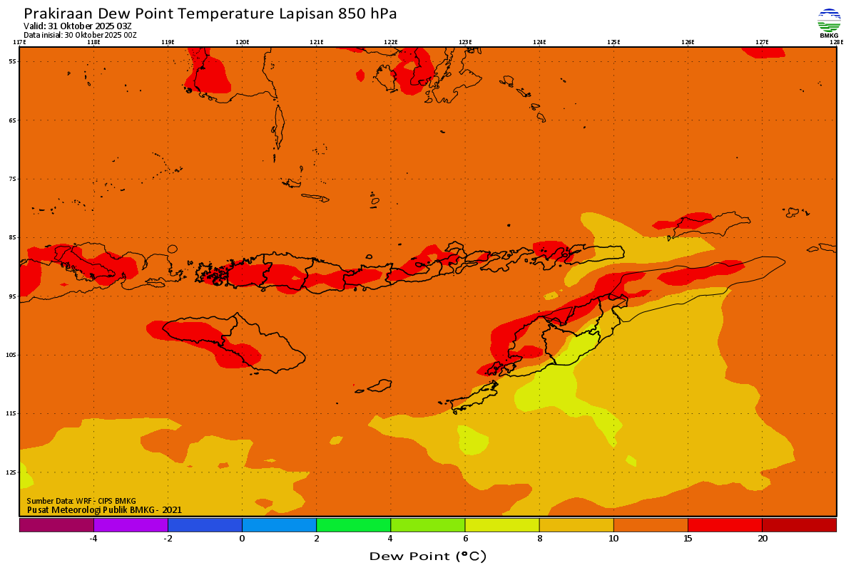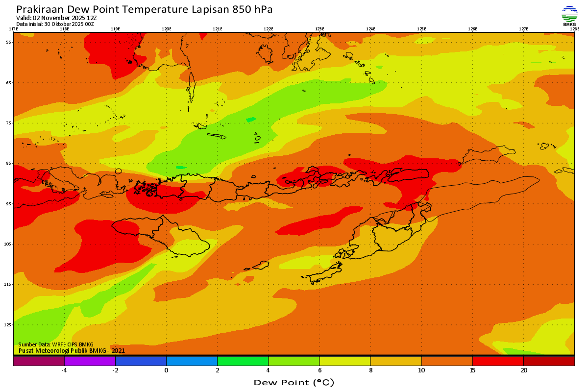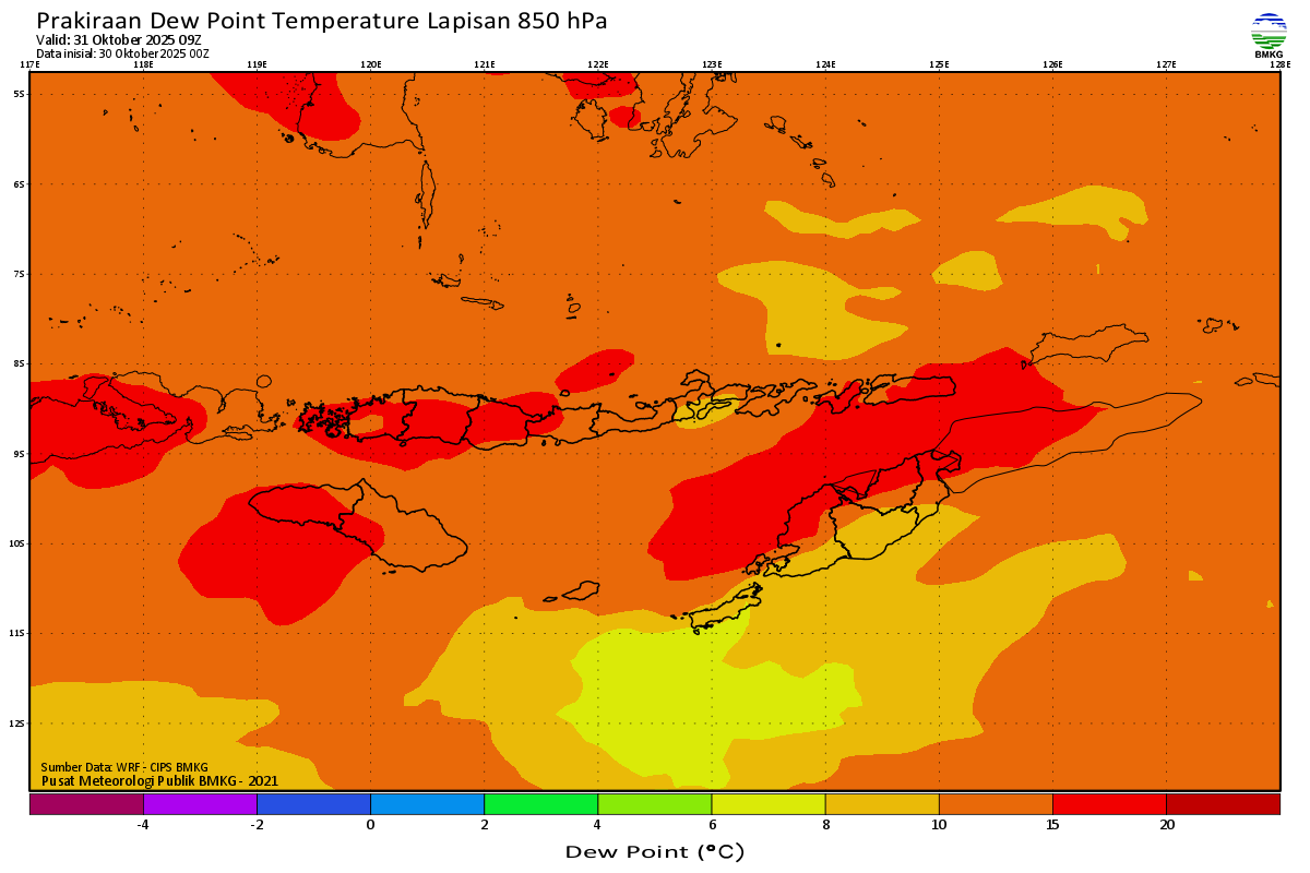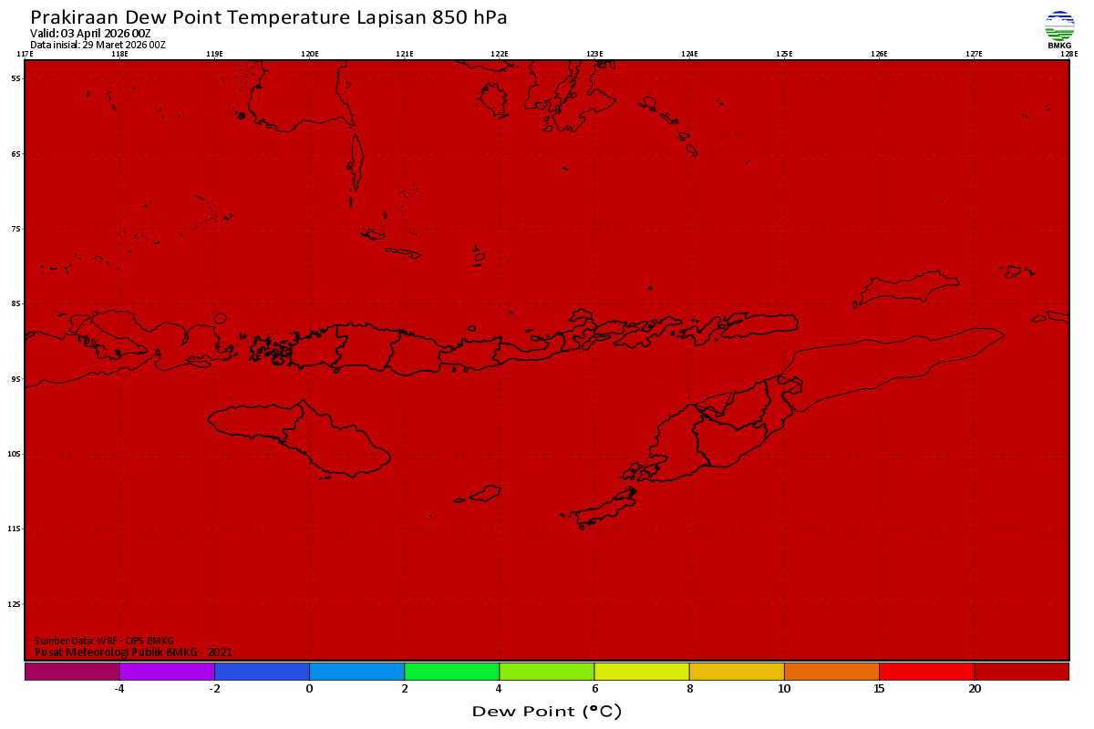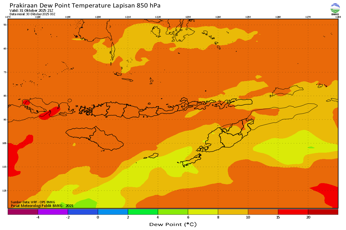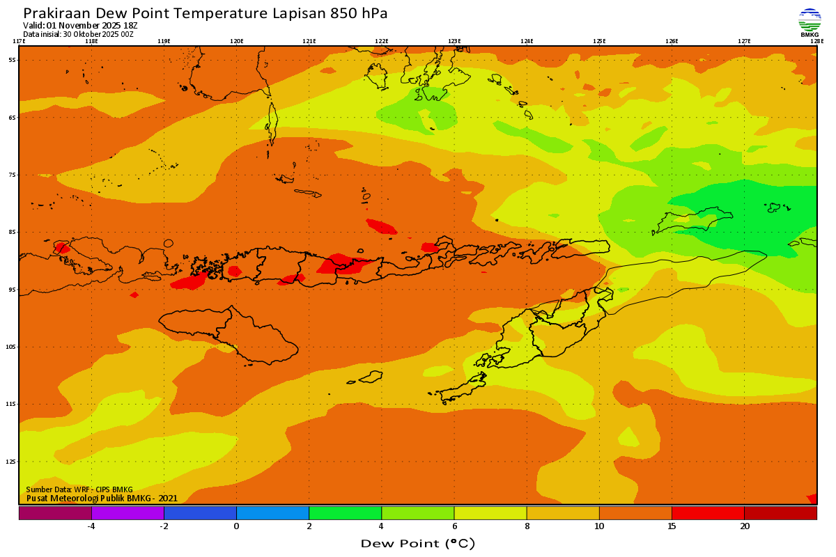 Prediksi Suhu Titik Embun 850 hPa NTT