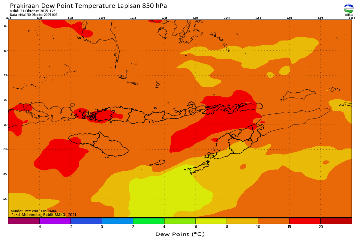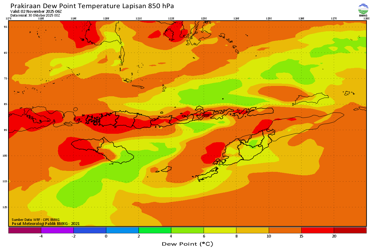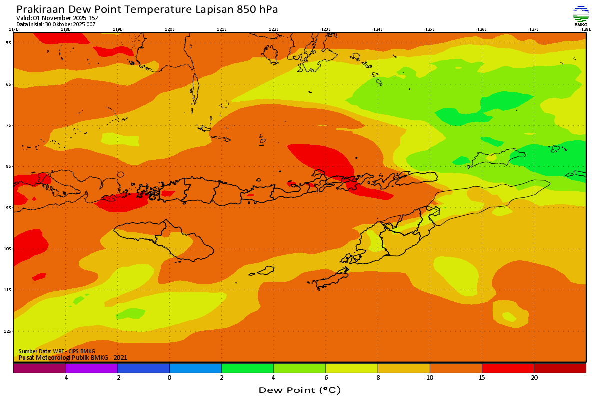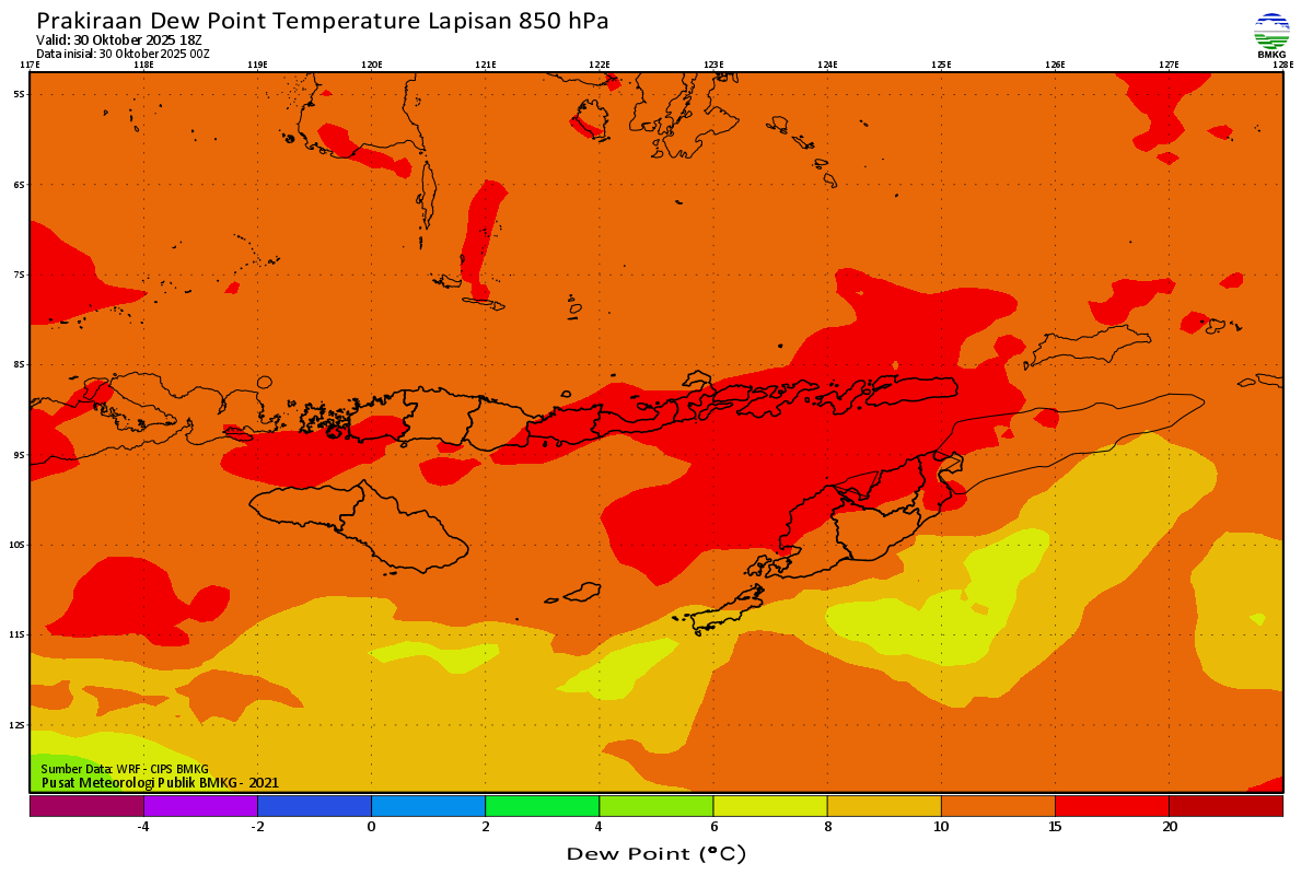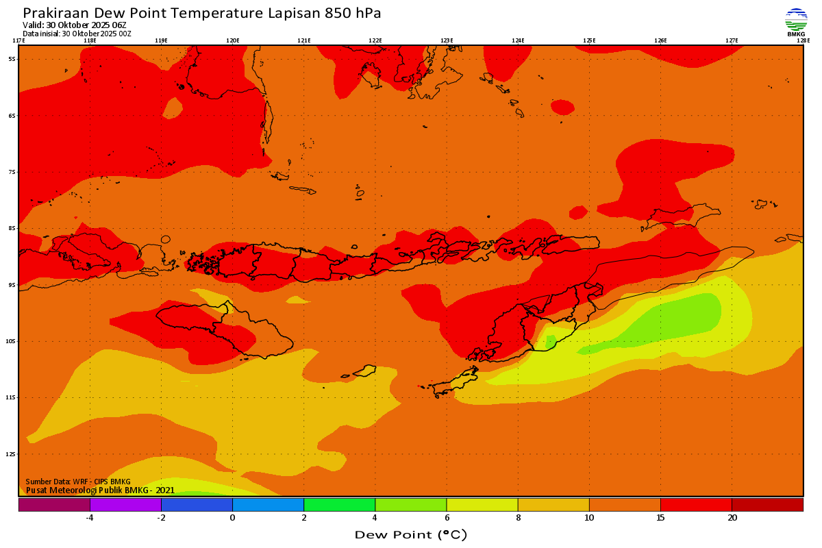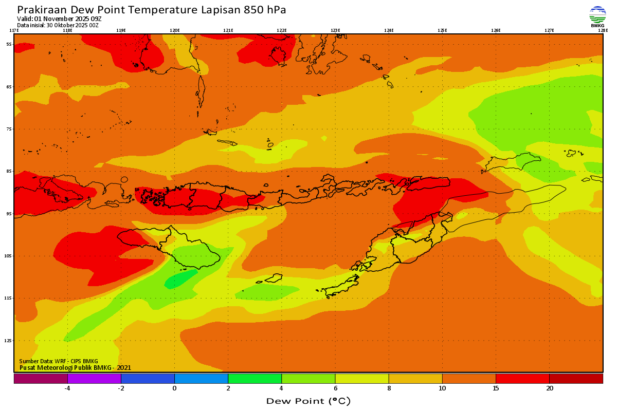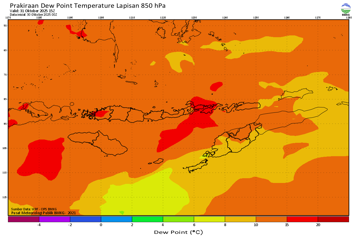 Prediksi Suhu Titik Embun 850 hPa NTT
