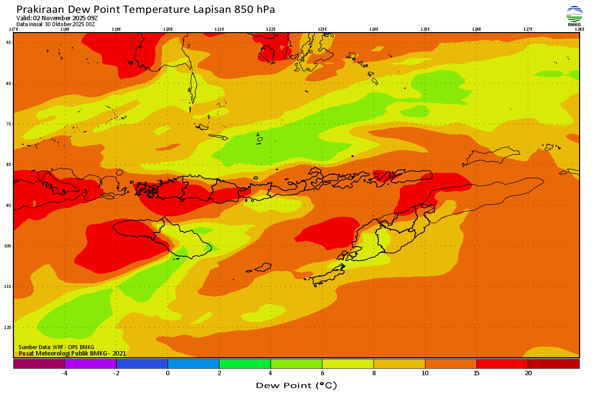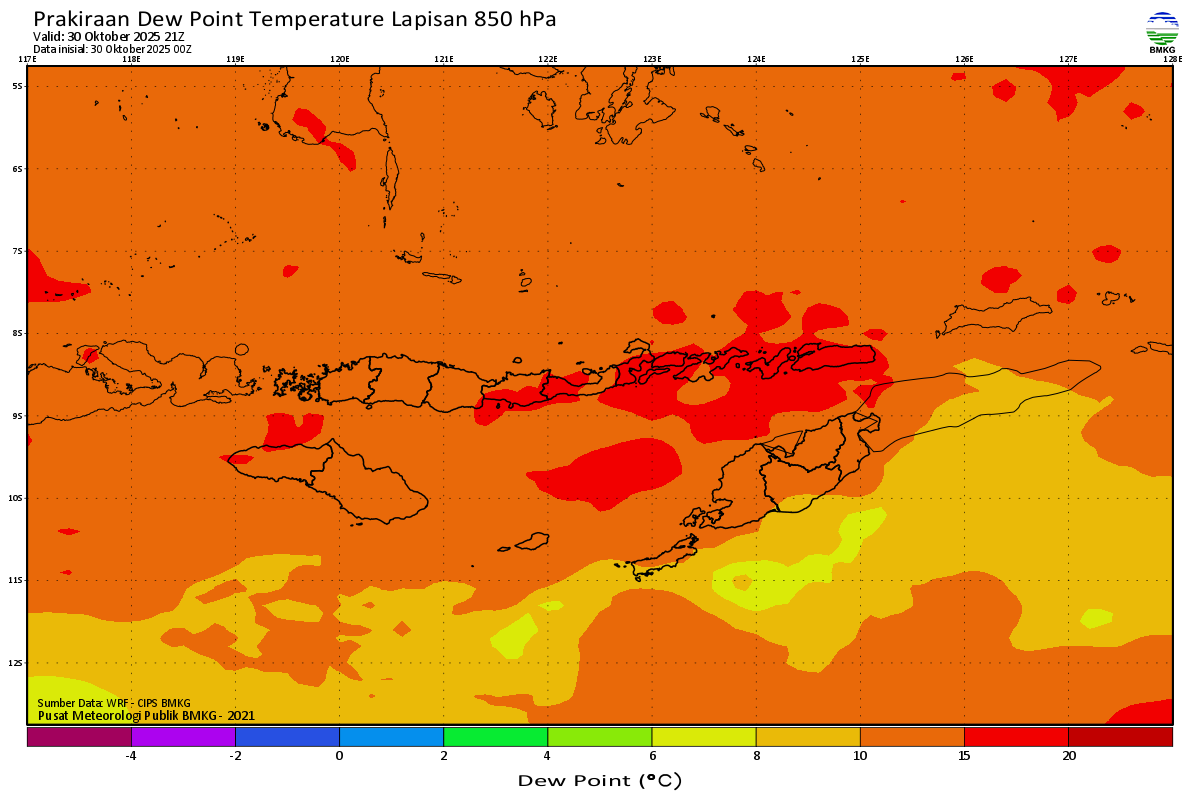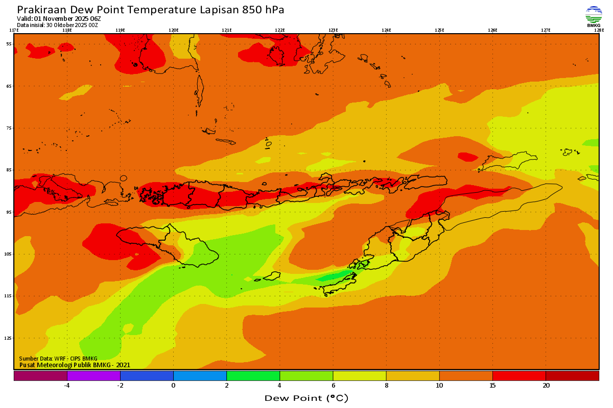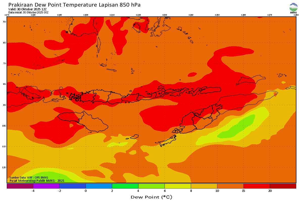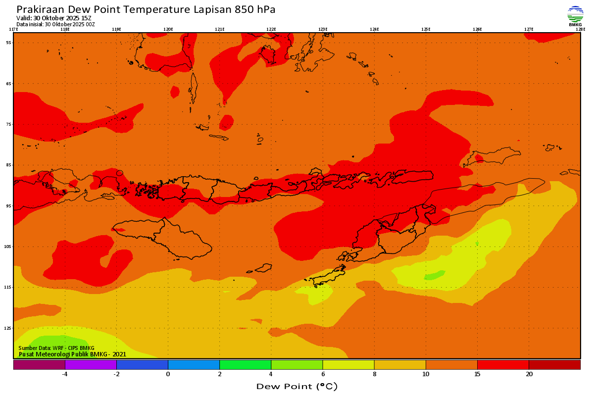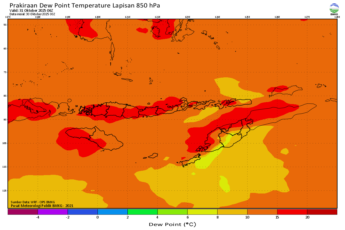 Prediksi Suhu Titik Embun 850 hPa NTT