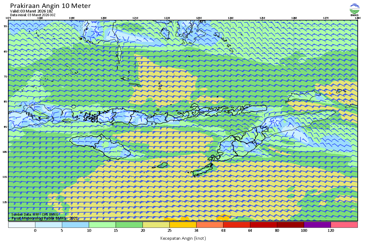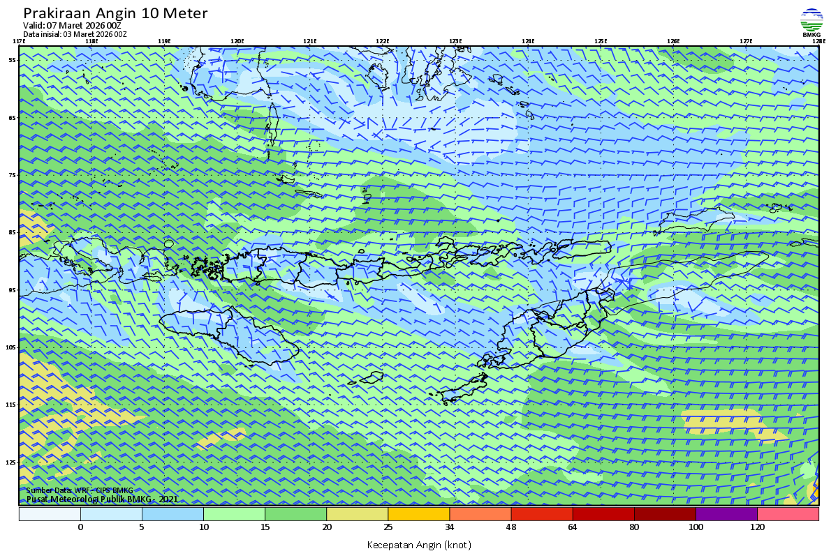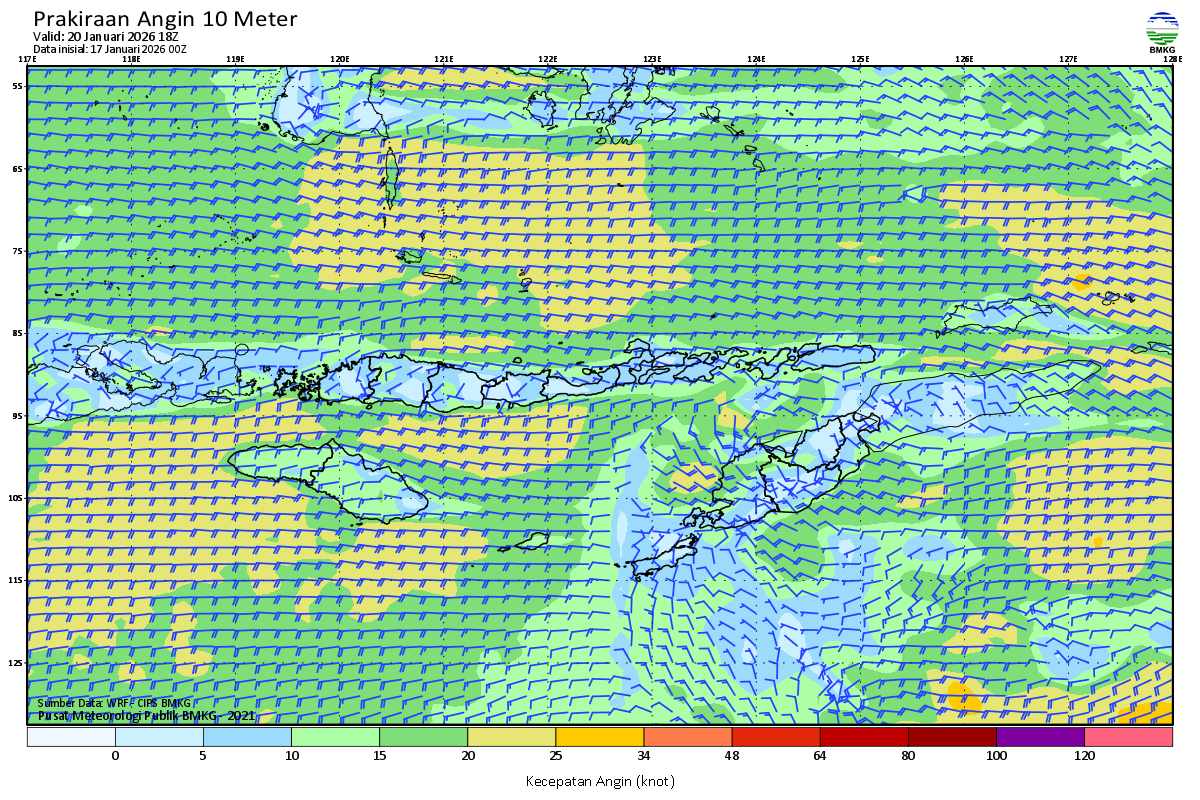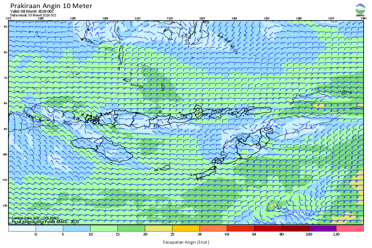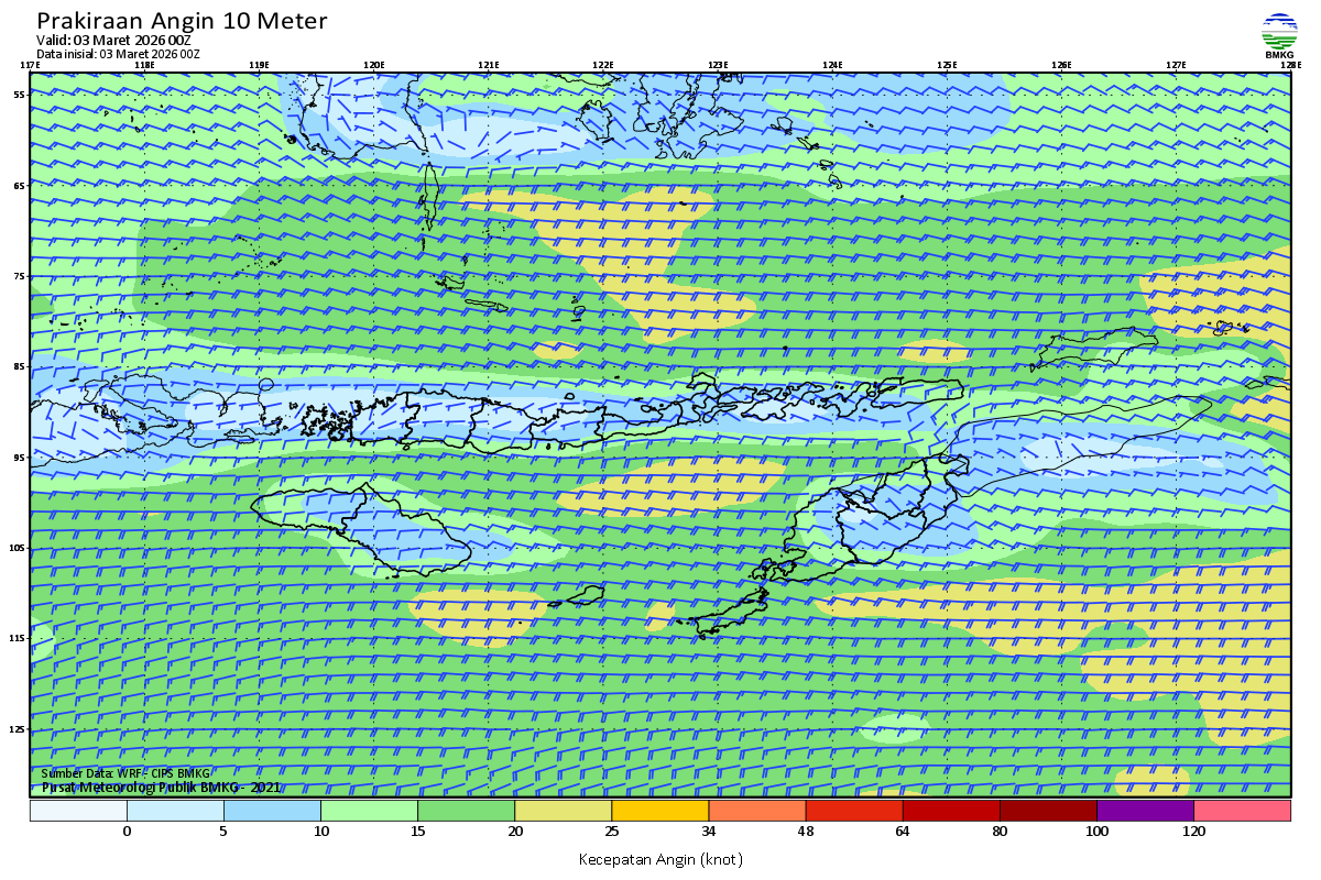 Prakiraan Angin Lapisan 10m Gunung Awu