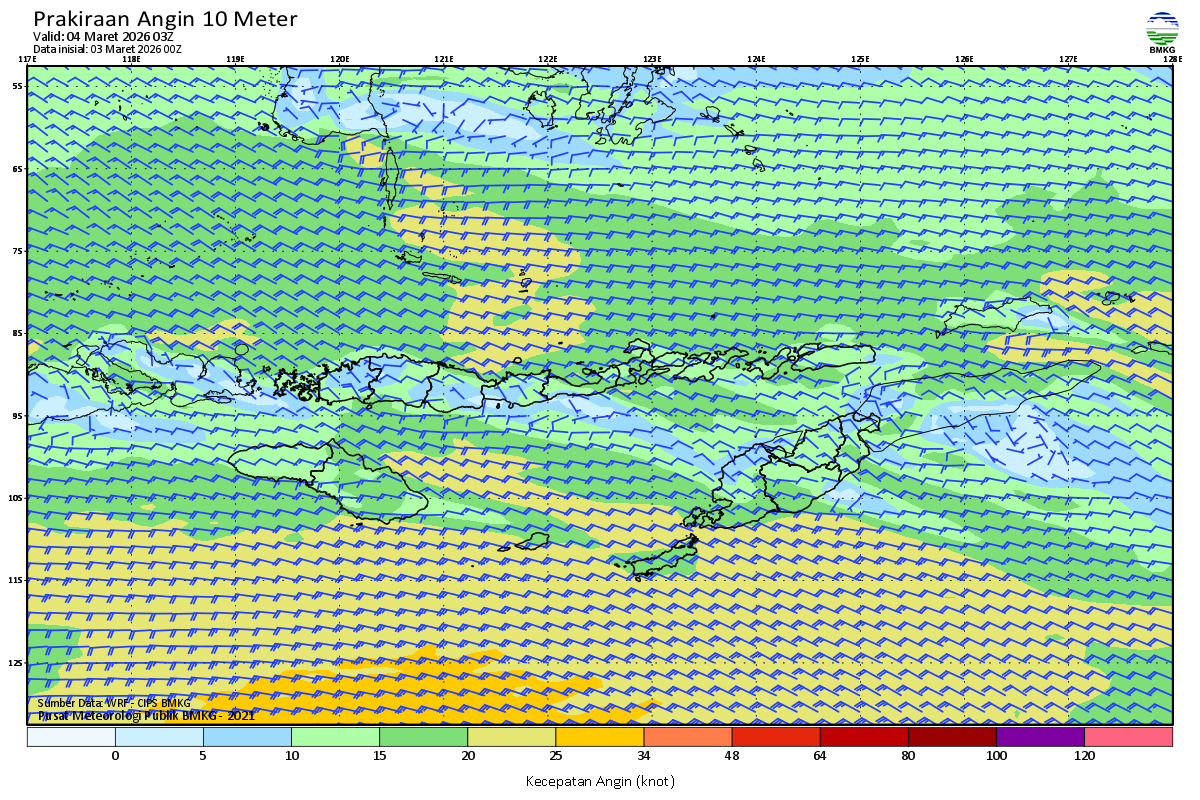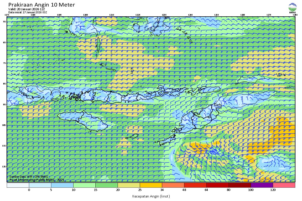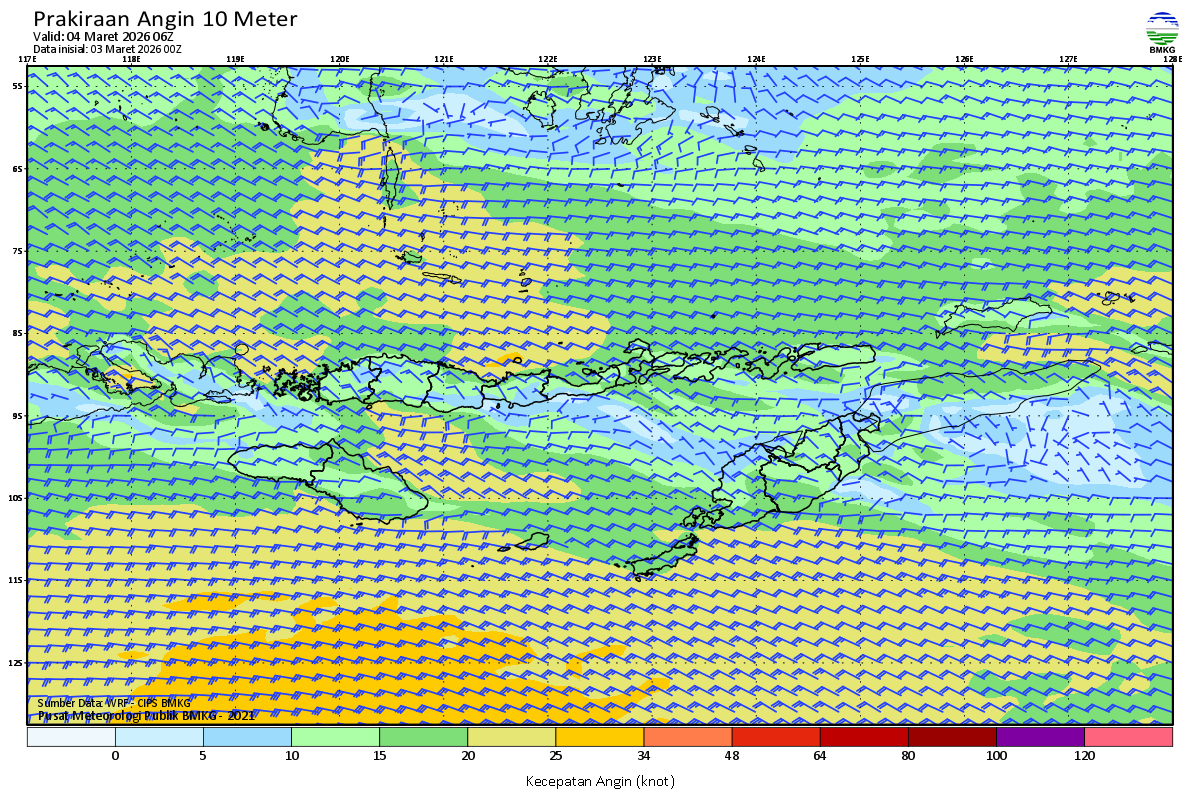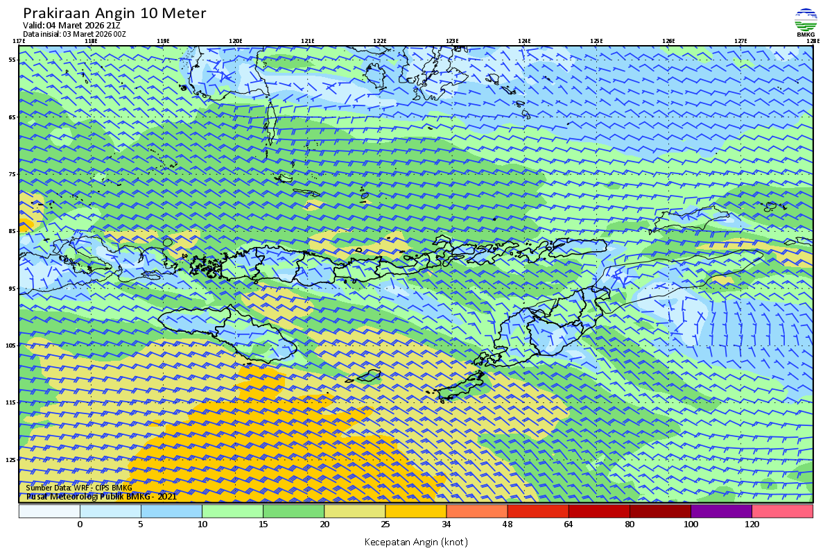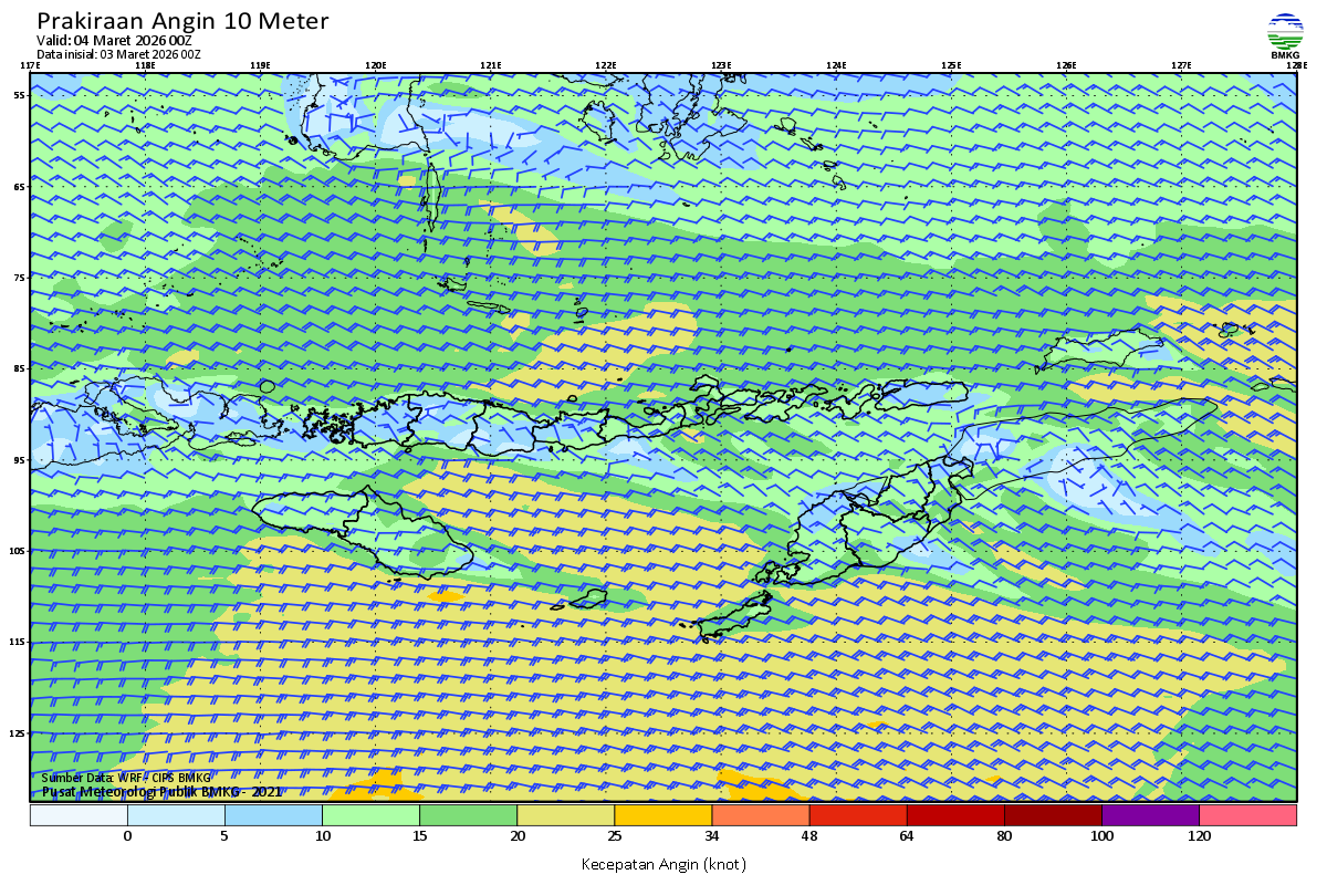 Prakiraan Angin Lapisan 10m Gunung Awu