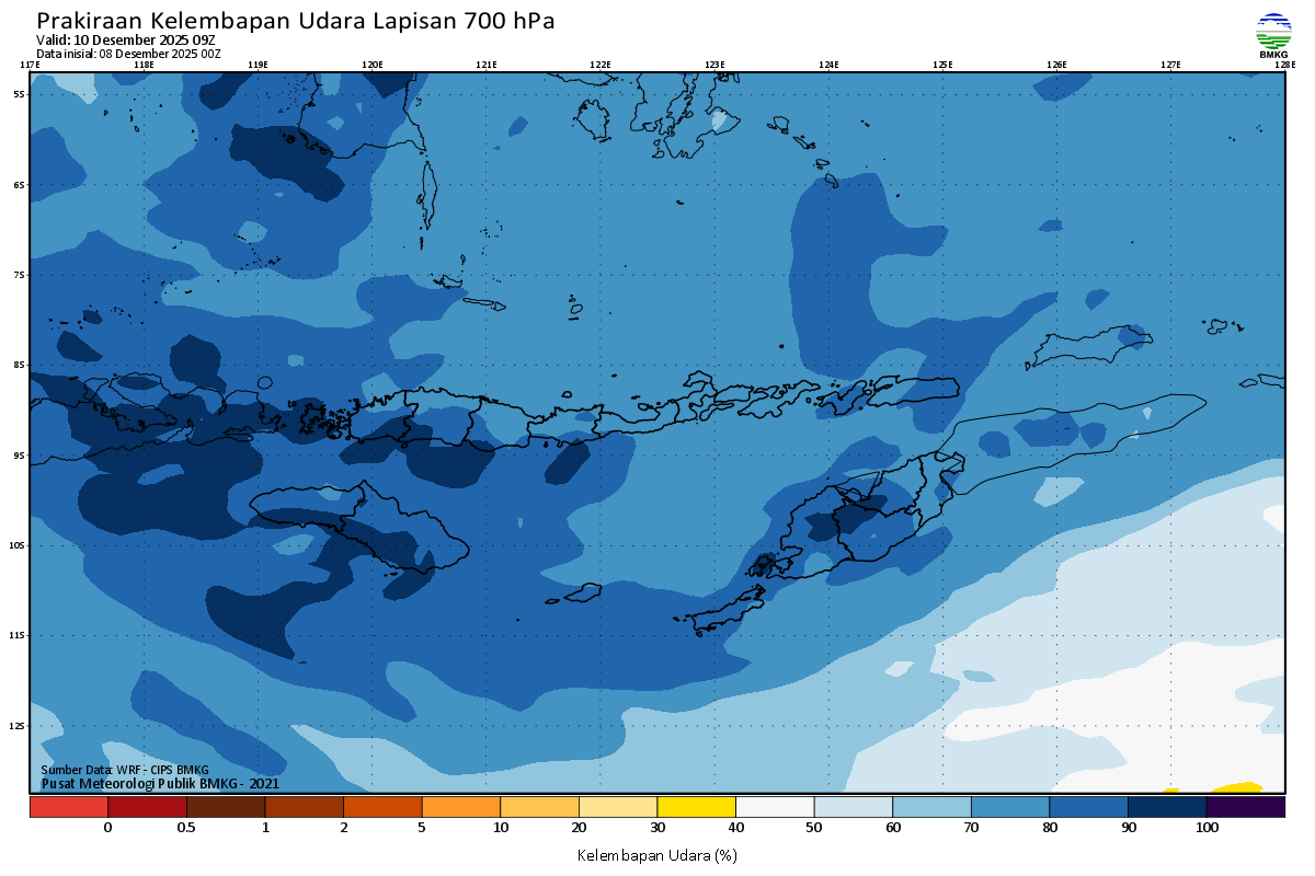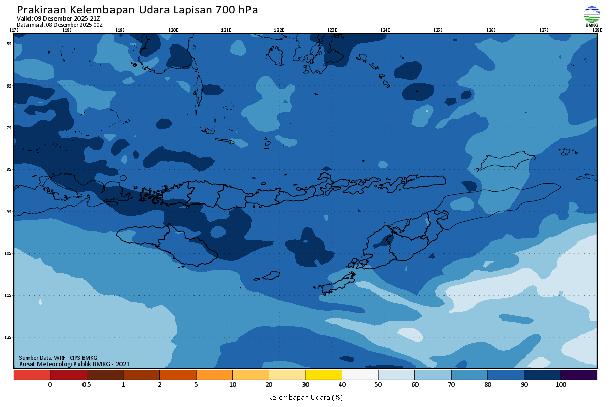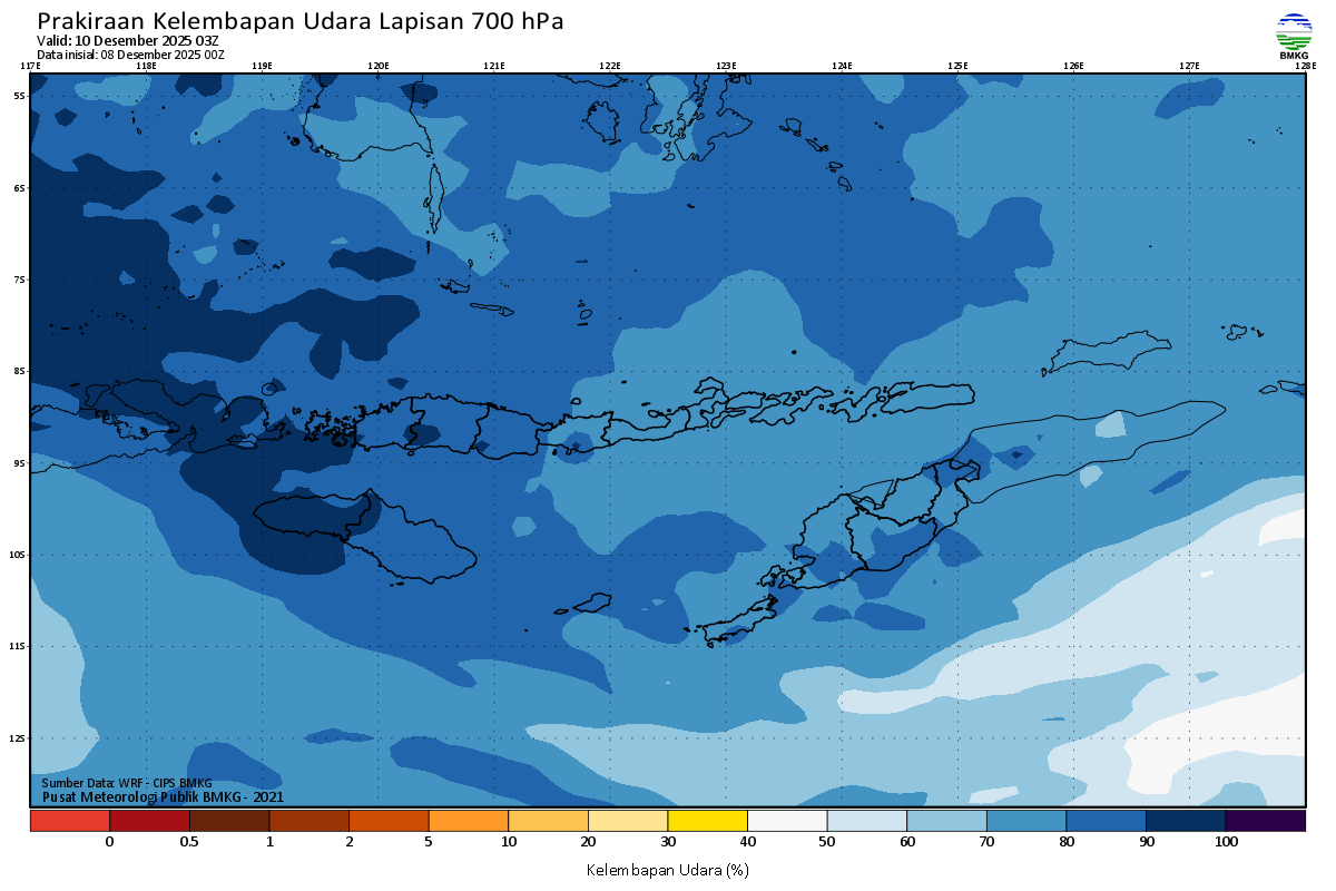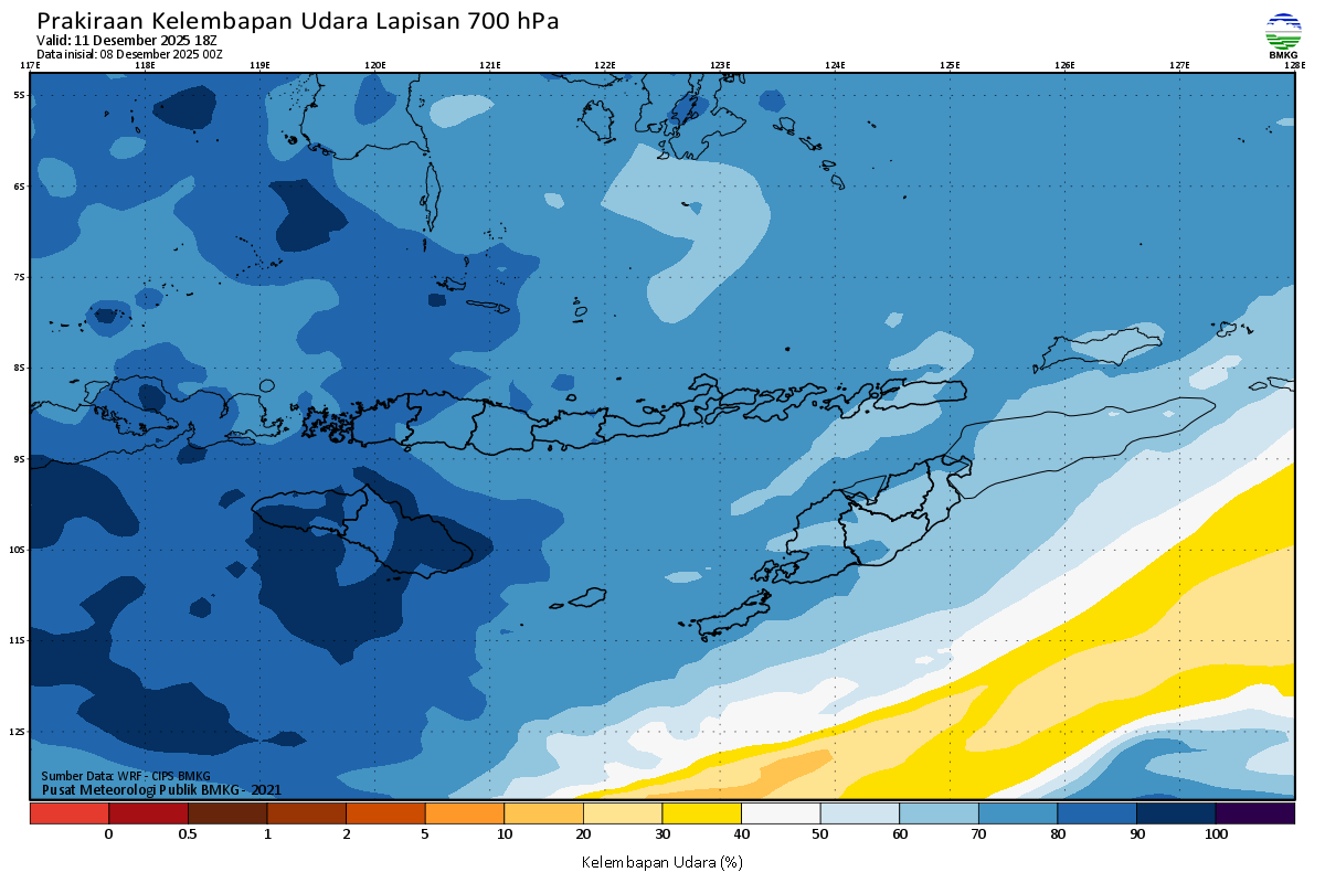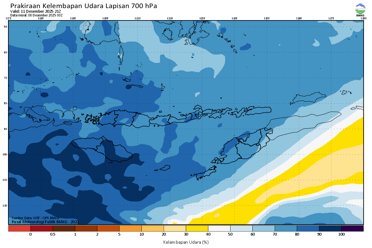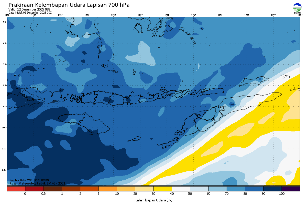 Prediksi Kelembapan 700 hPa NTT