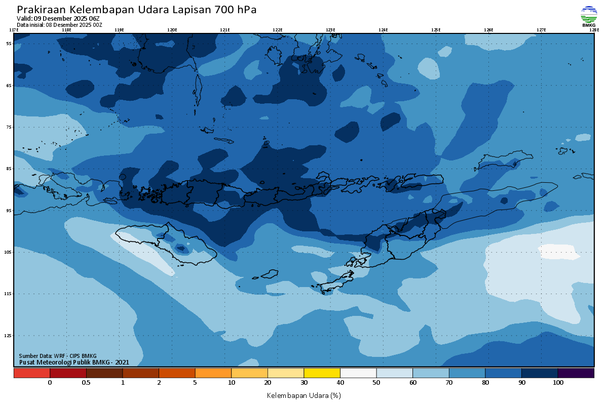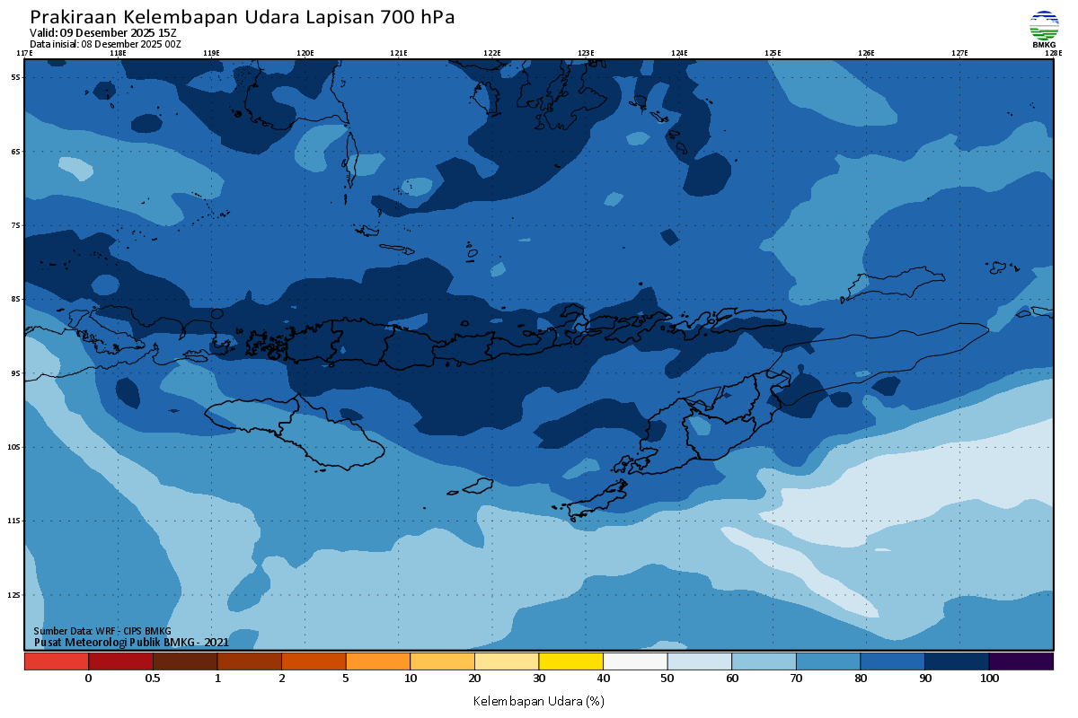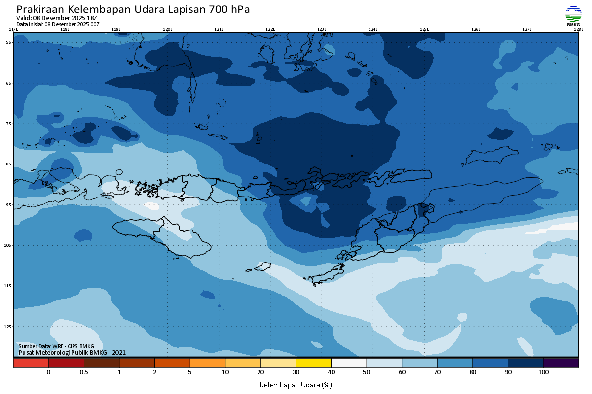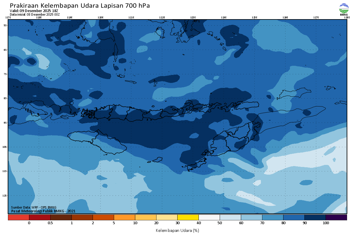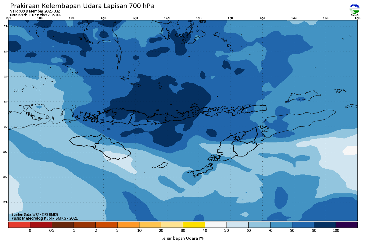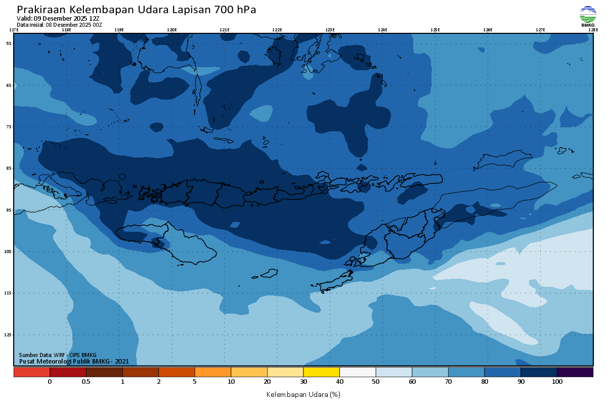 Prediksi Kelembapan 700 hPa NTT