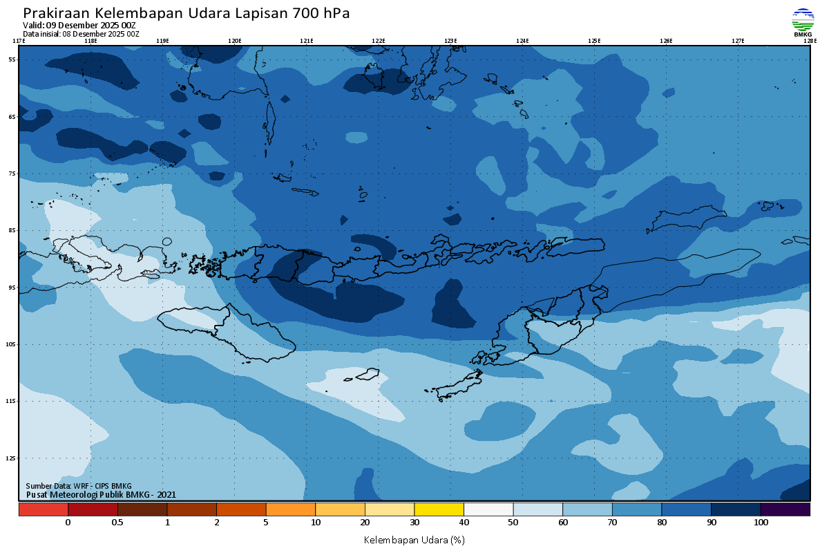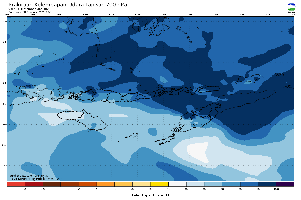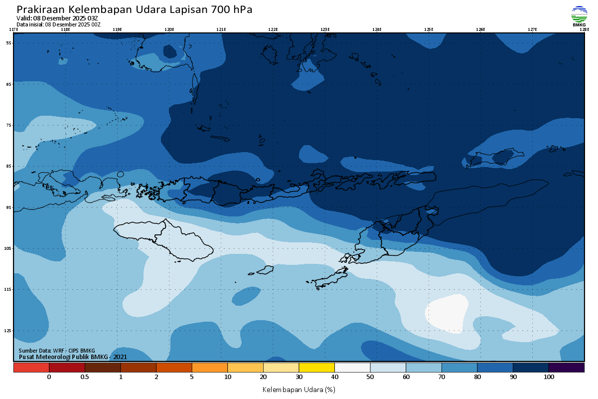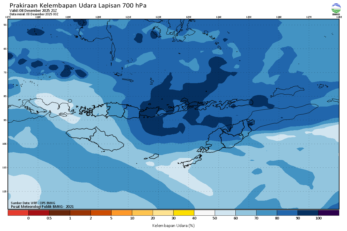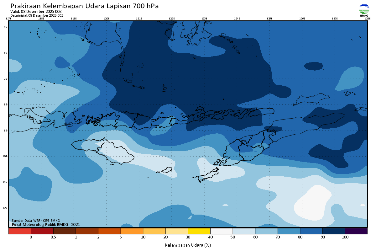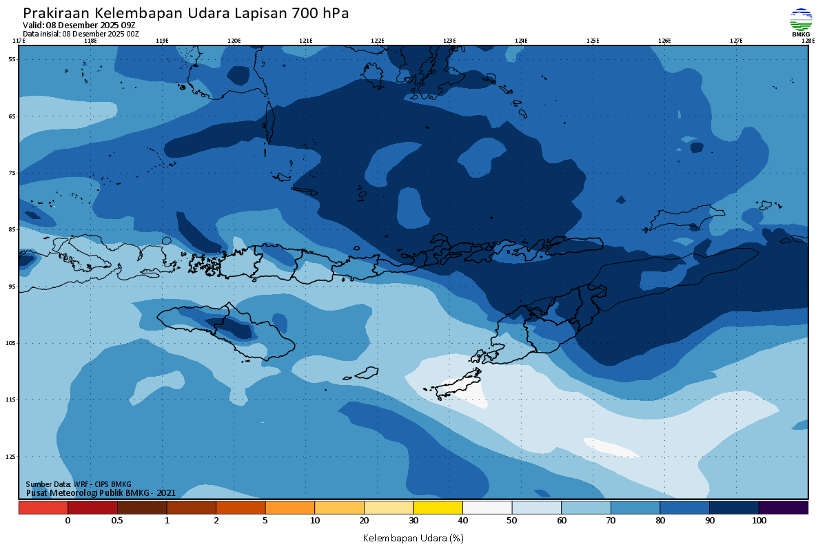 Prediksi Kelembapan 700 hPa NTT