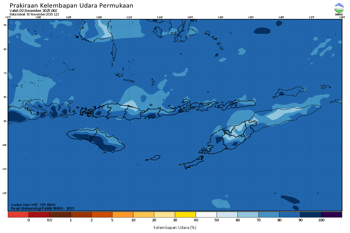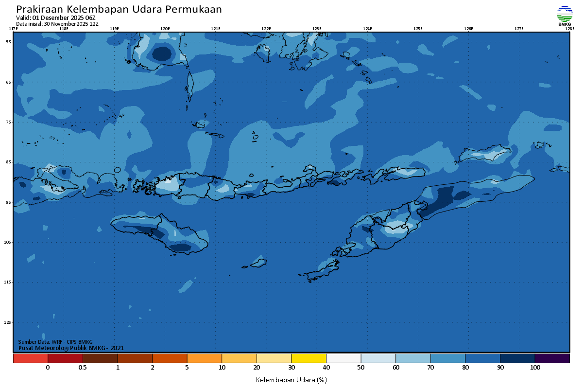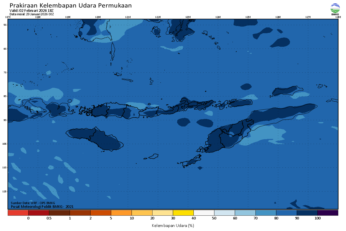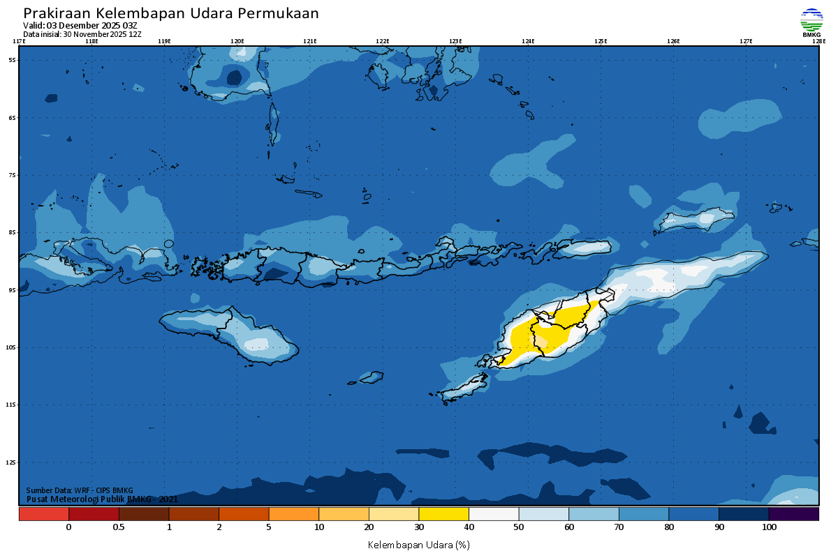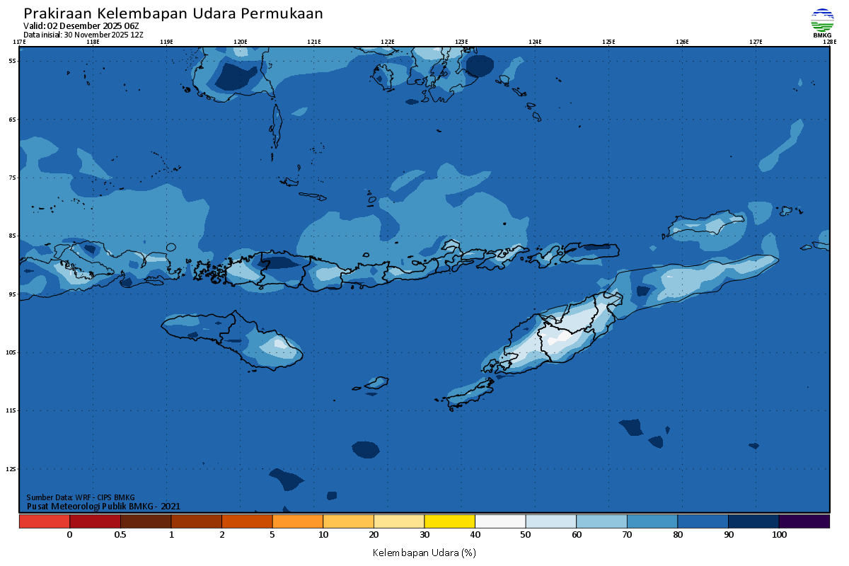 Prediksi Suhu Titik Embun 700 hPa NTT