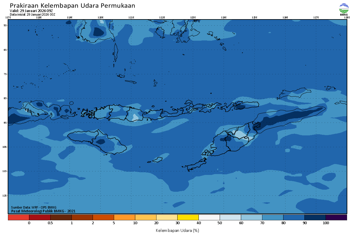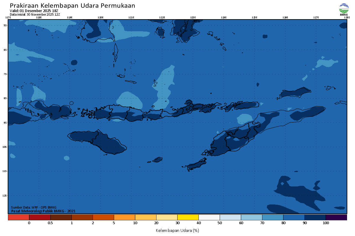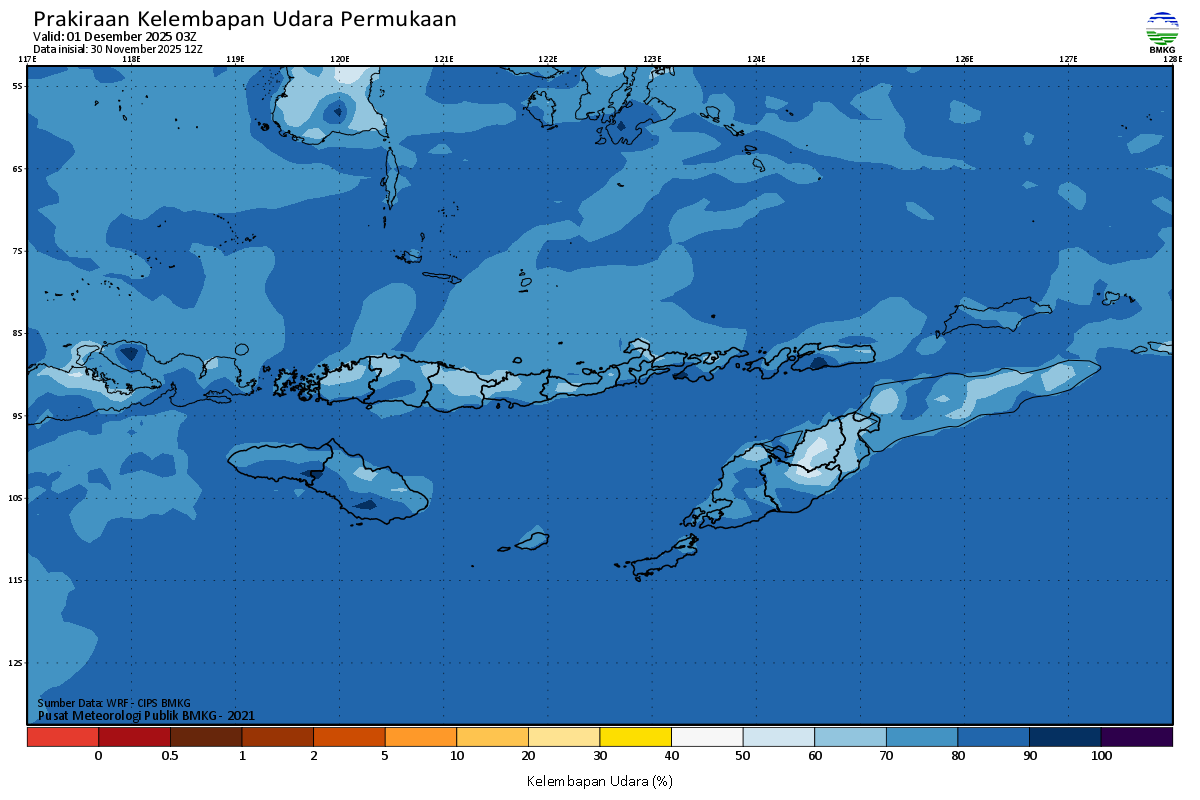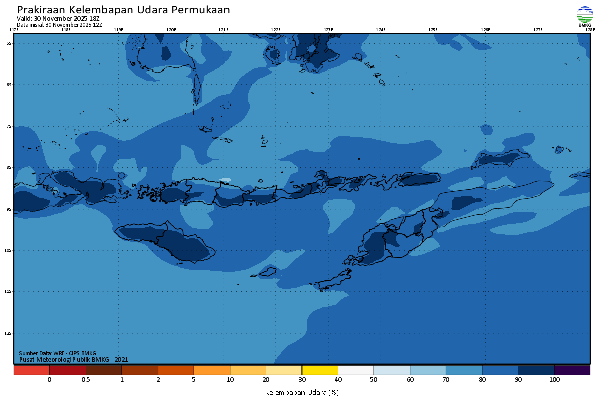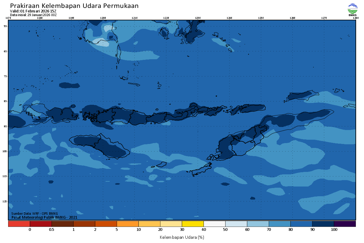 Prediksi Suhu Titik Embun 700 hPa NTT