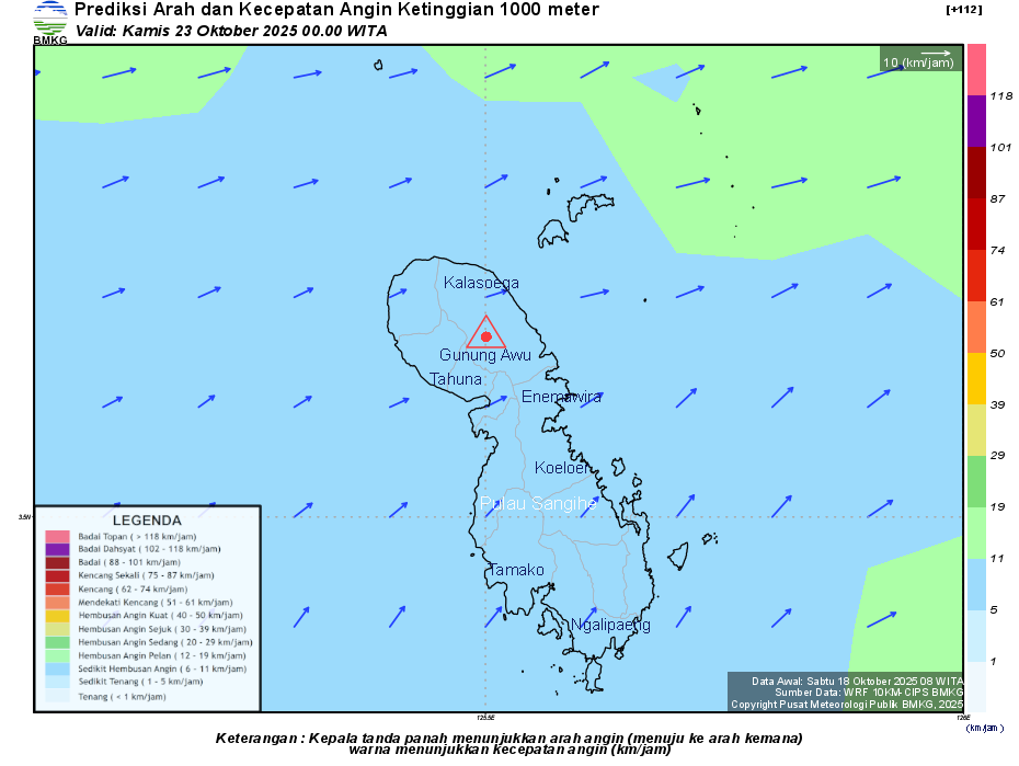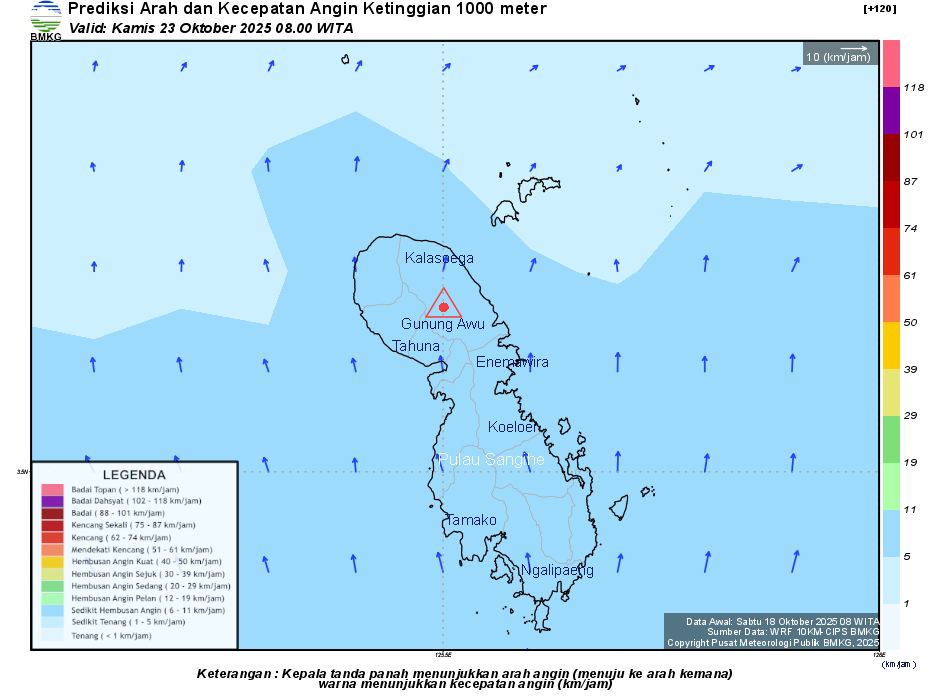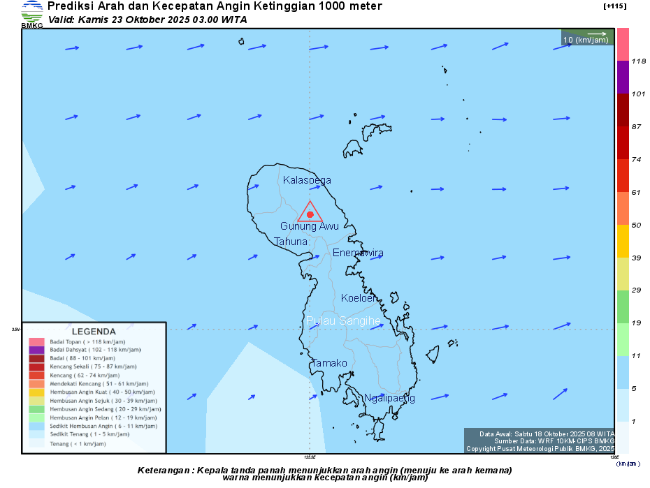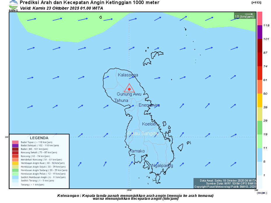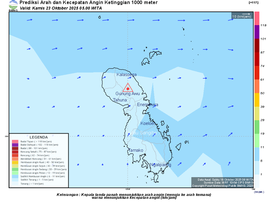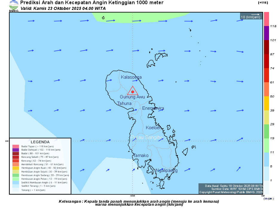 Prakiraan Angin Lapisan 10m Gunung Awu