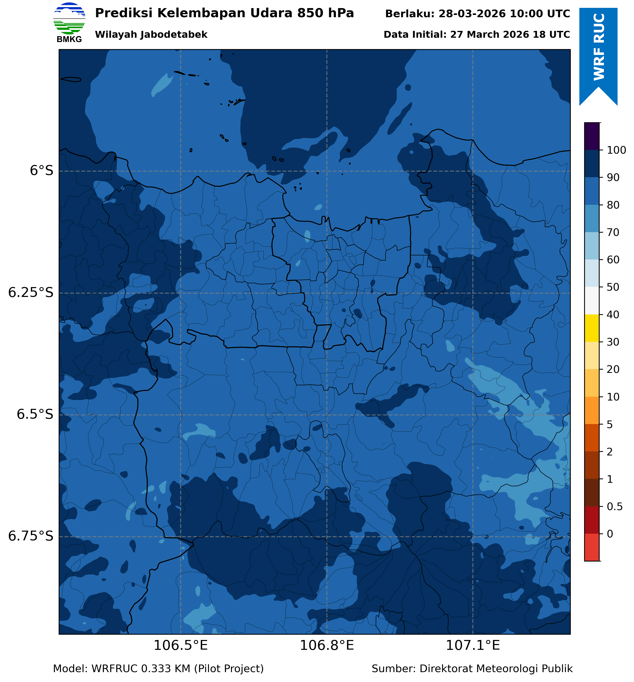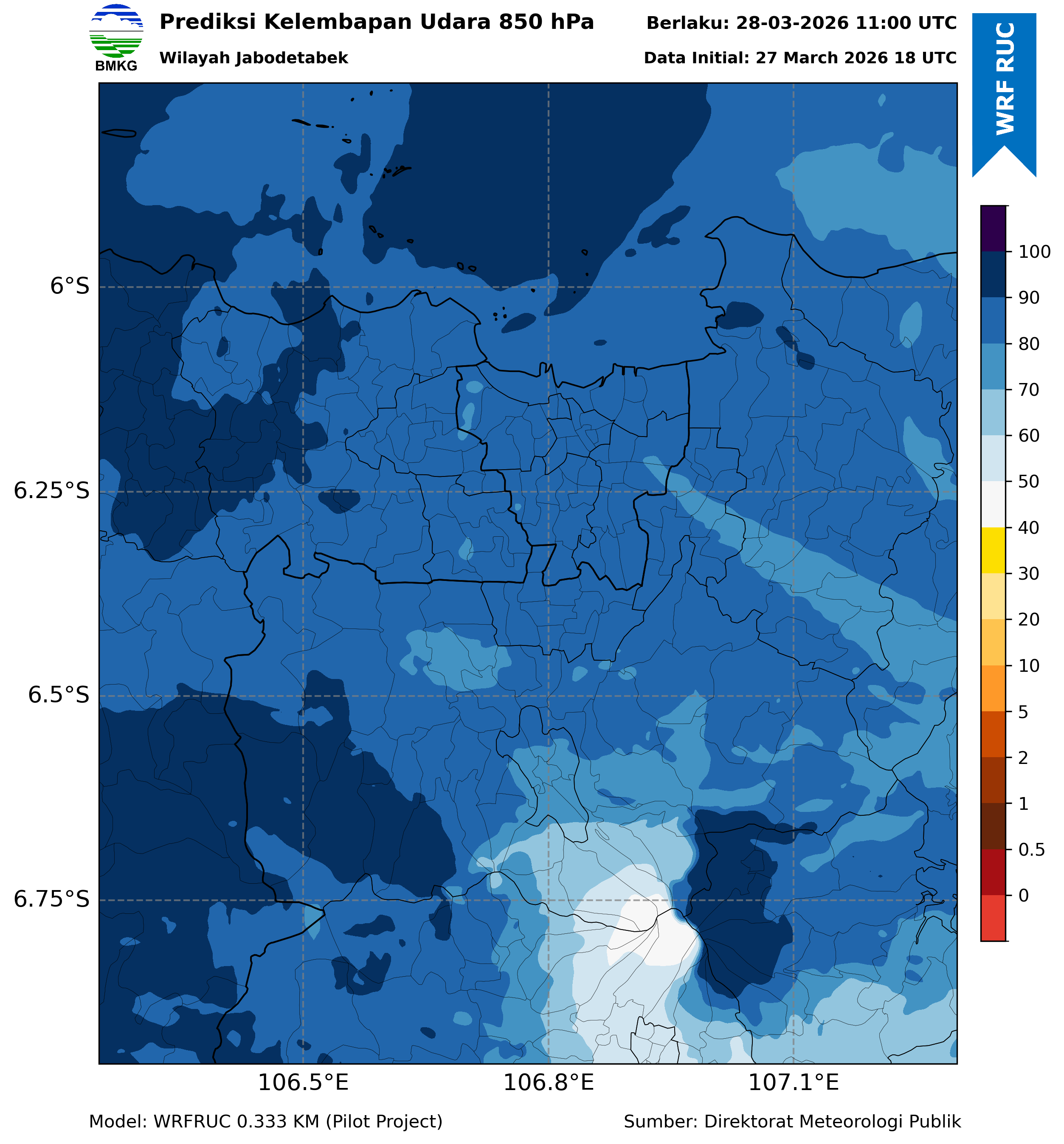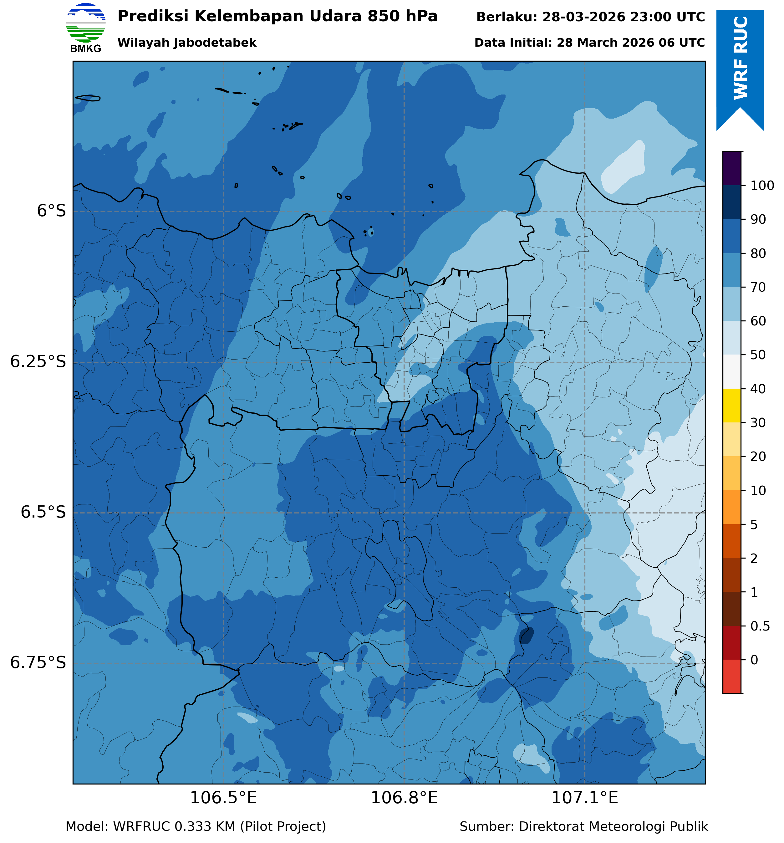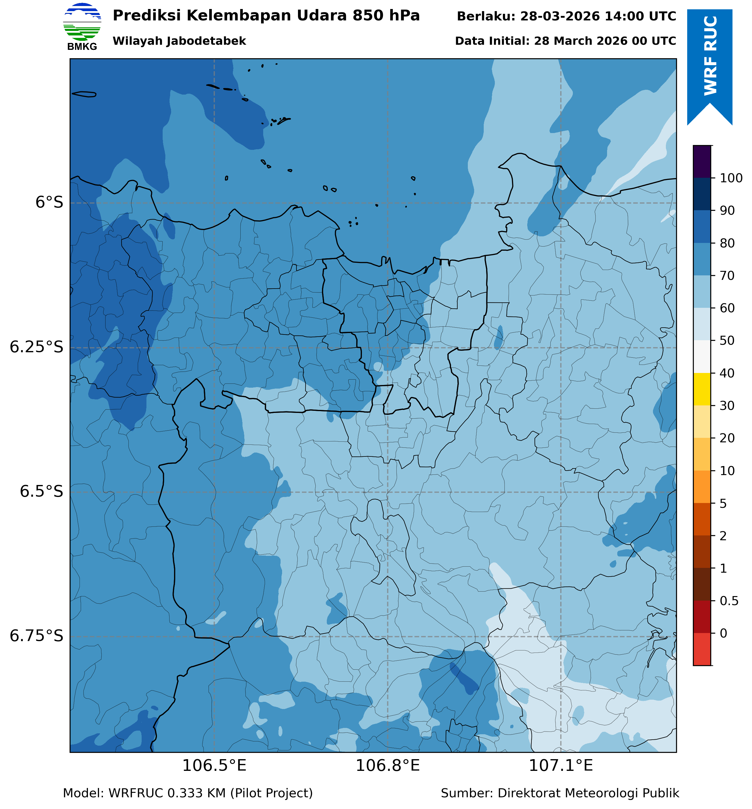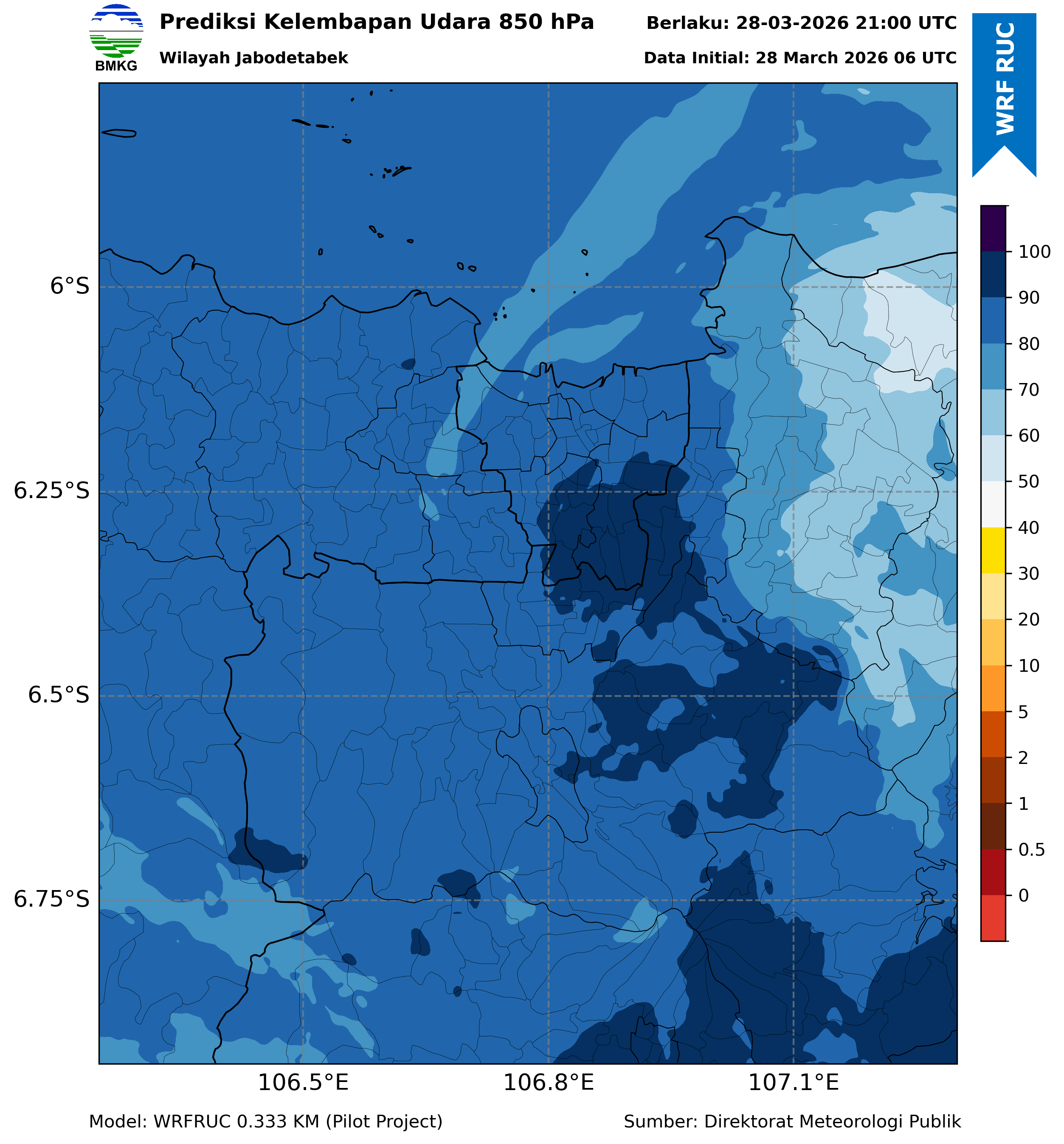 WRFDA RH Forecast 850 hPa Jakarta