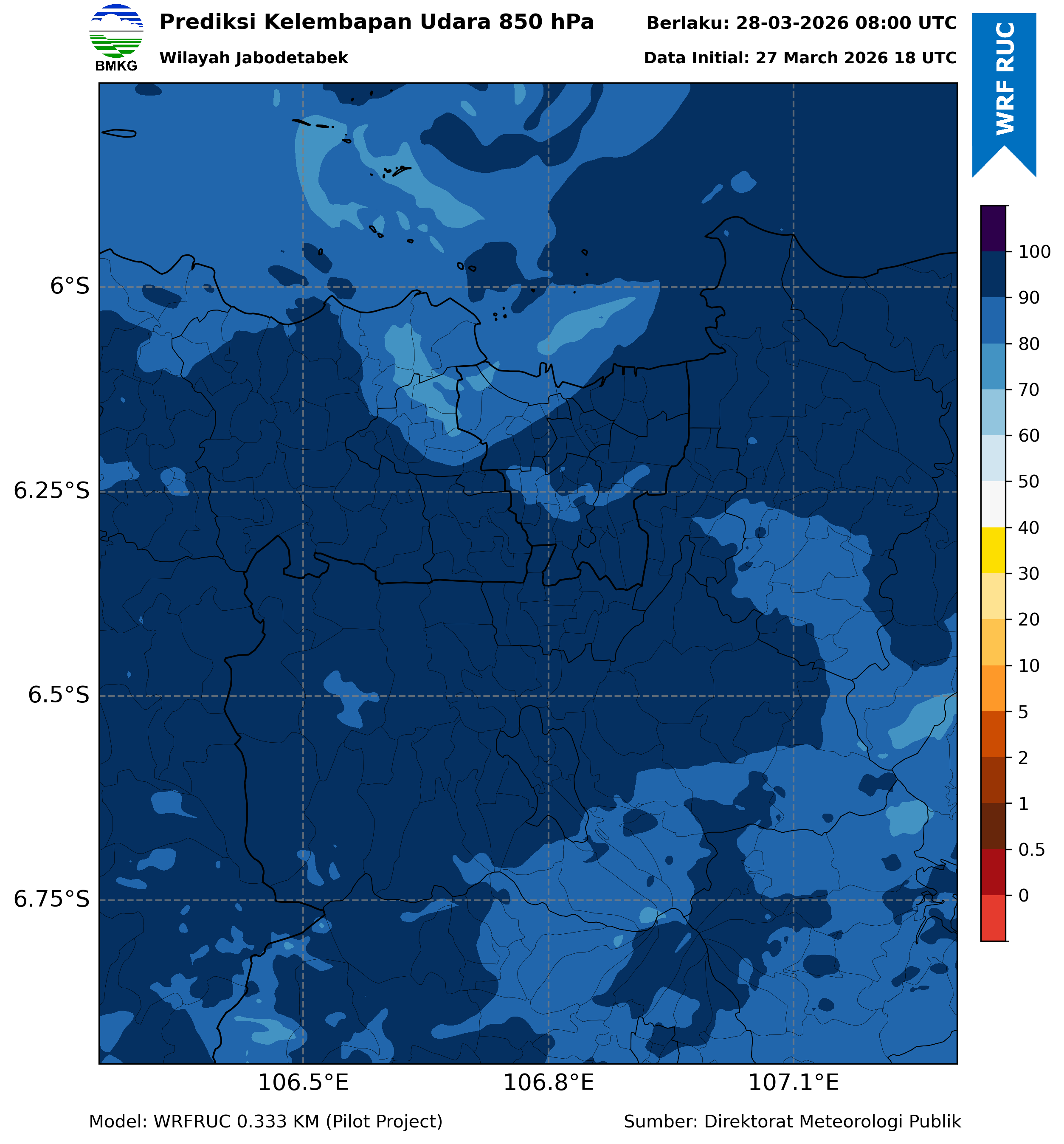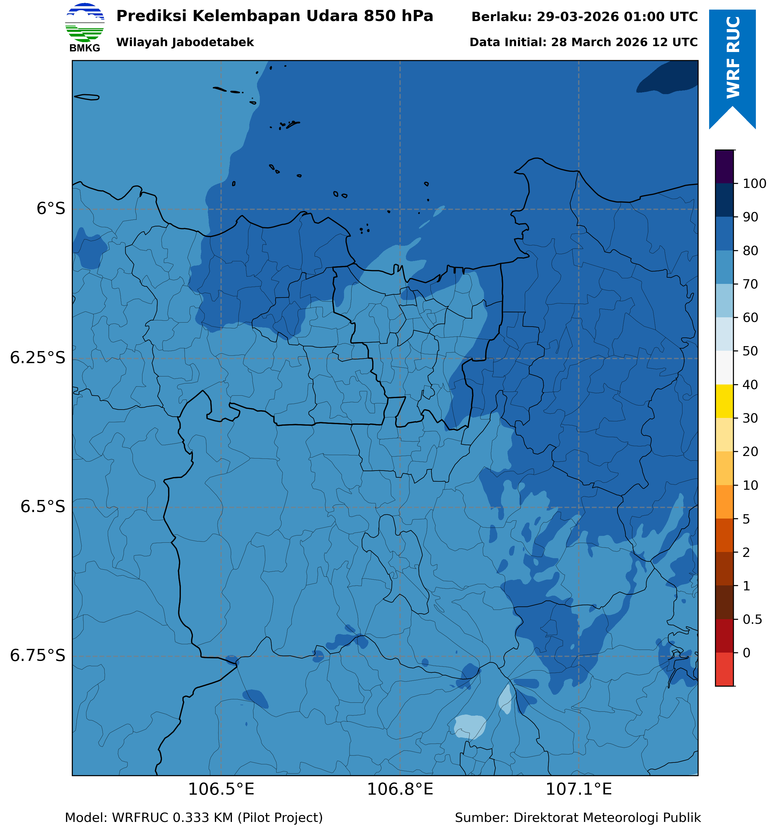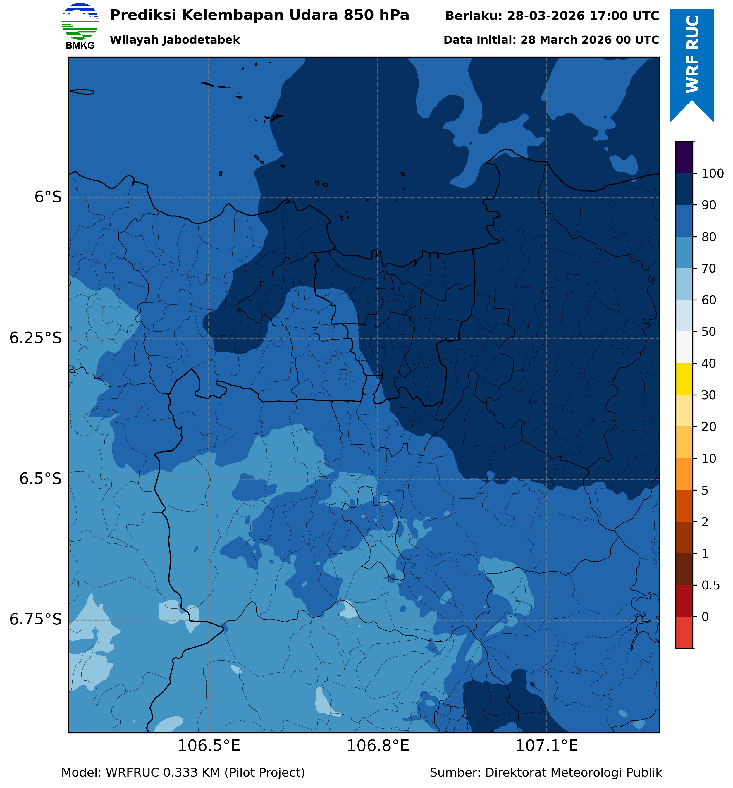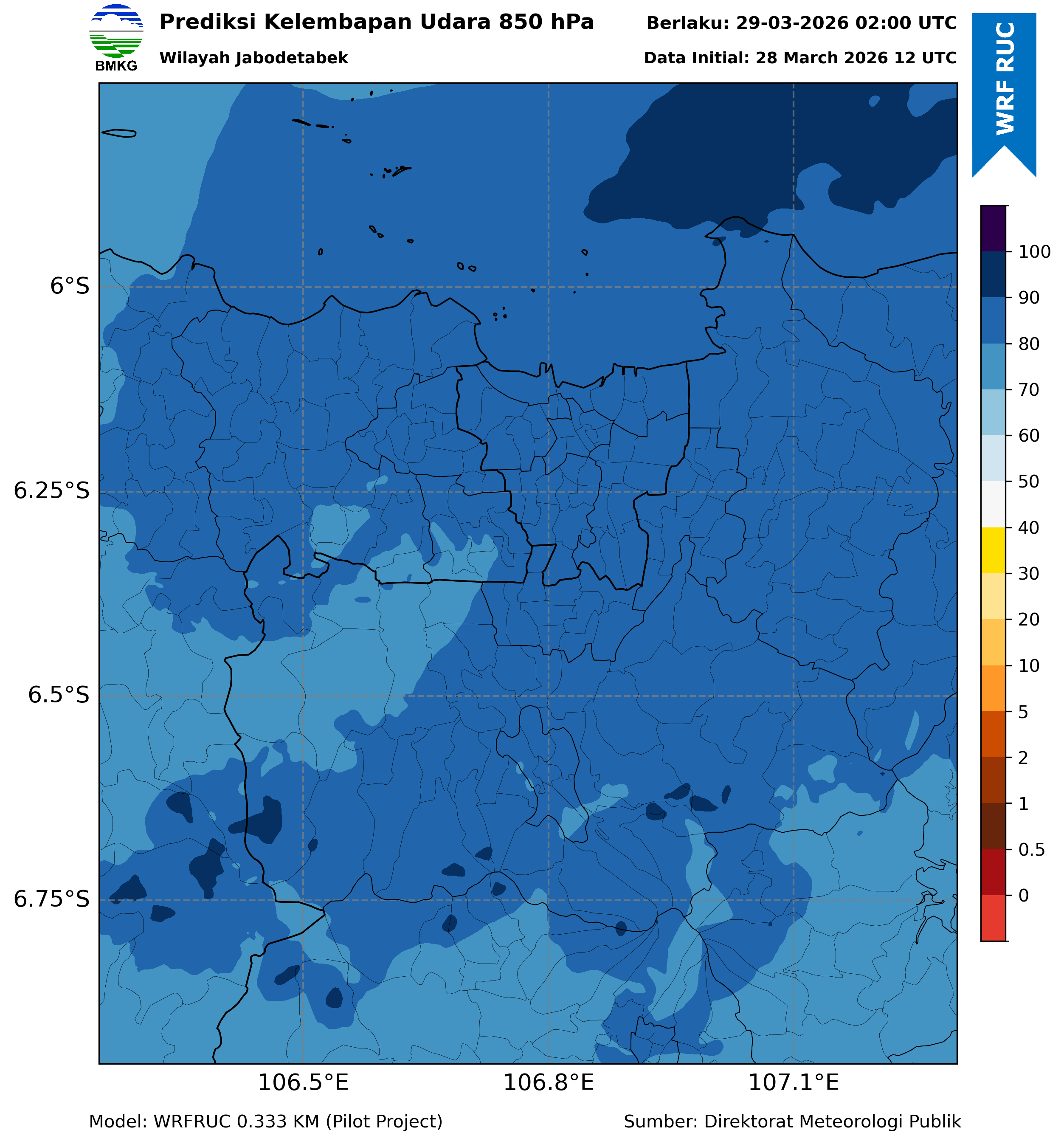 WRFDA RH Forecast 850 hPa Jakarta