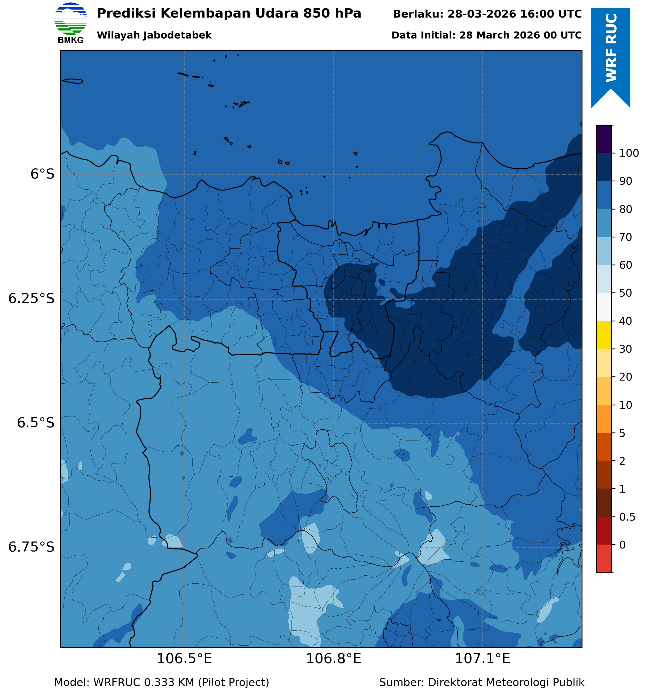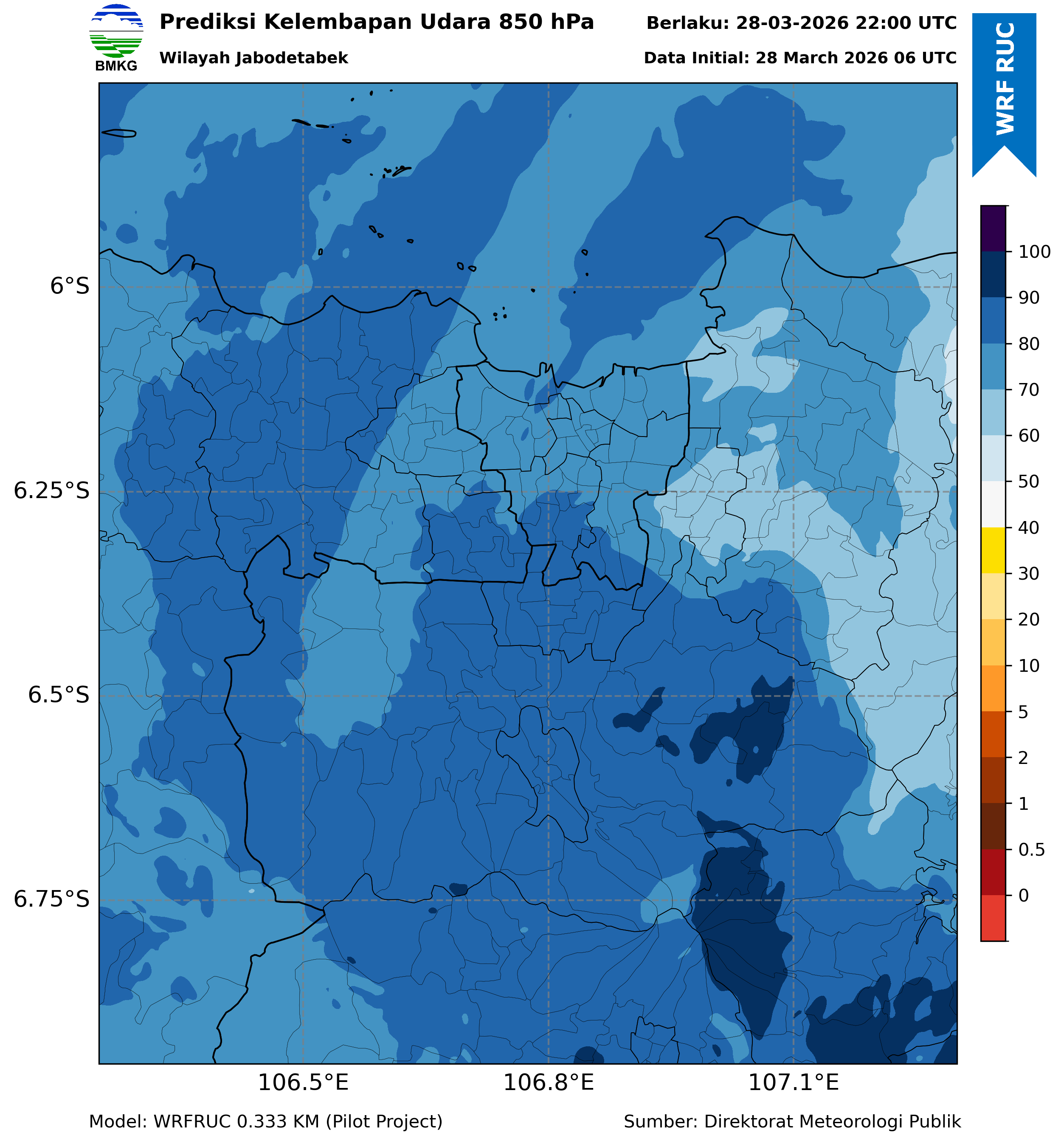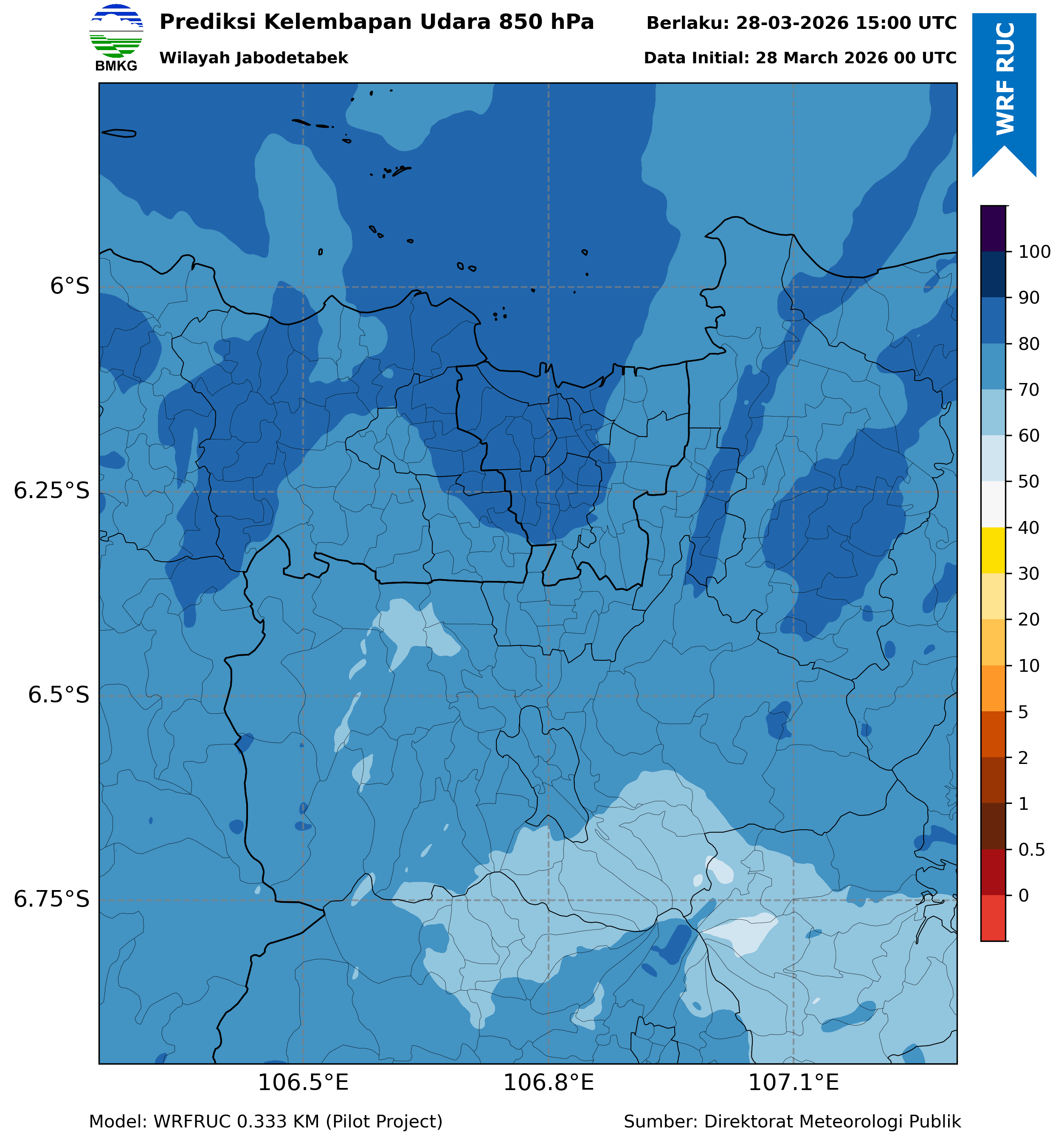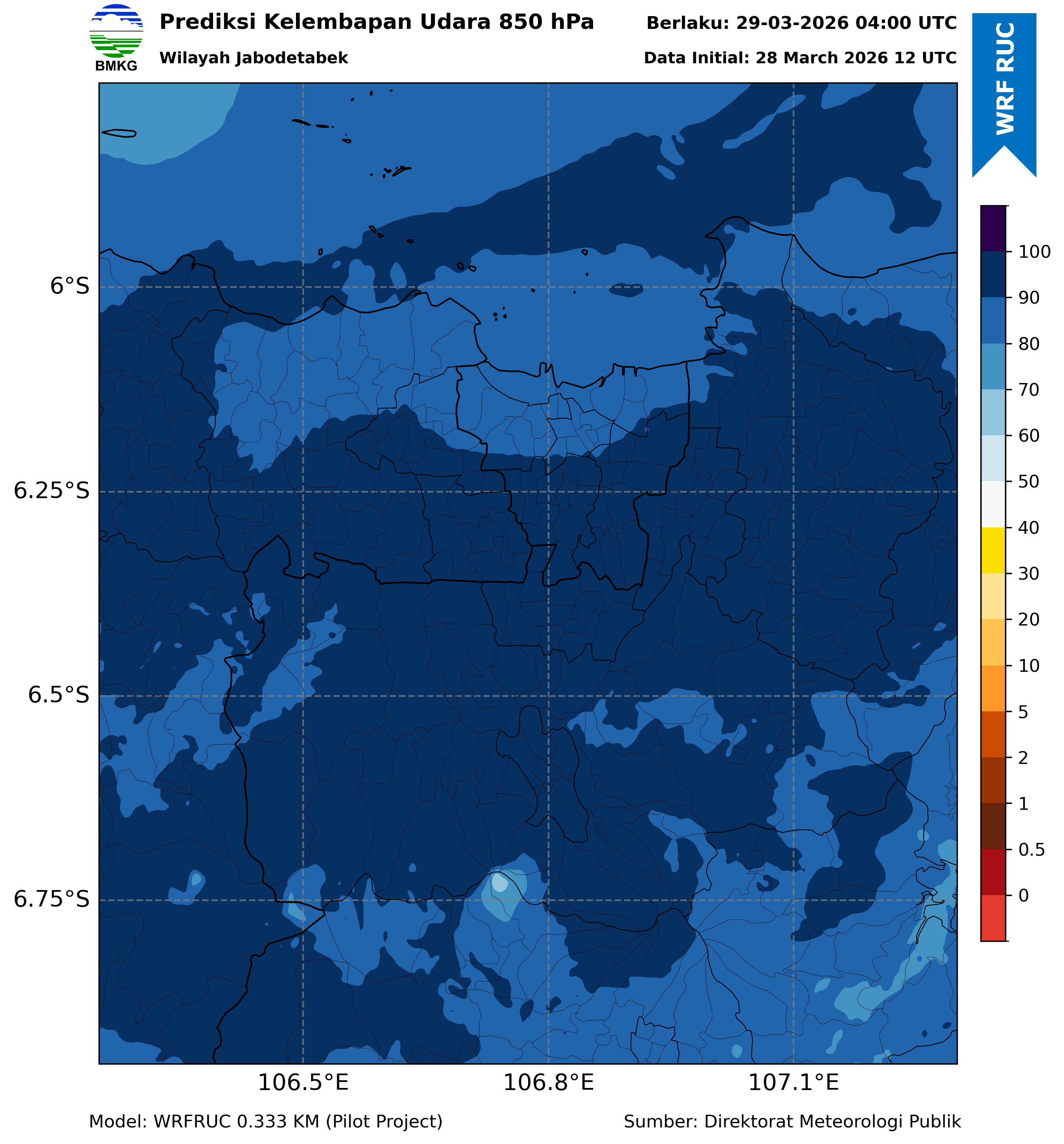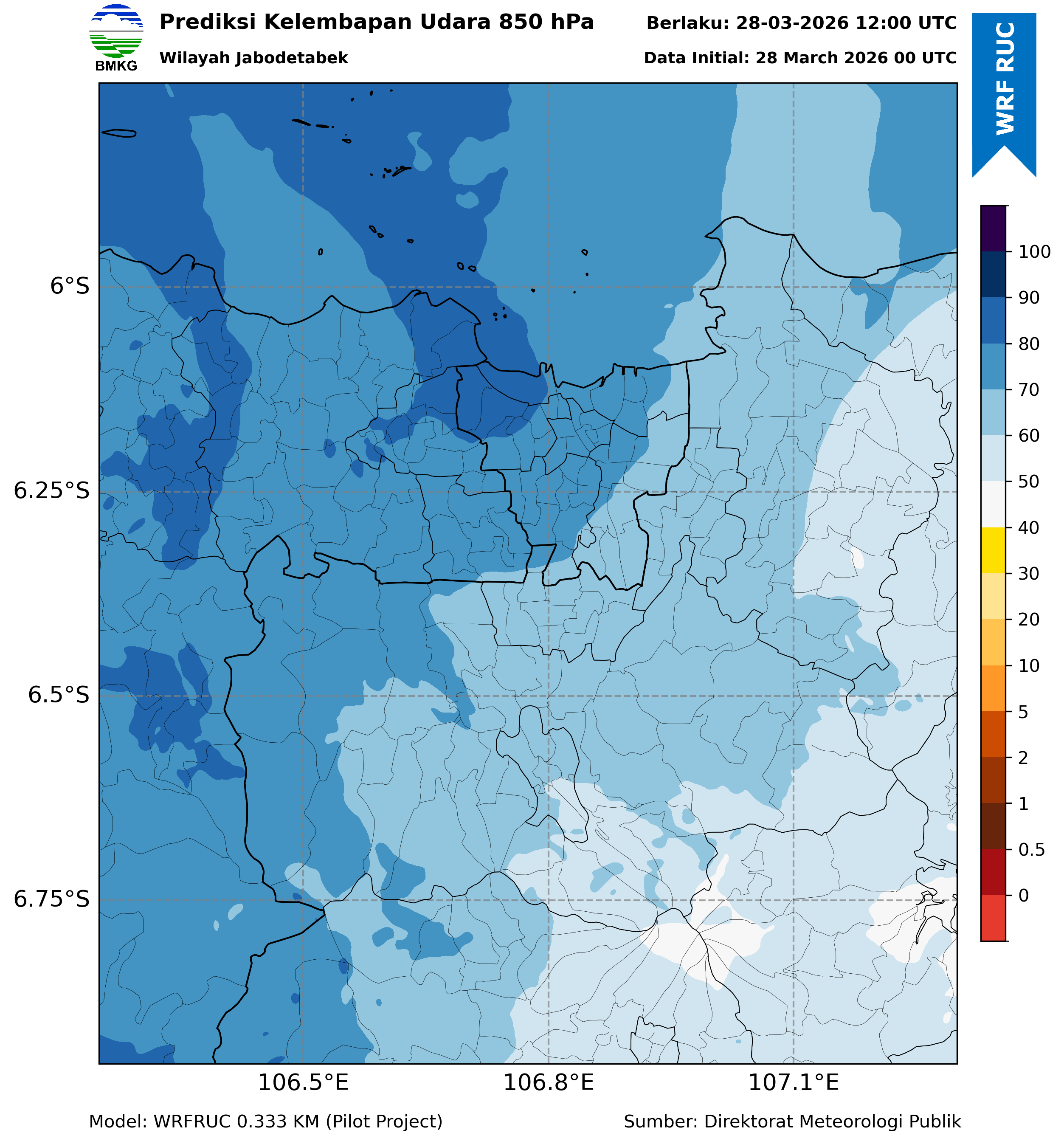 WRFDA RH Forecast 850 hPa Jakarta