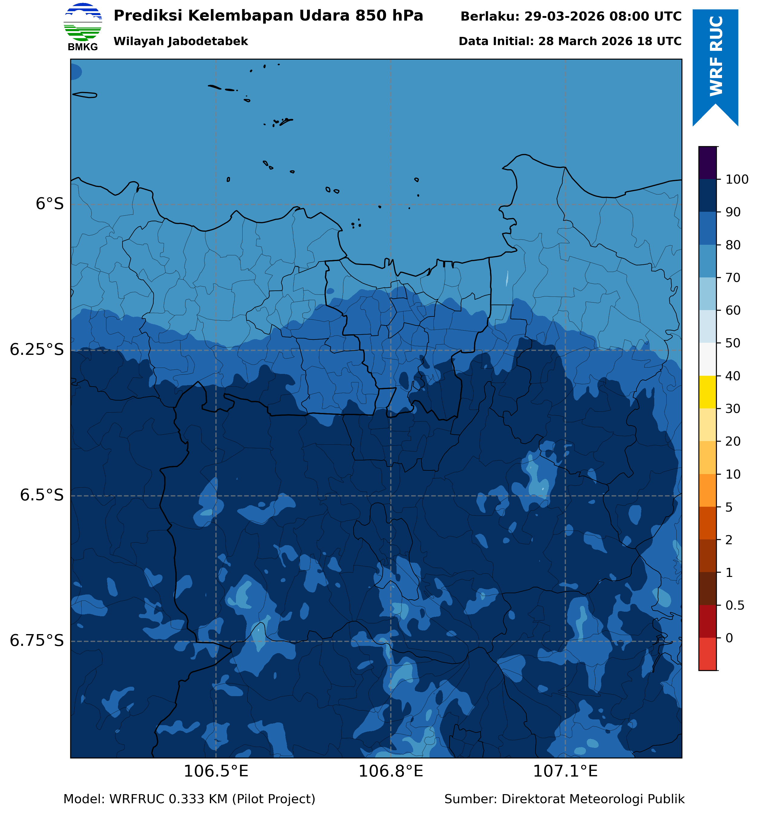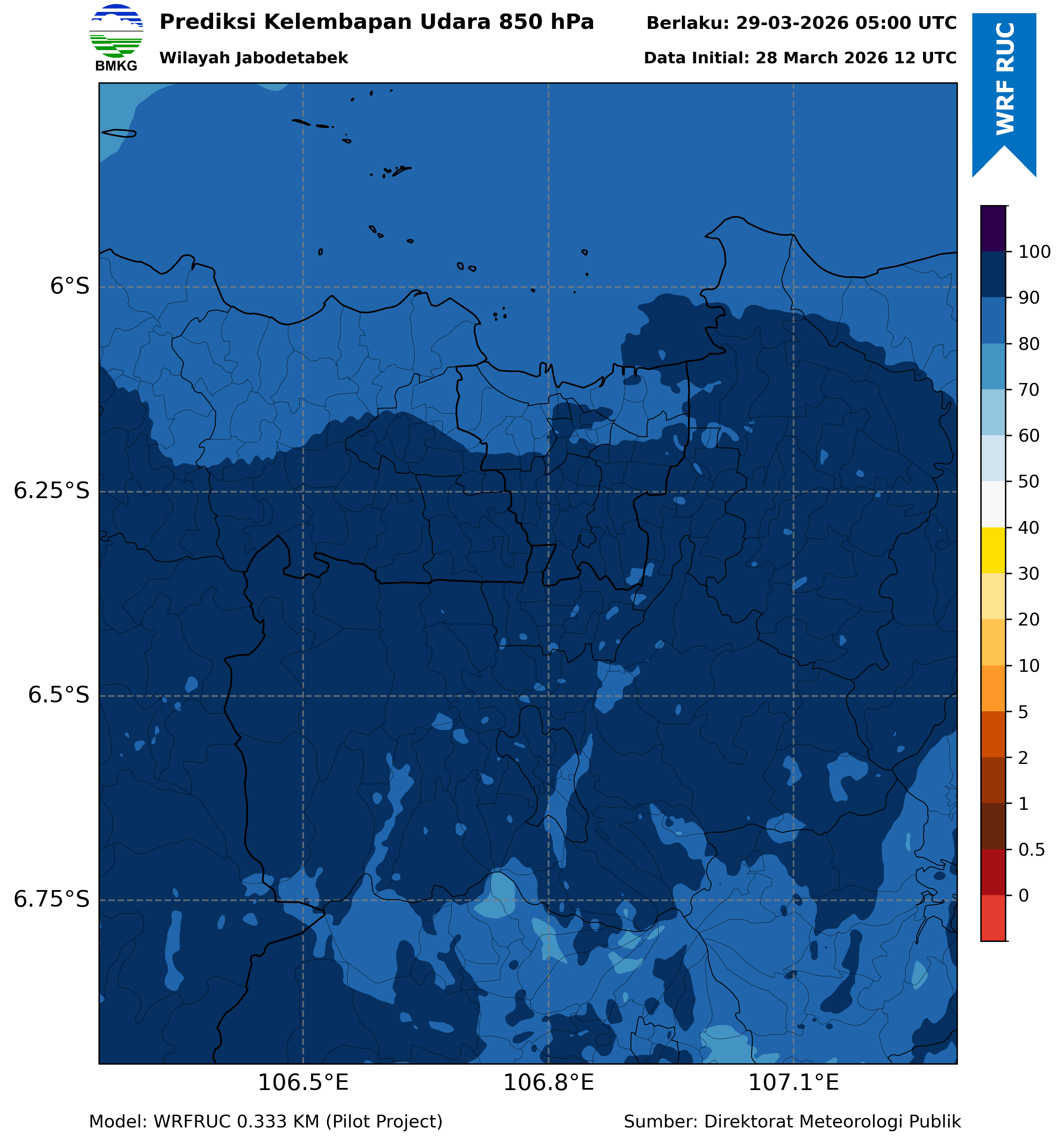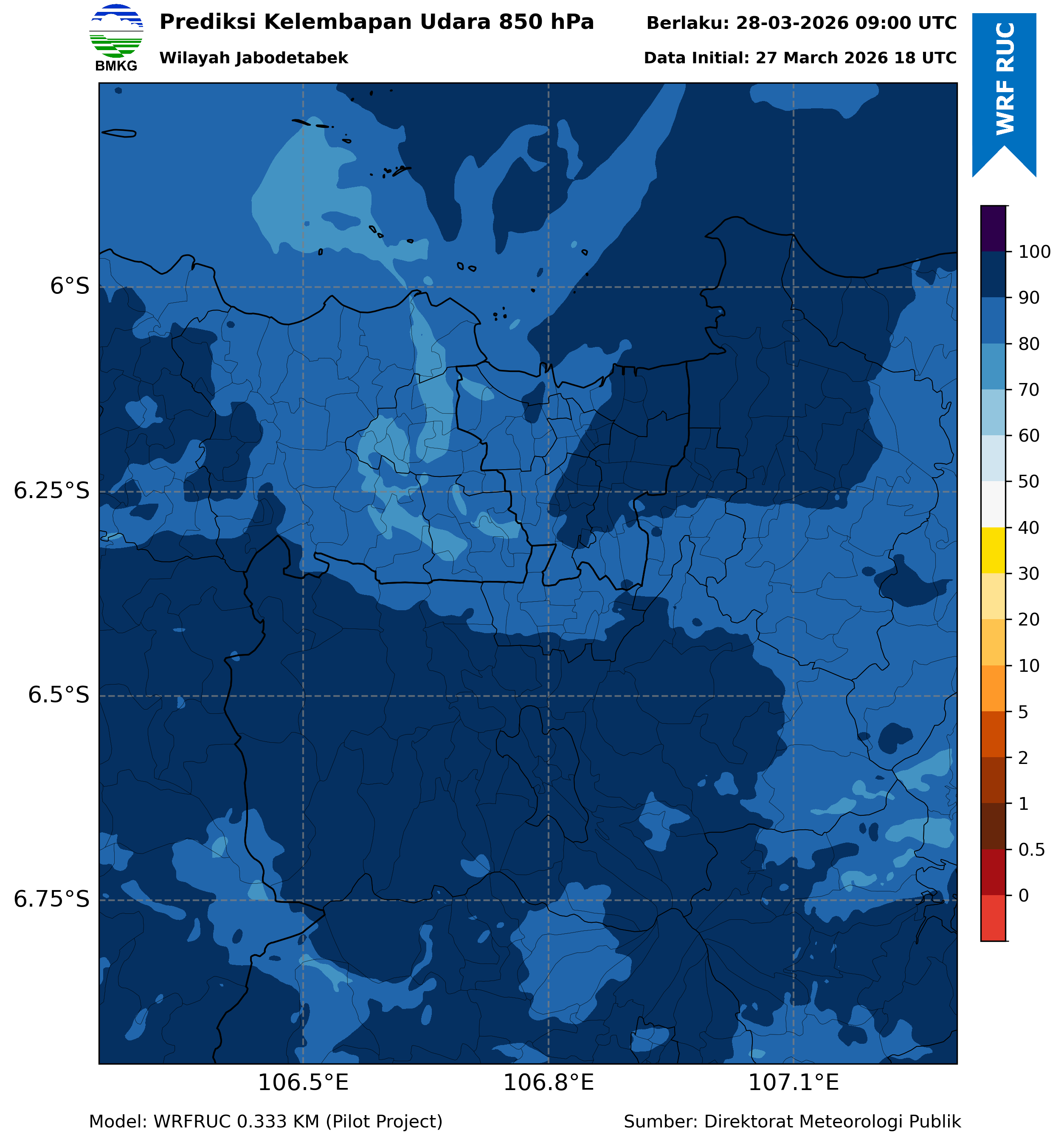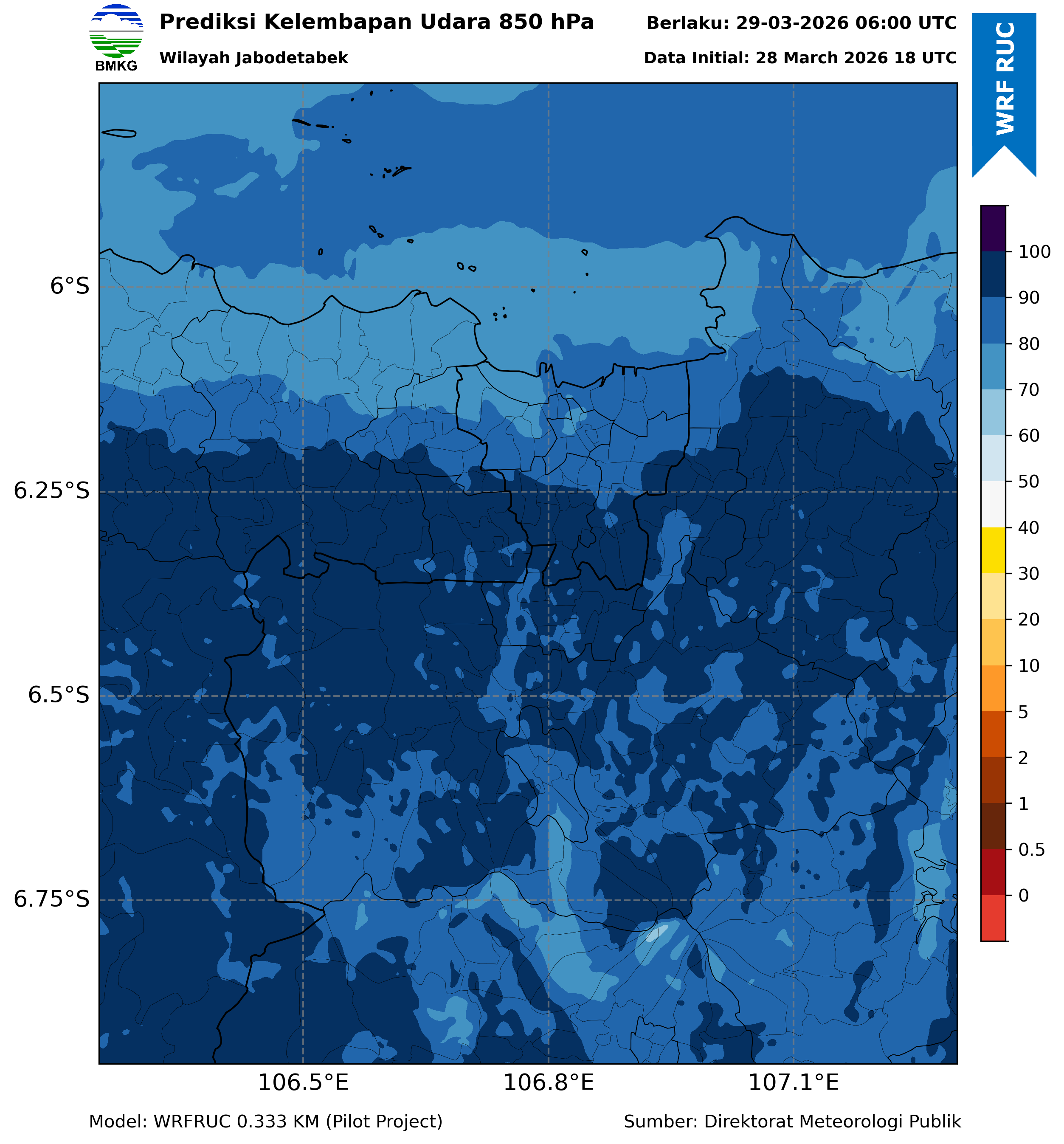 WRFDA RH Forecast 850 hPa Jakarta