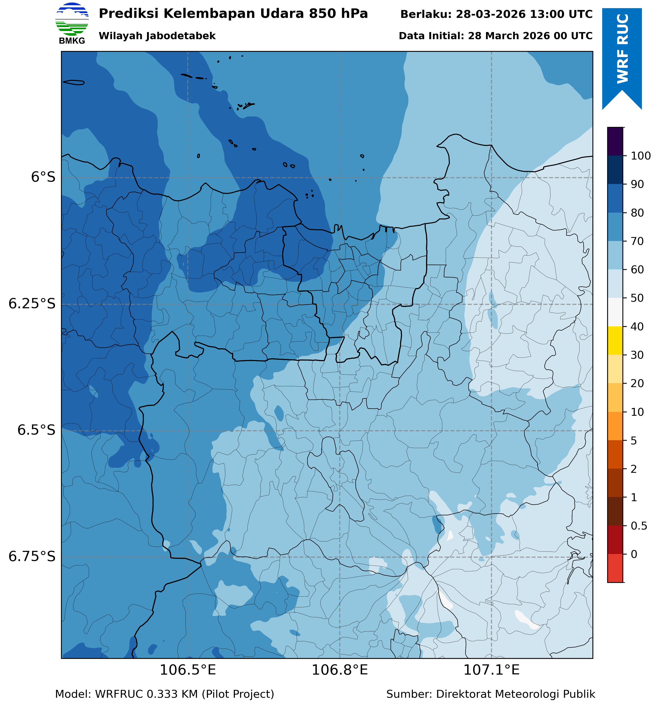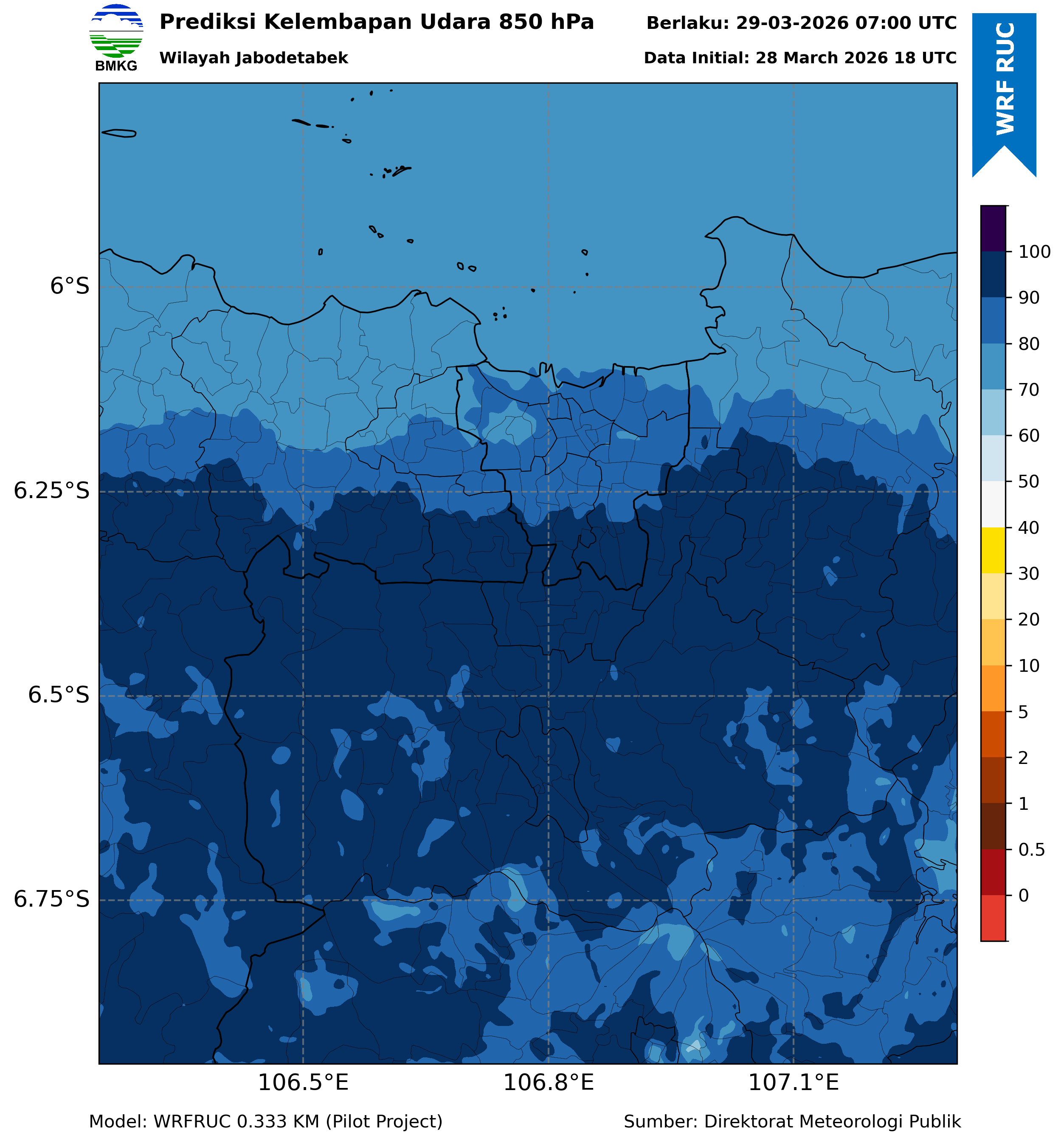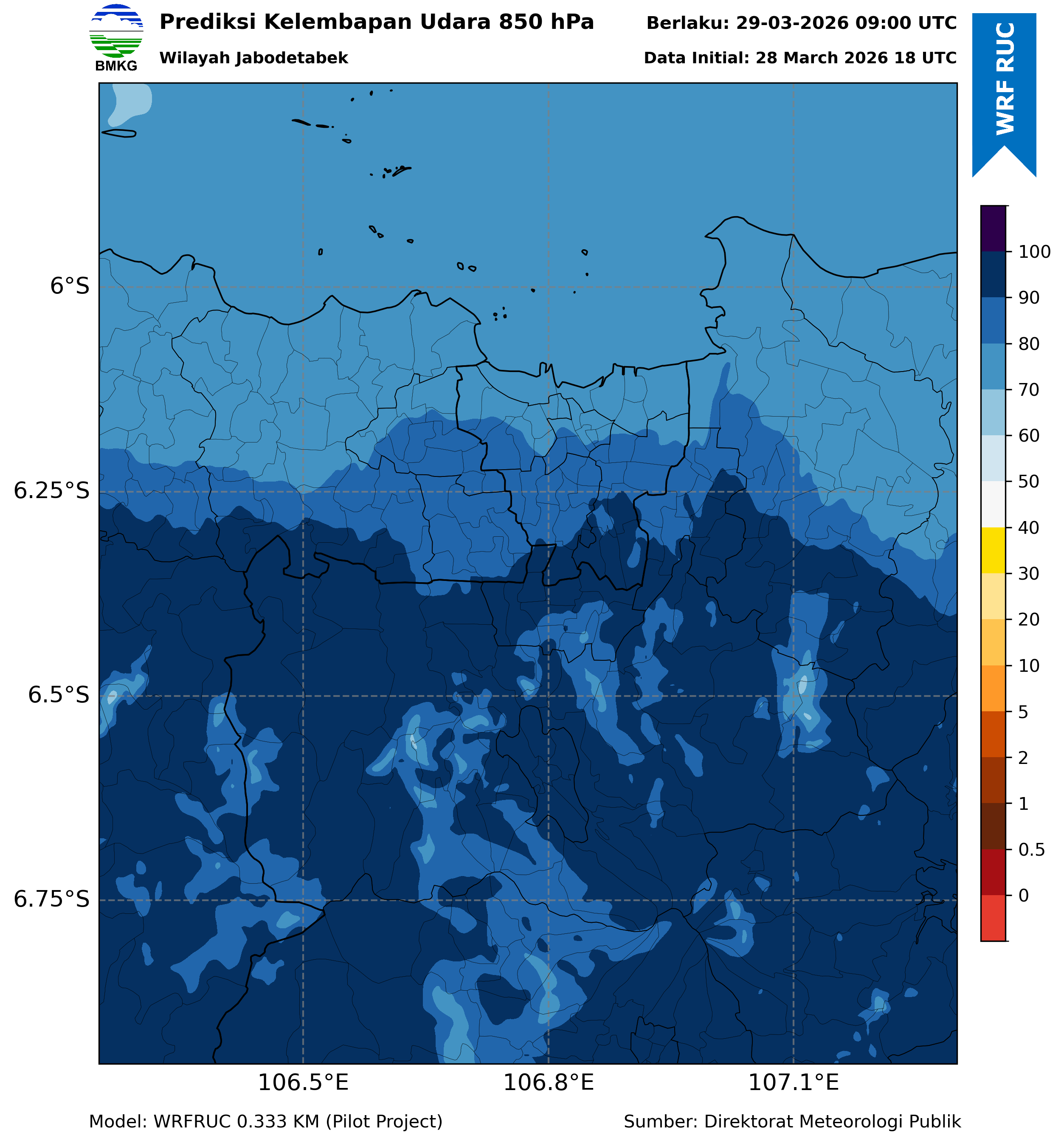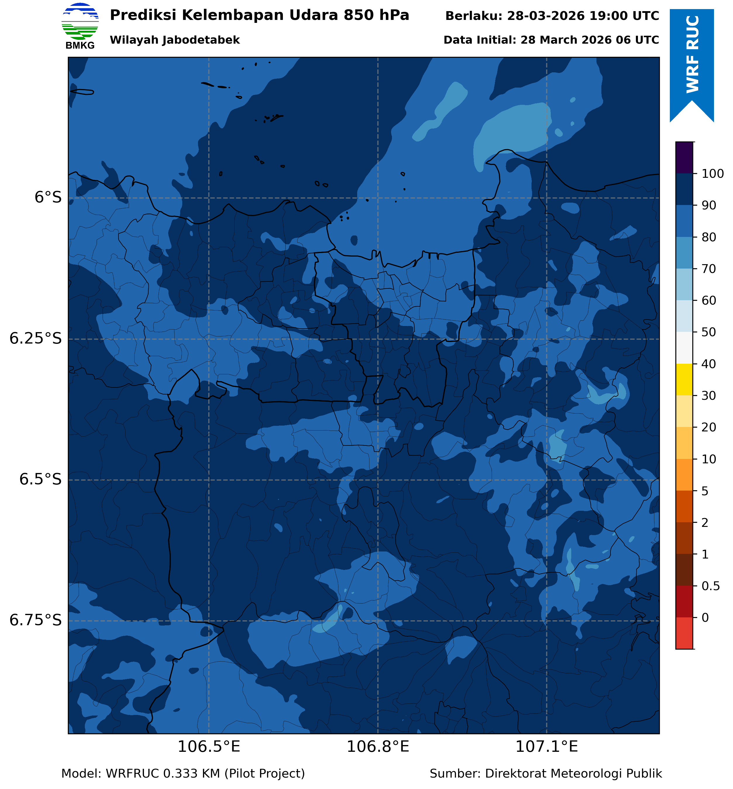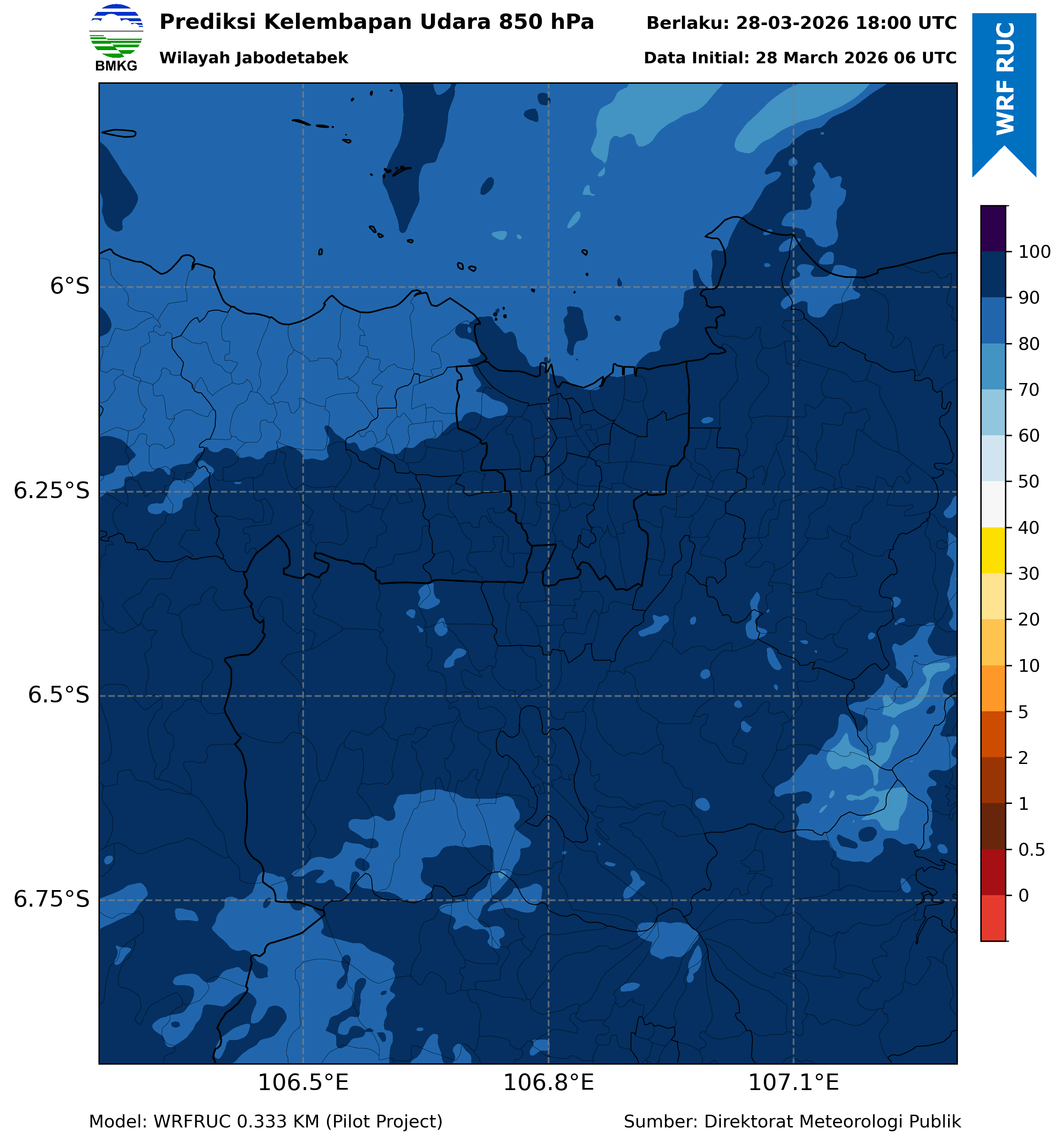 WRFDA RH Forecast 850 hPa Jakarta