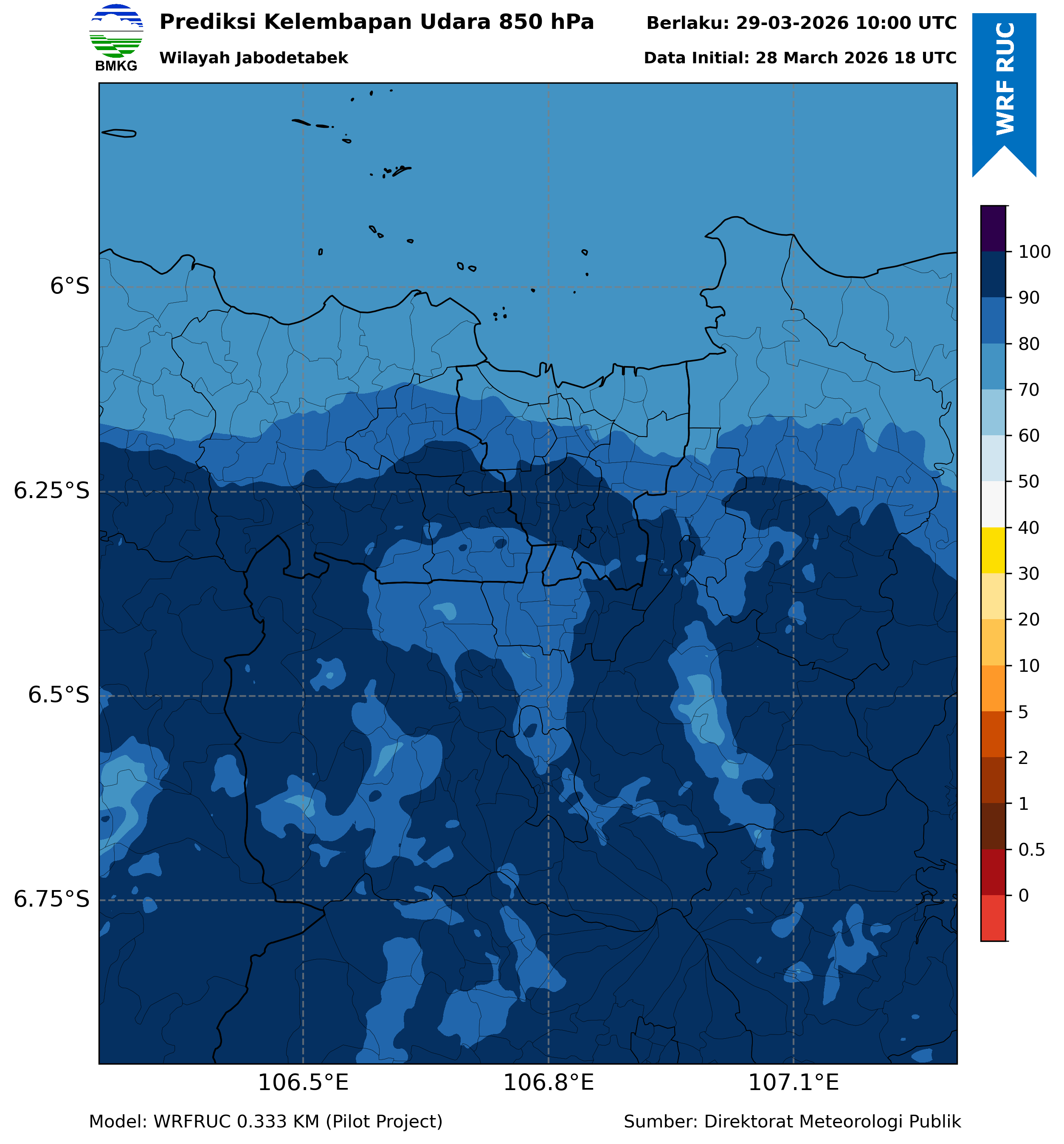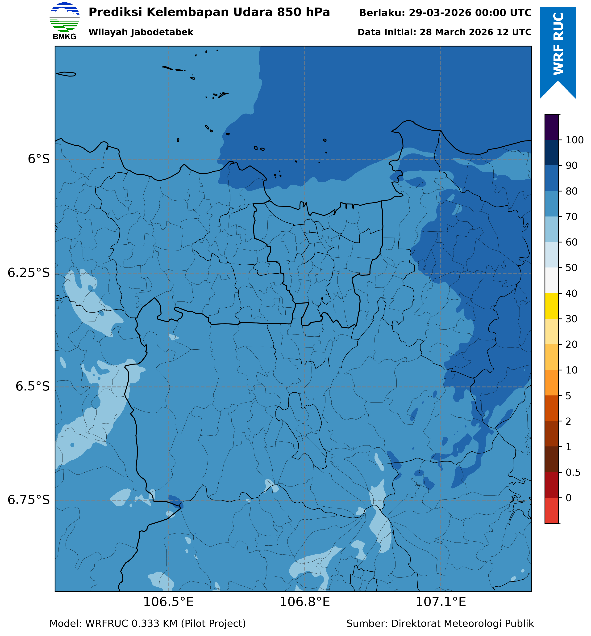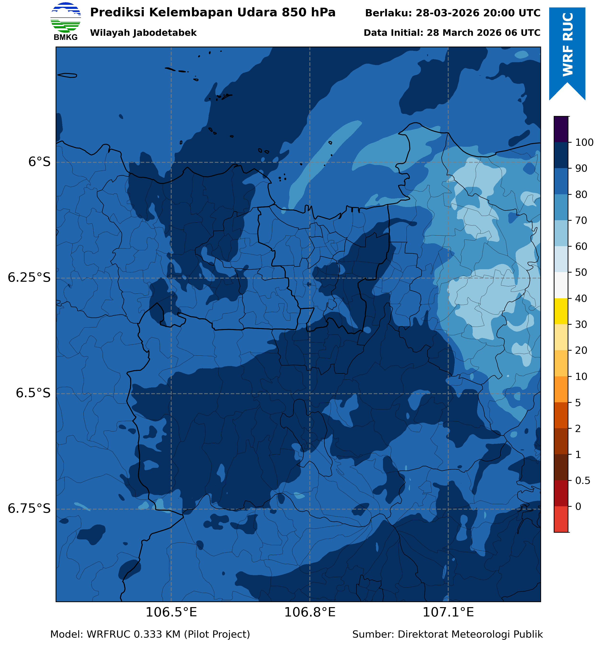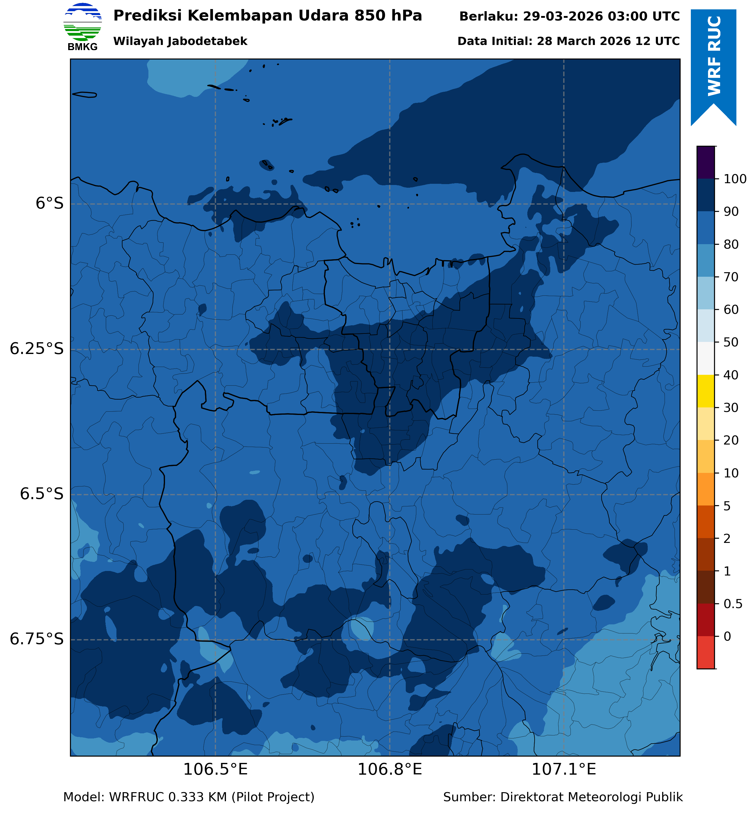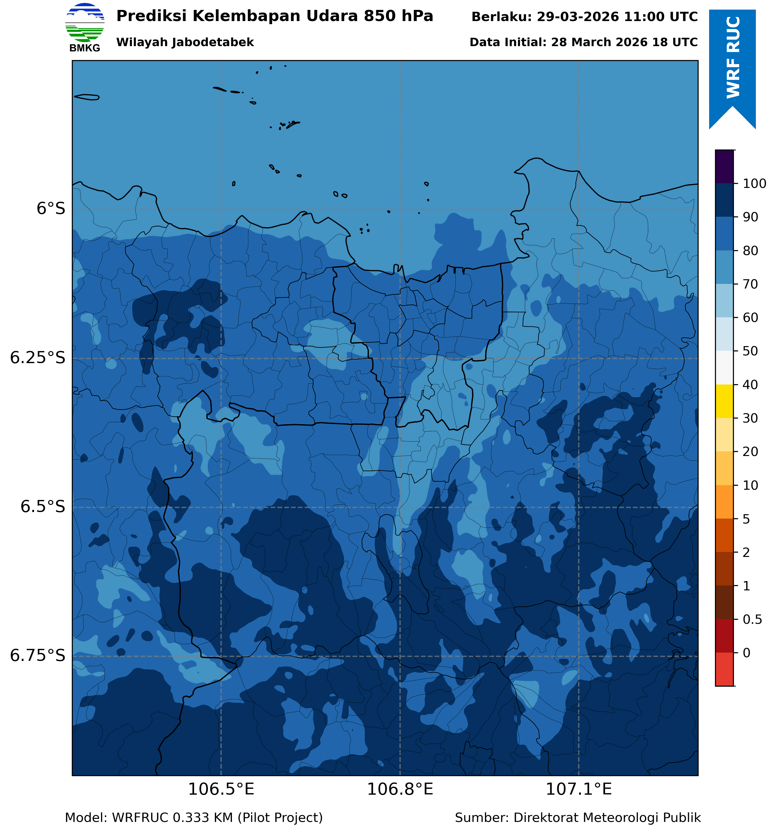 WRFDA RH Forecast 850 hPa Jakarta
