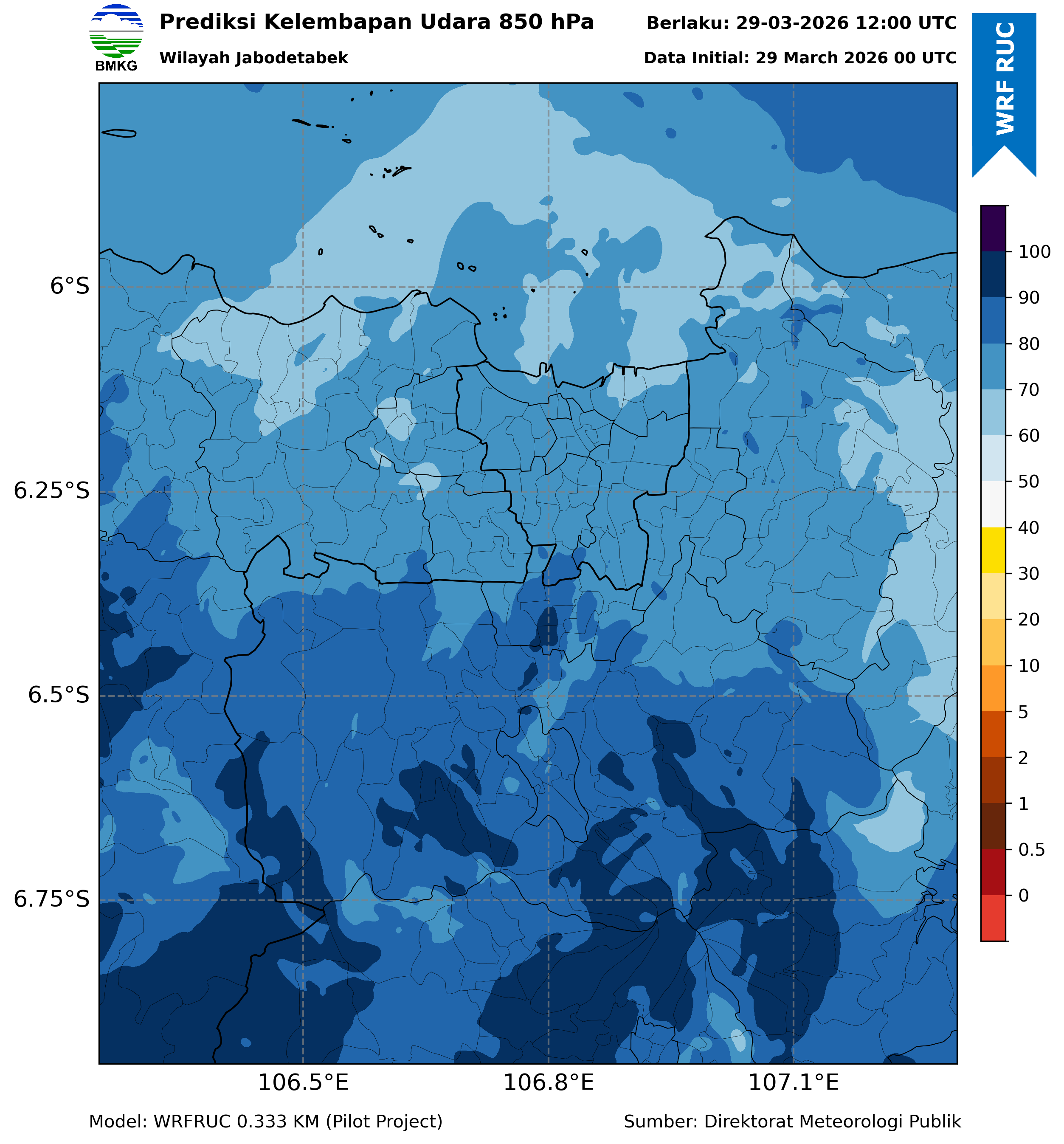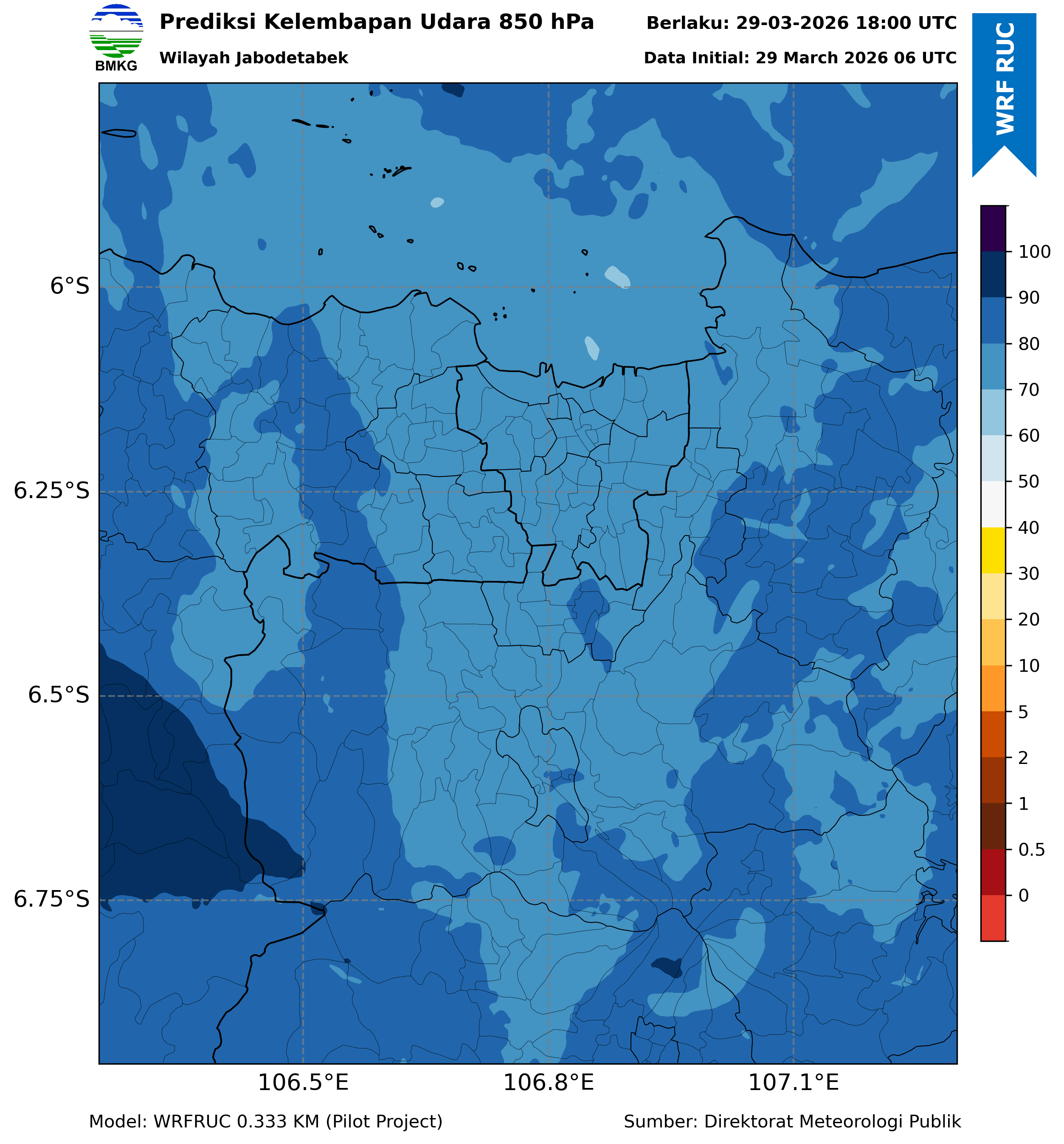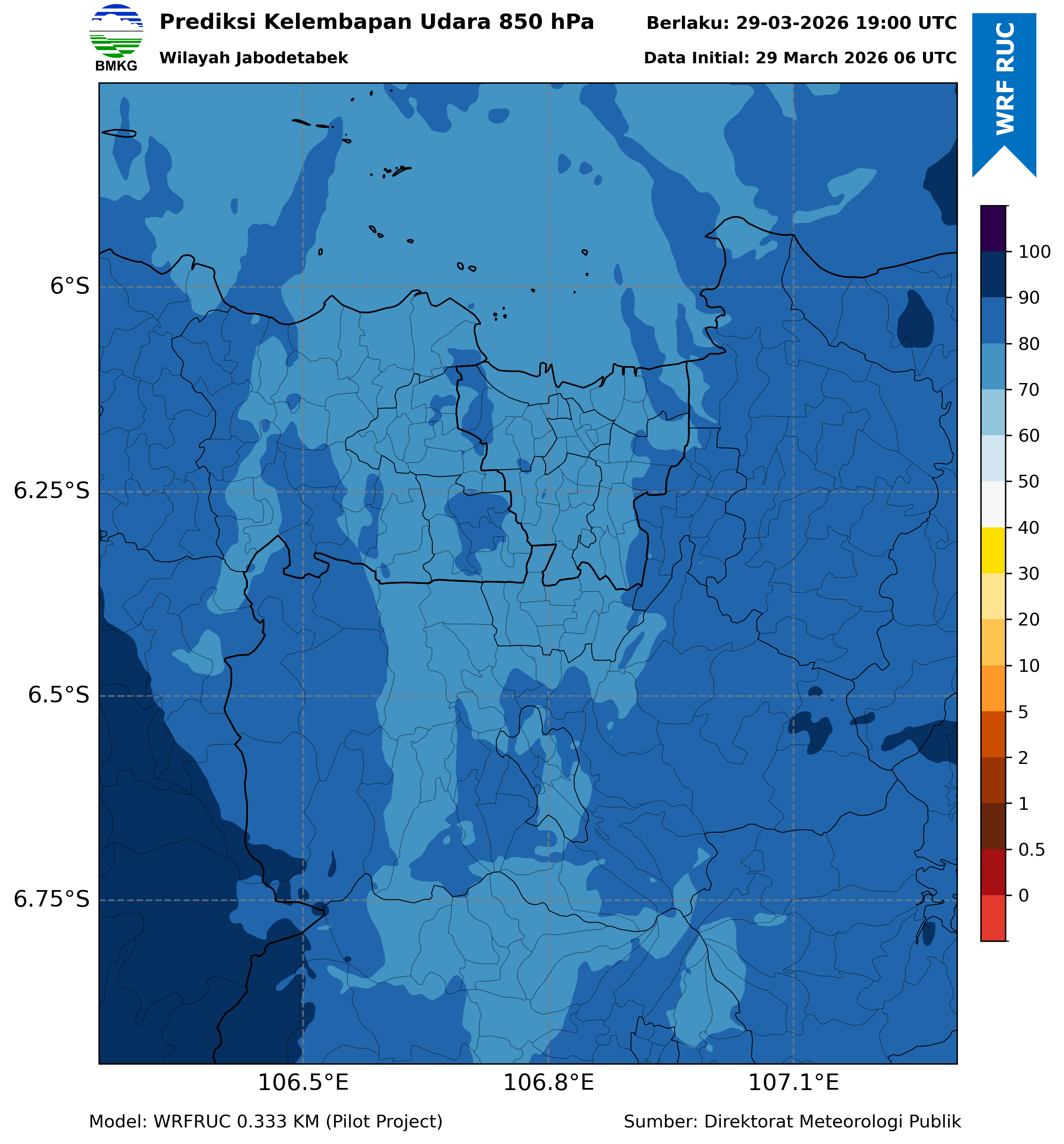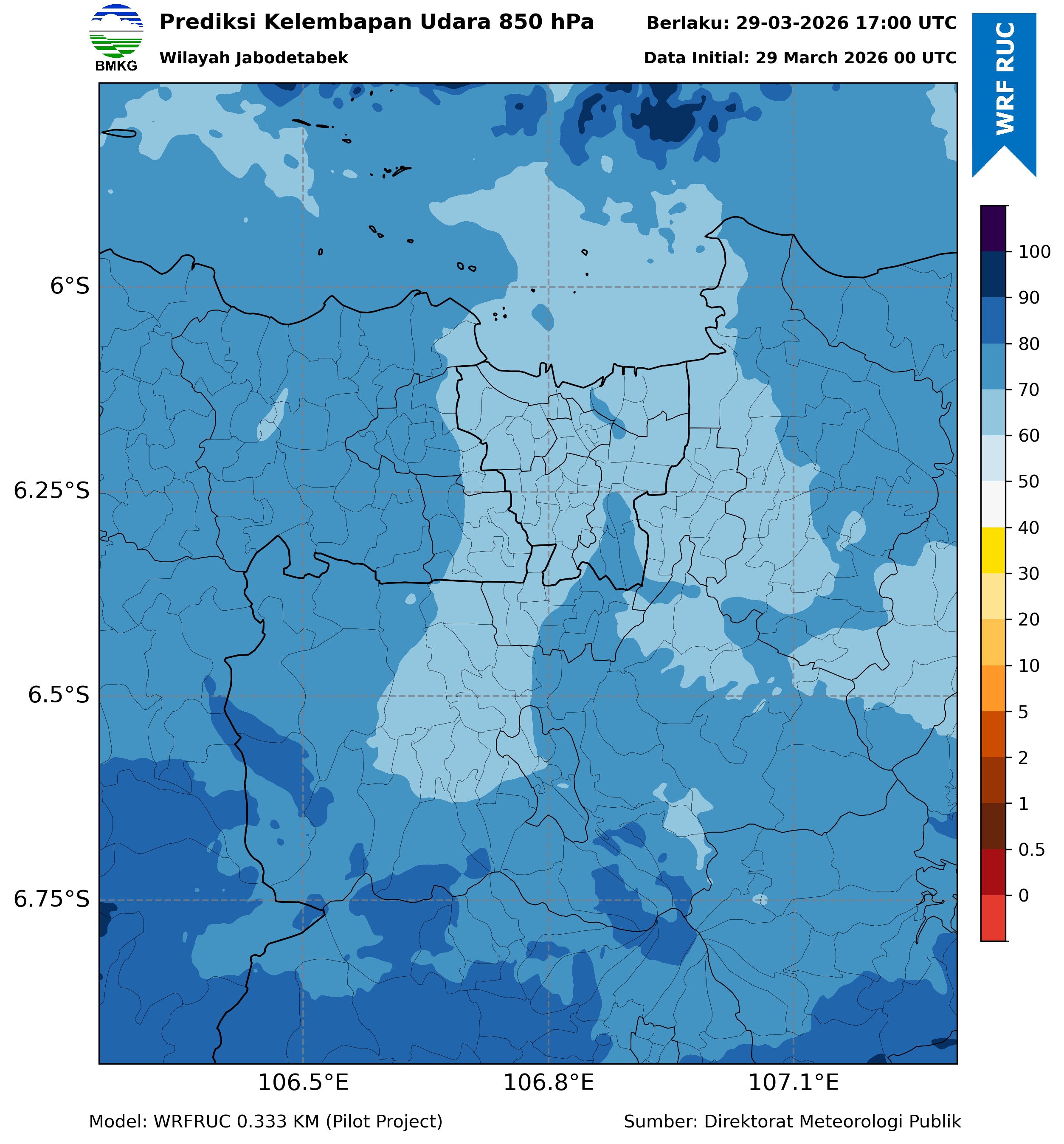 WRFDA RH Forecast 850 hPa Jakarta