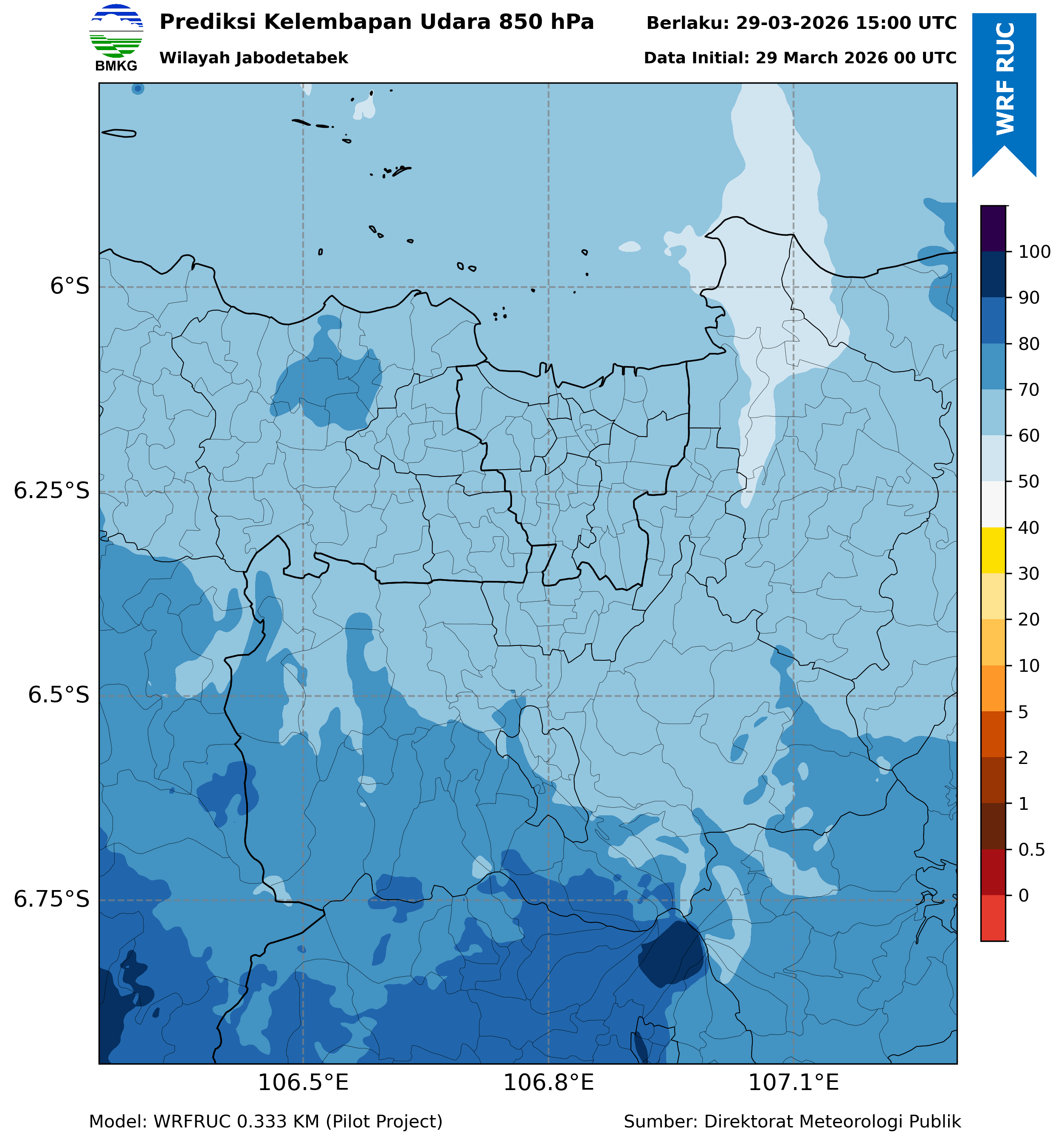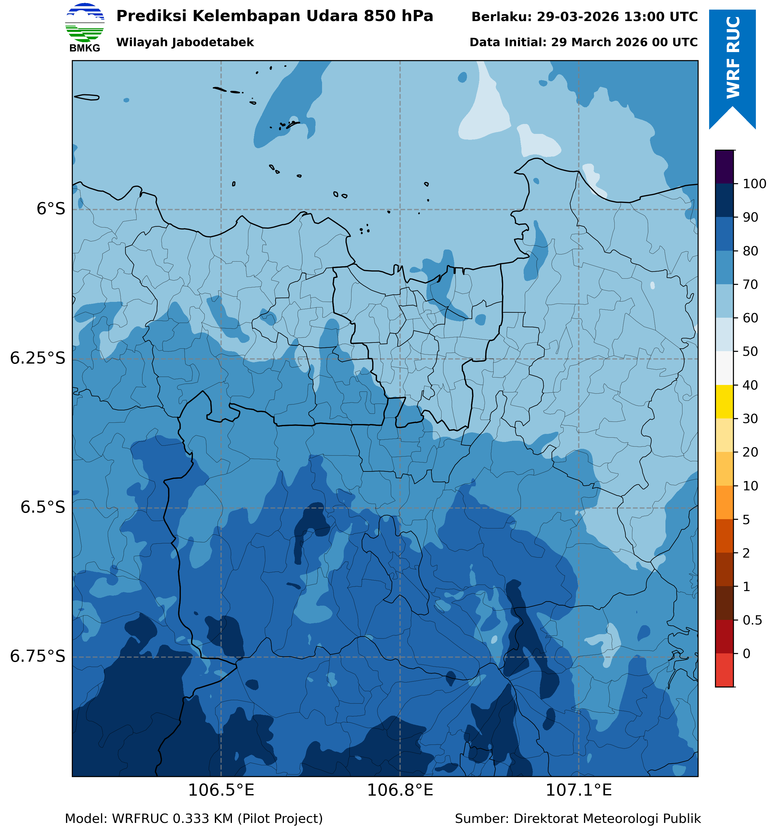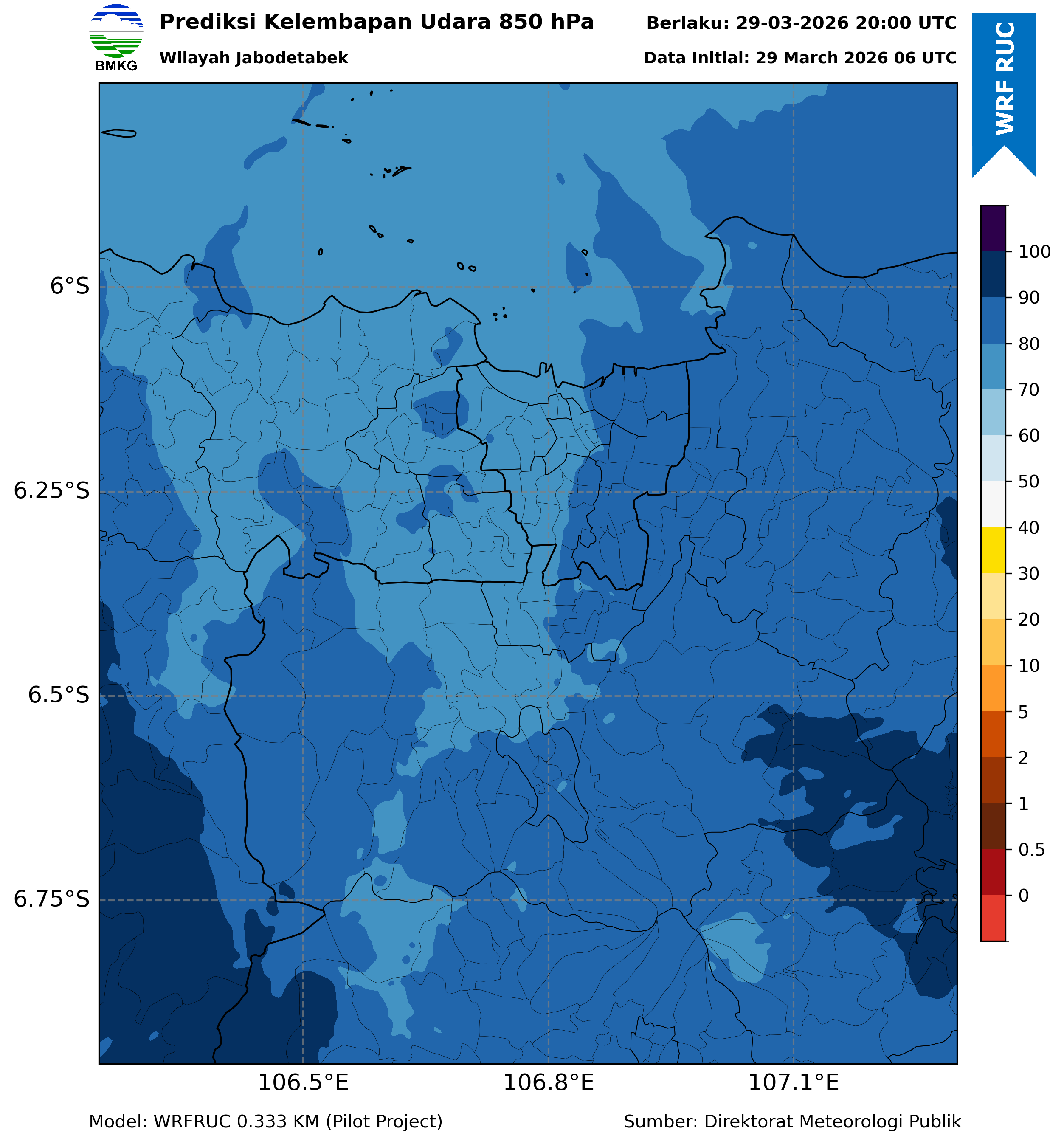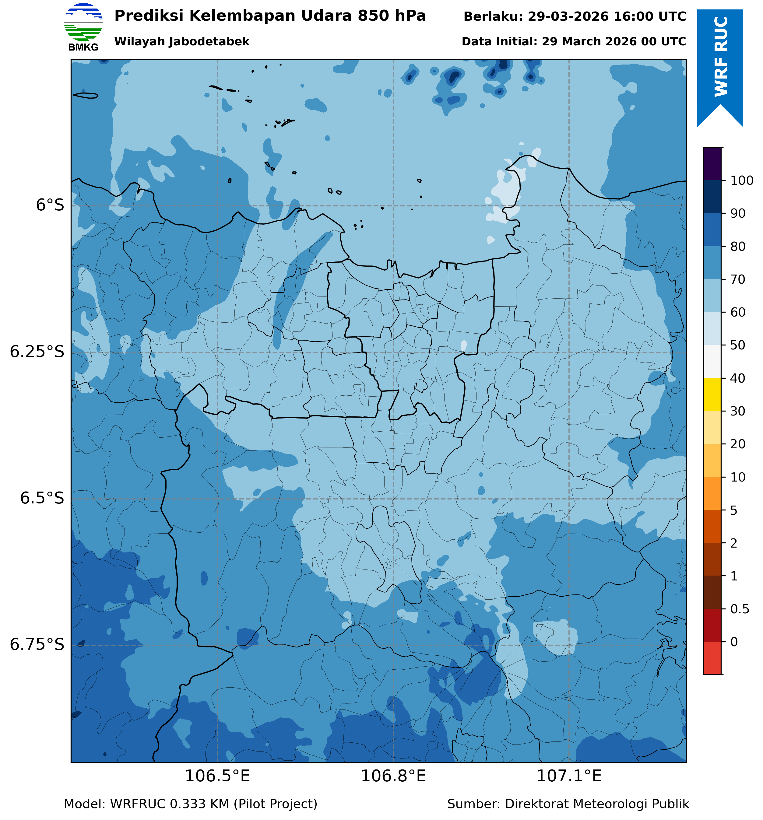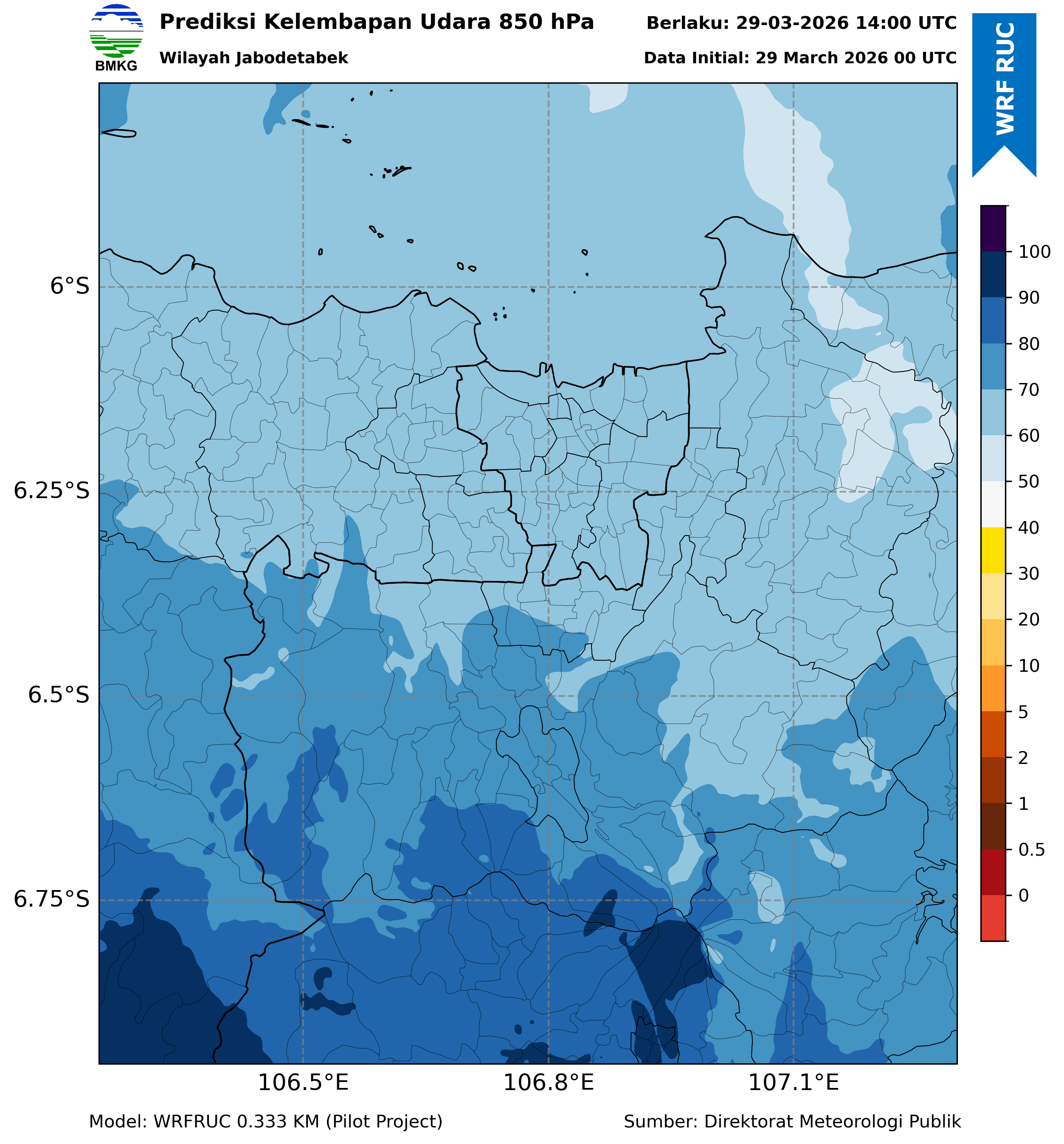 WRFDA RH Forecast 850 hPa Jakarta