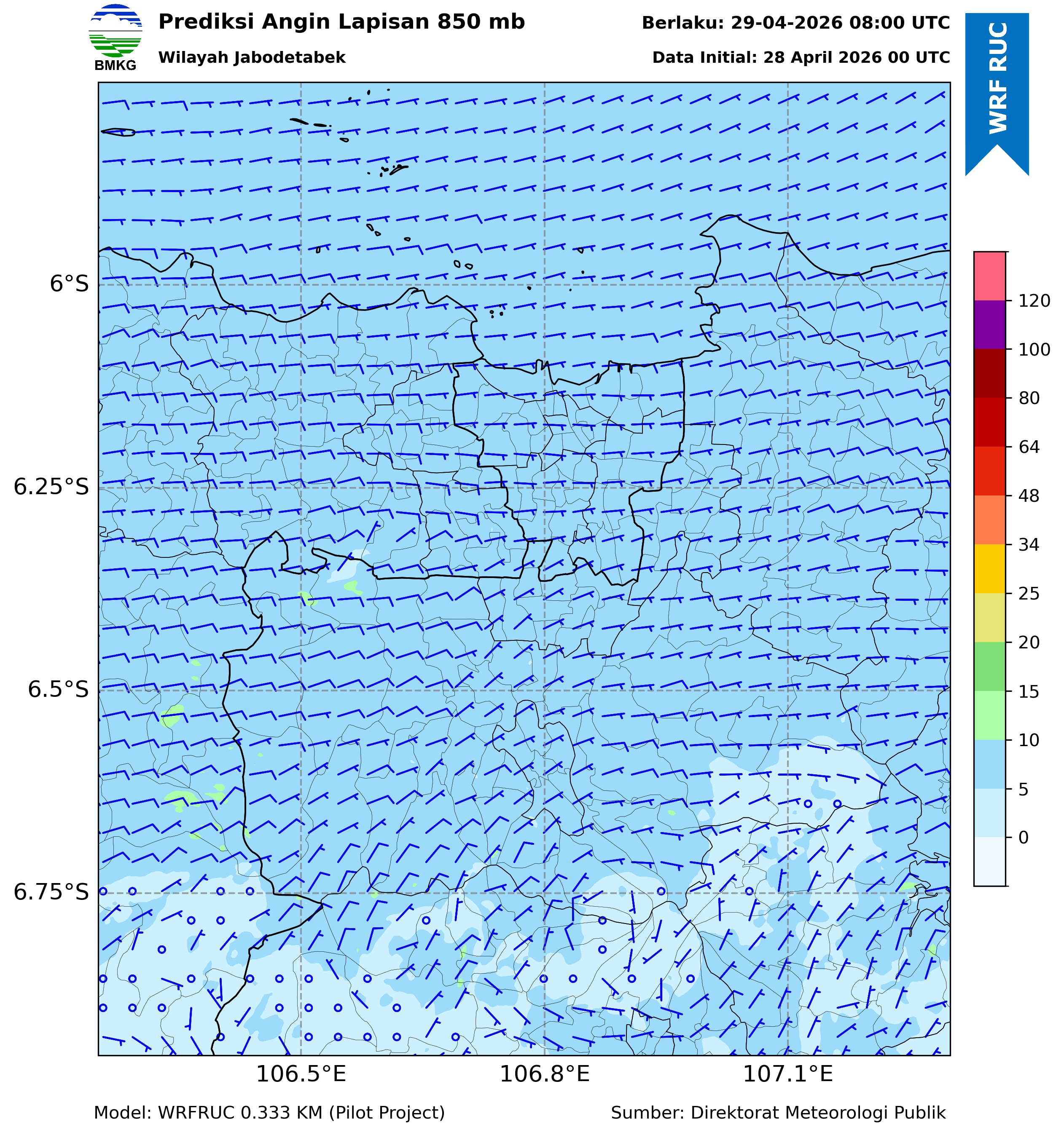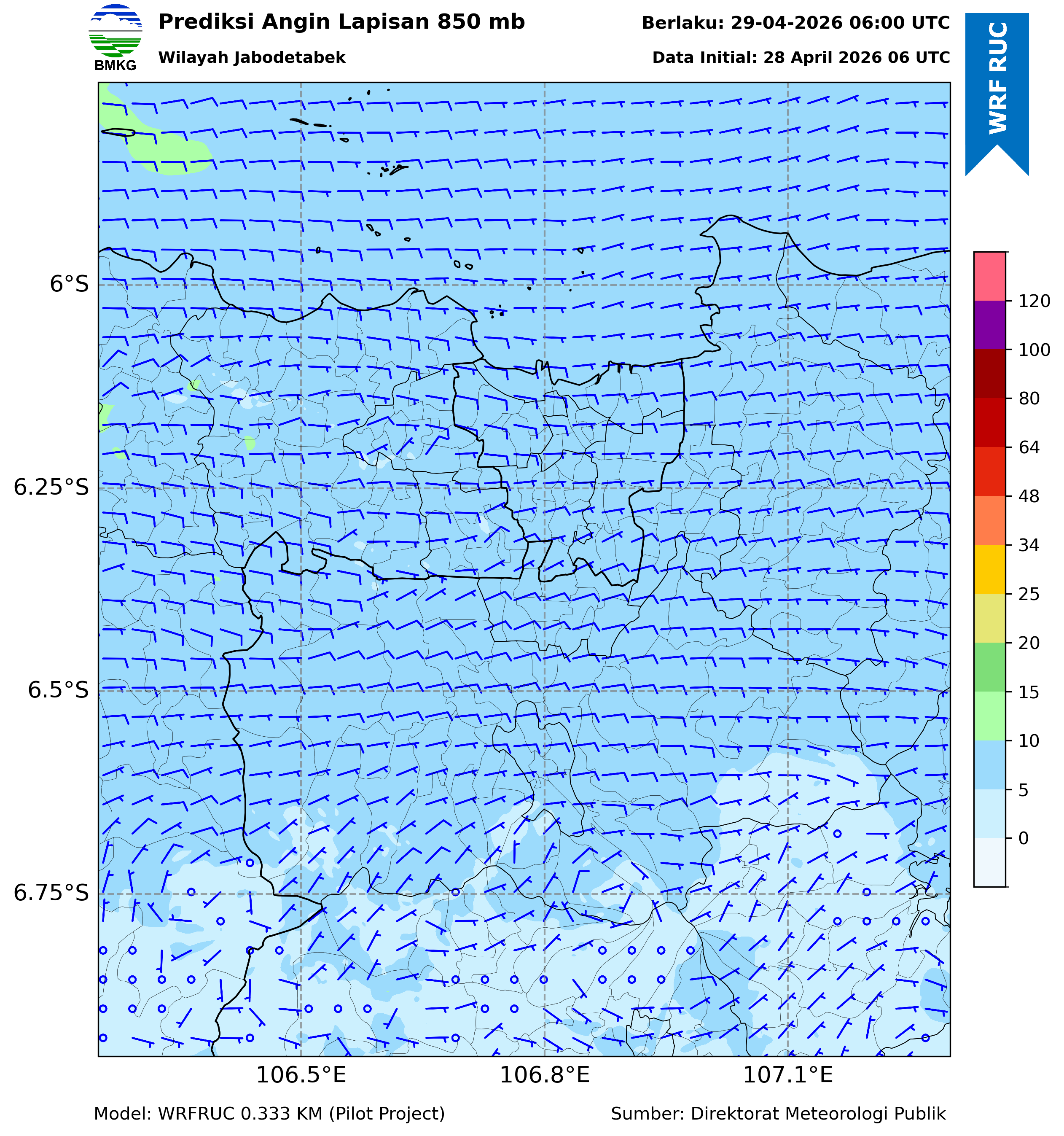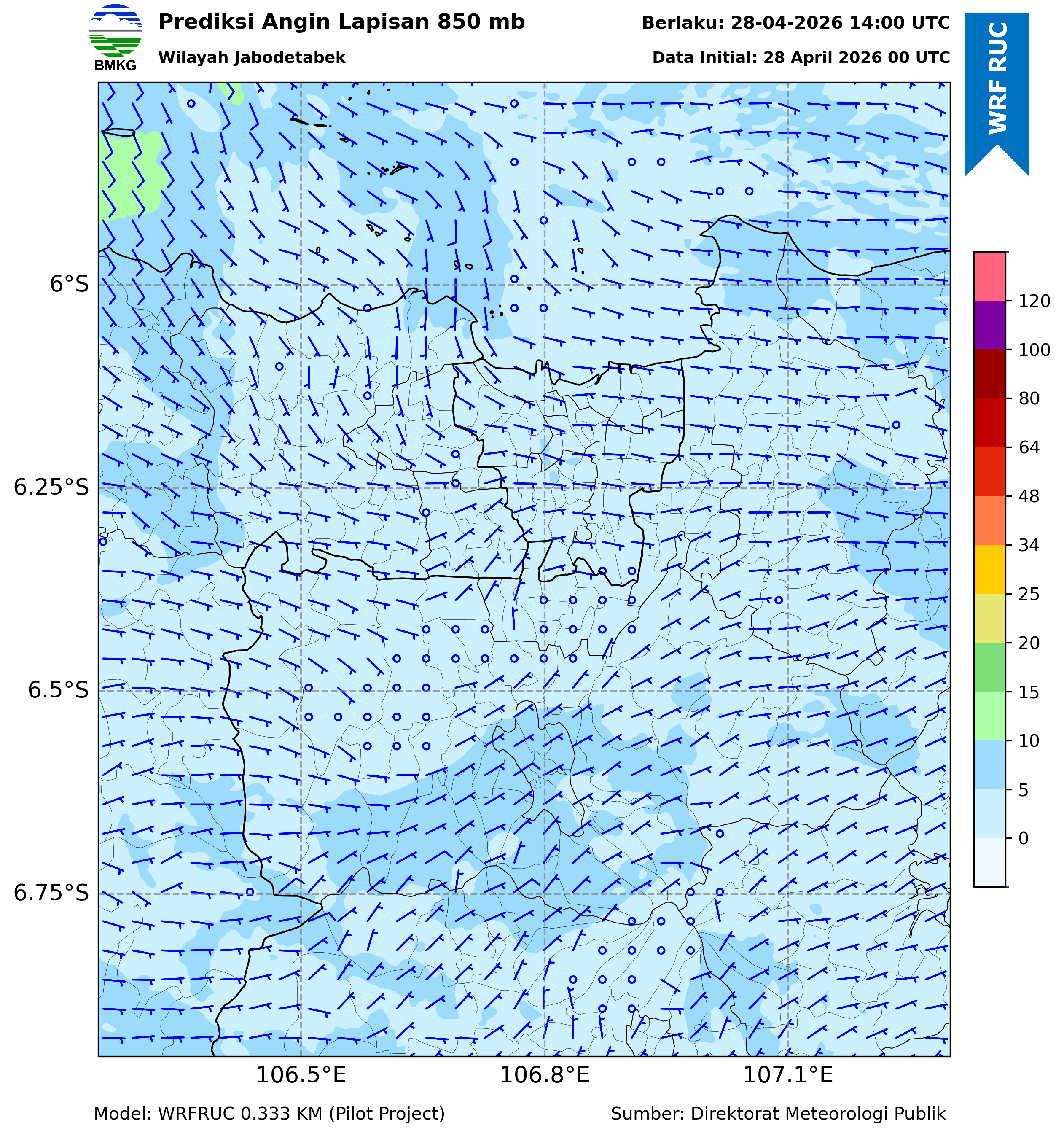 Prakiraan Angin Lapisan 850 Gunung Awu