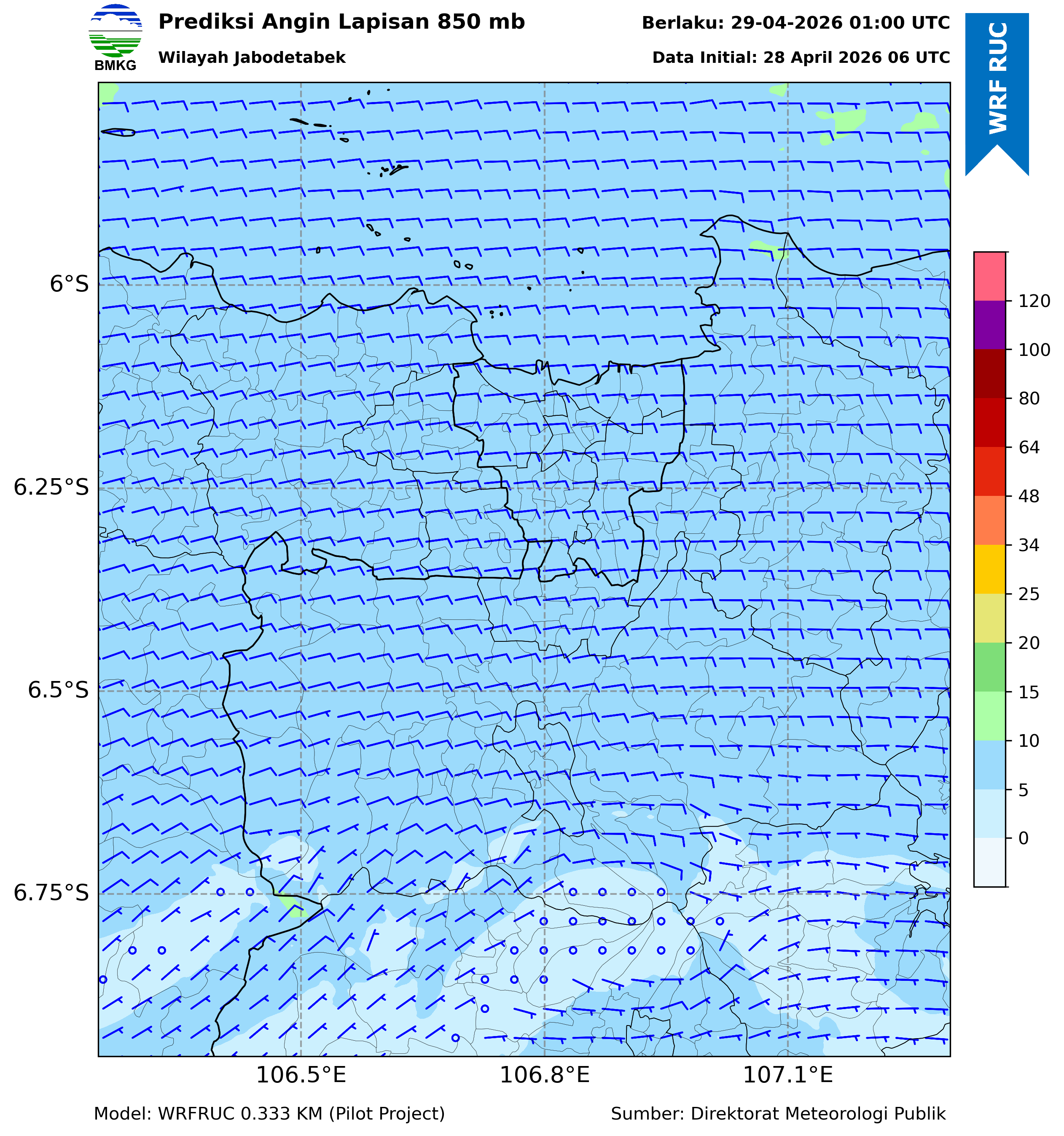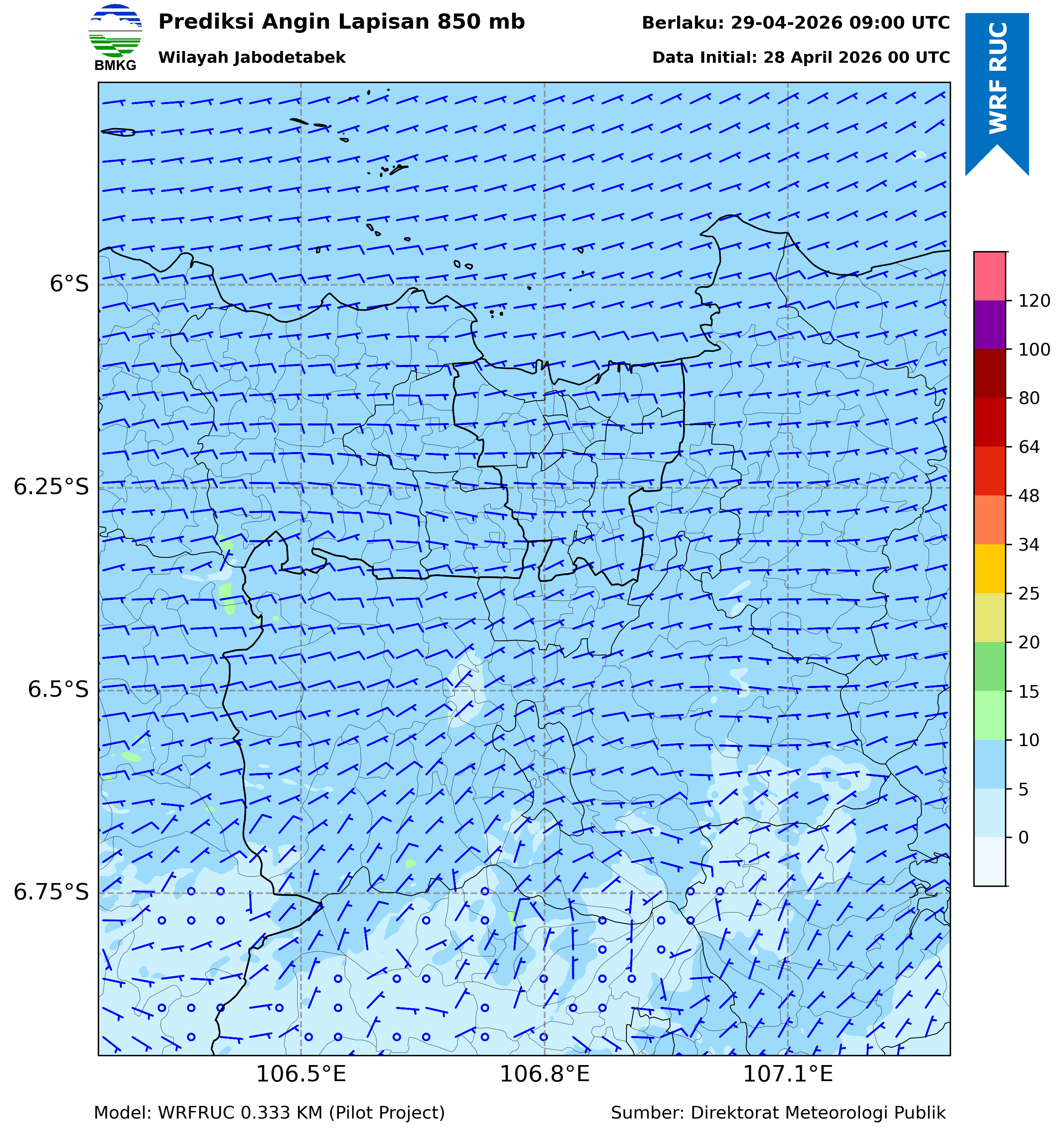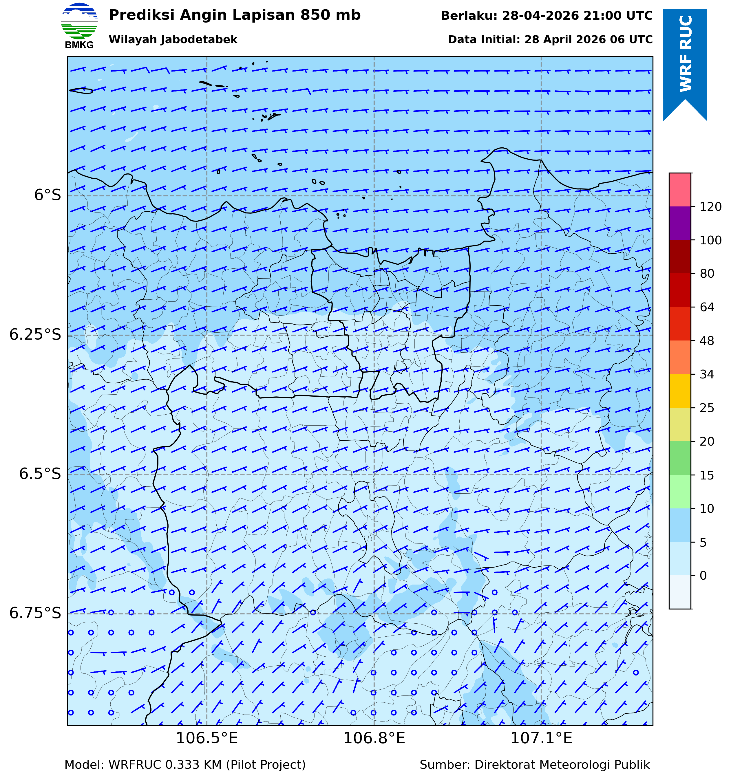 Prakiraan Angin Lapisan 850 Gunung Awu