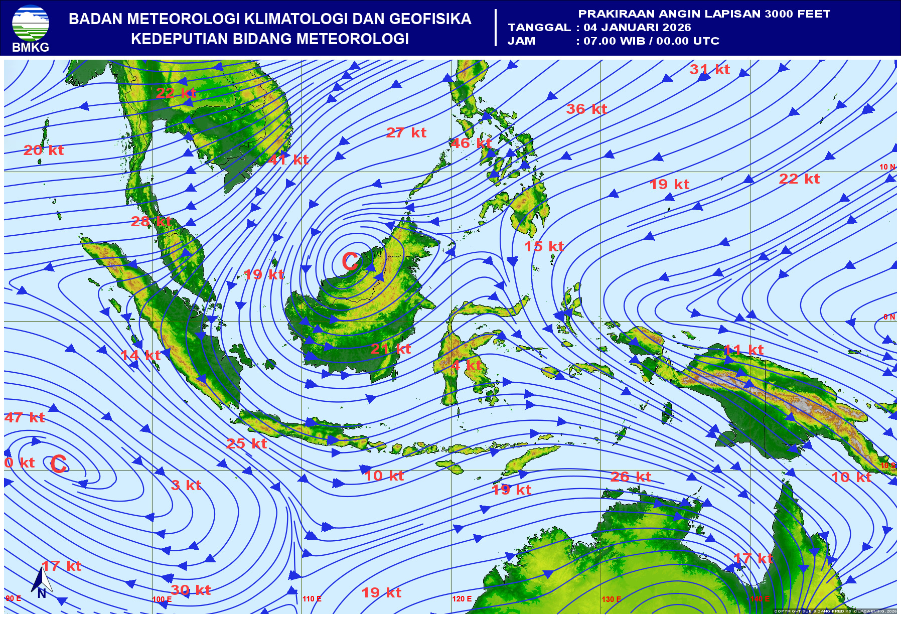 Prakiraan Angin Lapisan 10m Gunung Awu